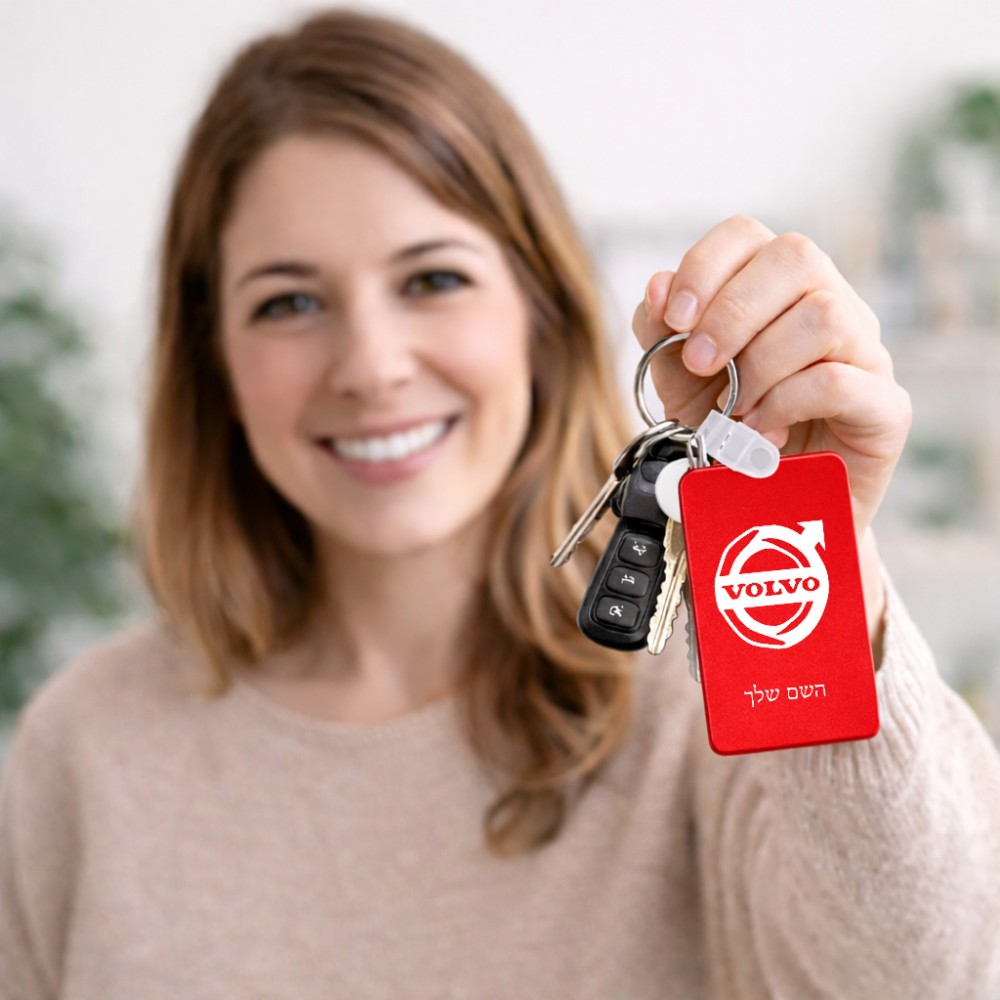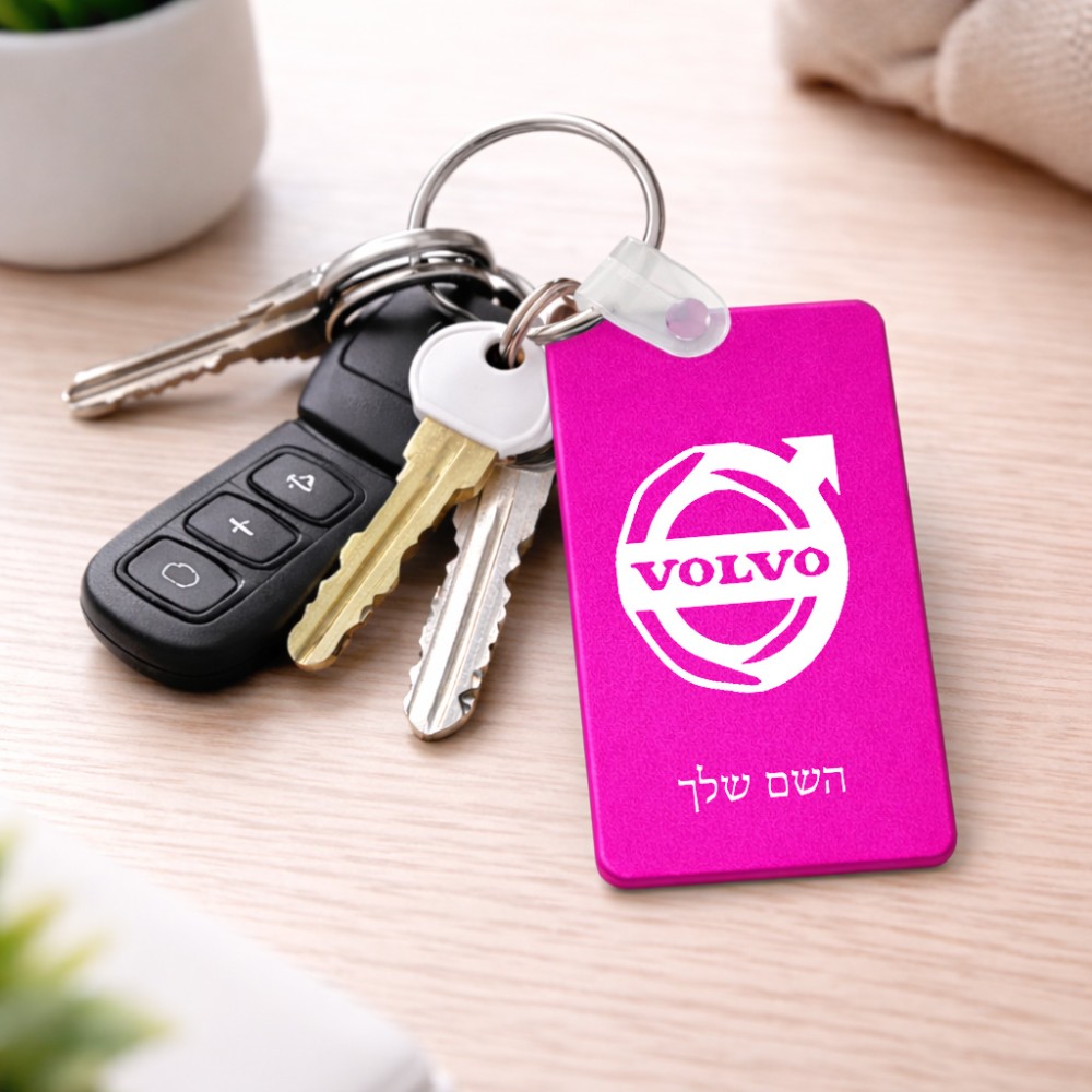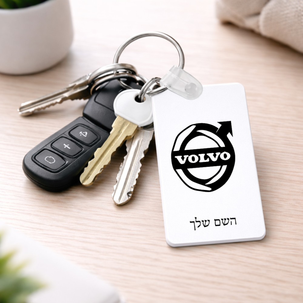 מחזיק מפתחות בצורת מלבן בעיצוב אישי עם השם שלך בעיצוב וולוו גודל המחזיק 6 × 4 ס"מ. את השם המבוקש ניתן לציין בהזמנה, אם לא צויין אנחנו ניצור קשר לבירור.