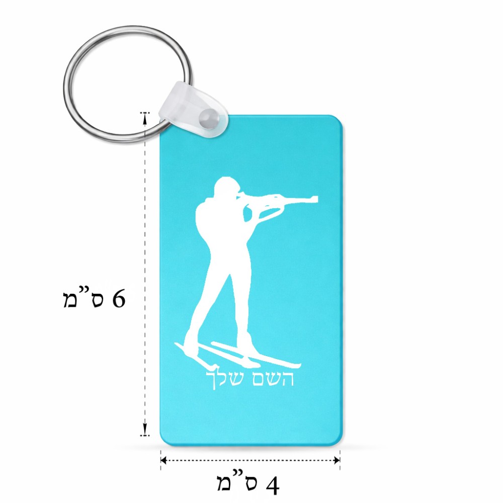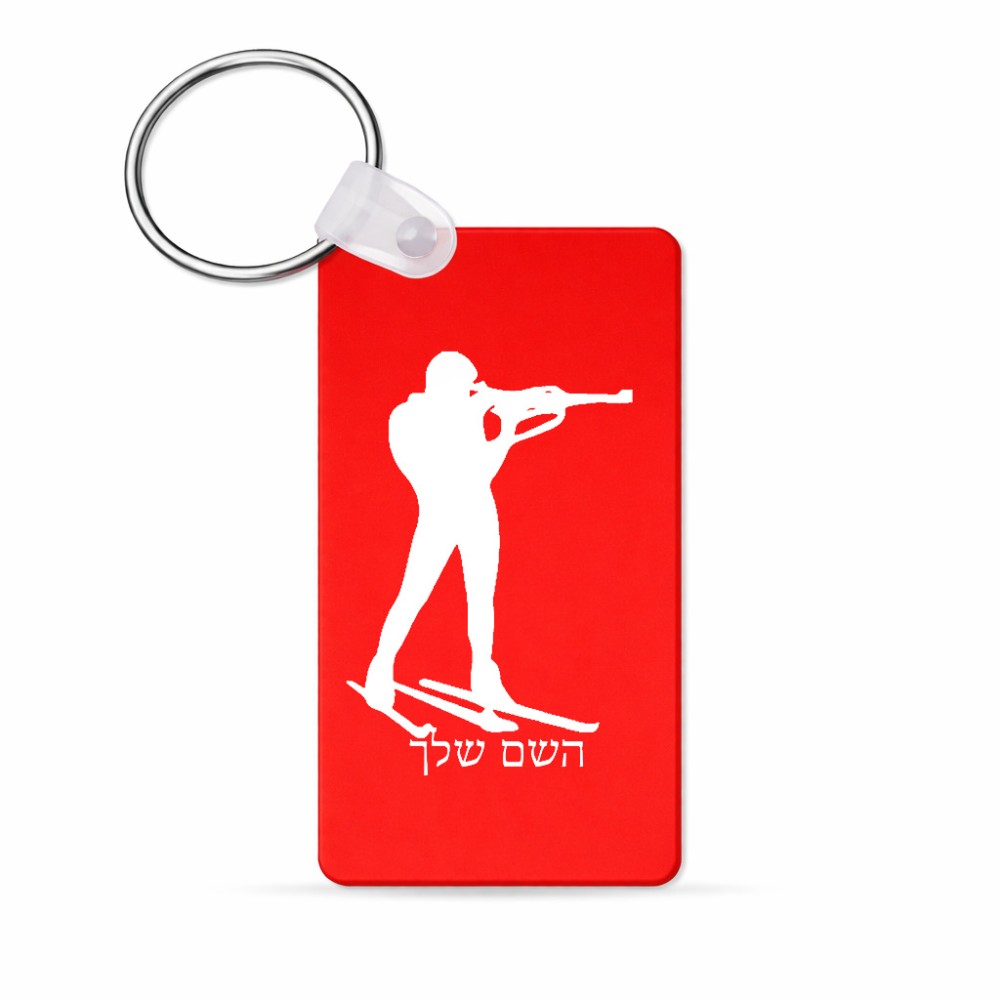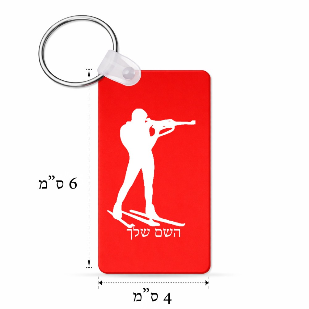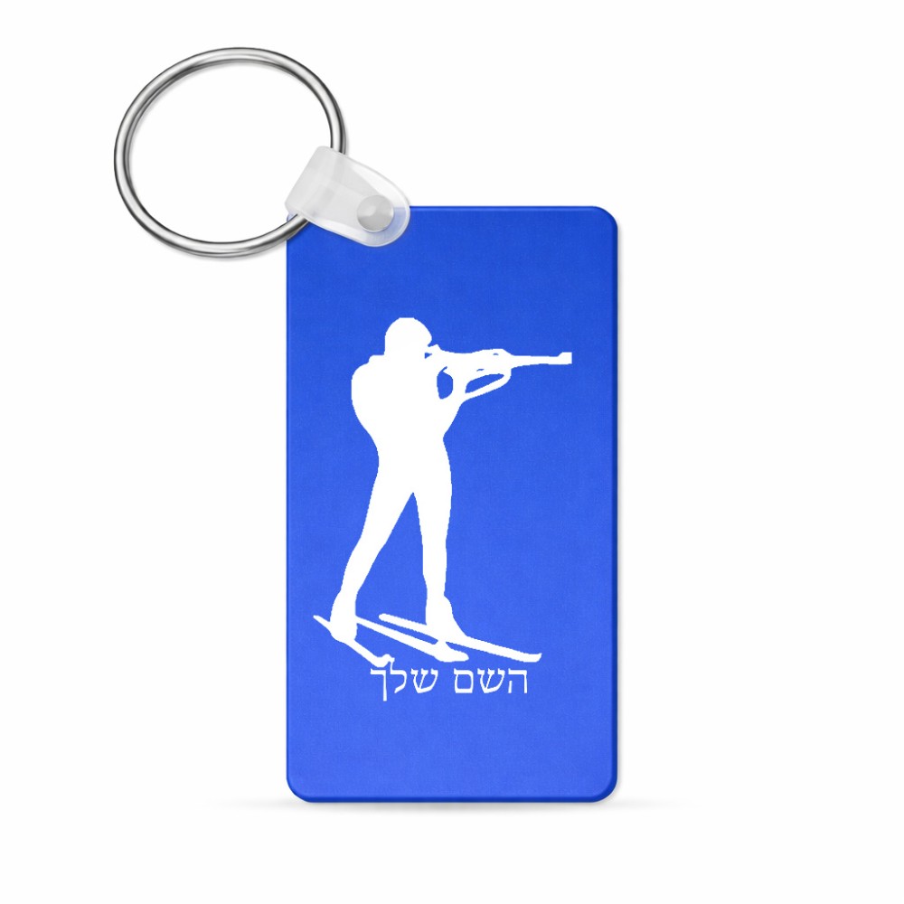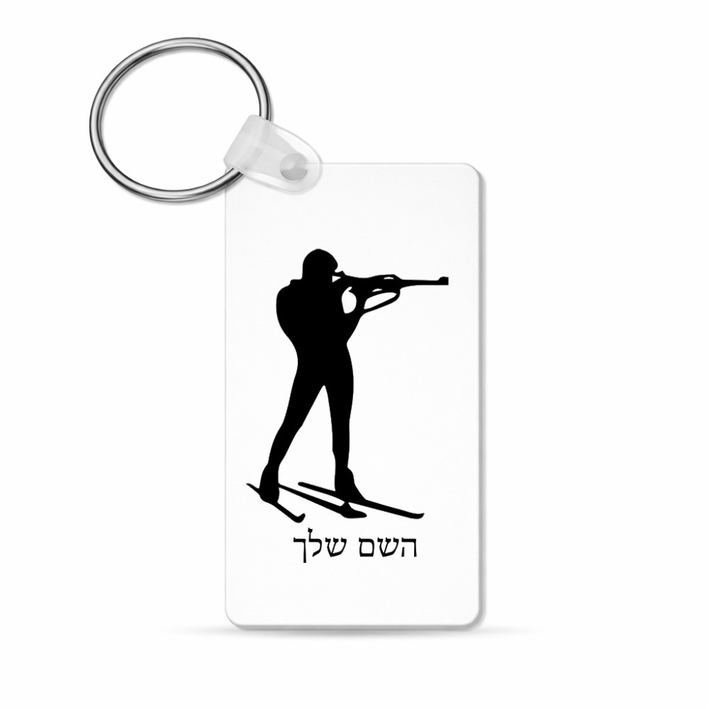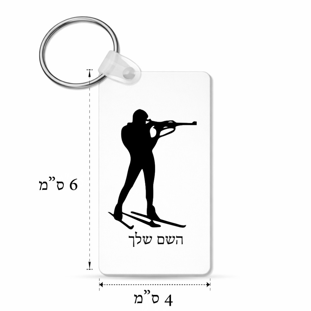 מחזיק מפתחות בצורת מלבן בעיצוב אישי עם השם שלך בעיצוב ביאתלון גודל המחזיק 6 × 4 ס"מ. את השם המבוקש ניתן לציין בהזמנה, אם לא צויין אנחנו ניצור קשר לבירור.