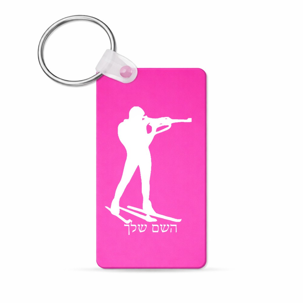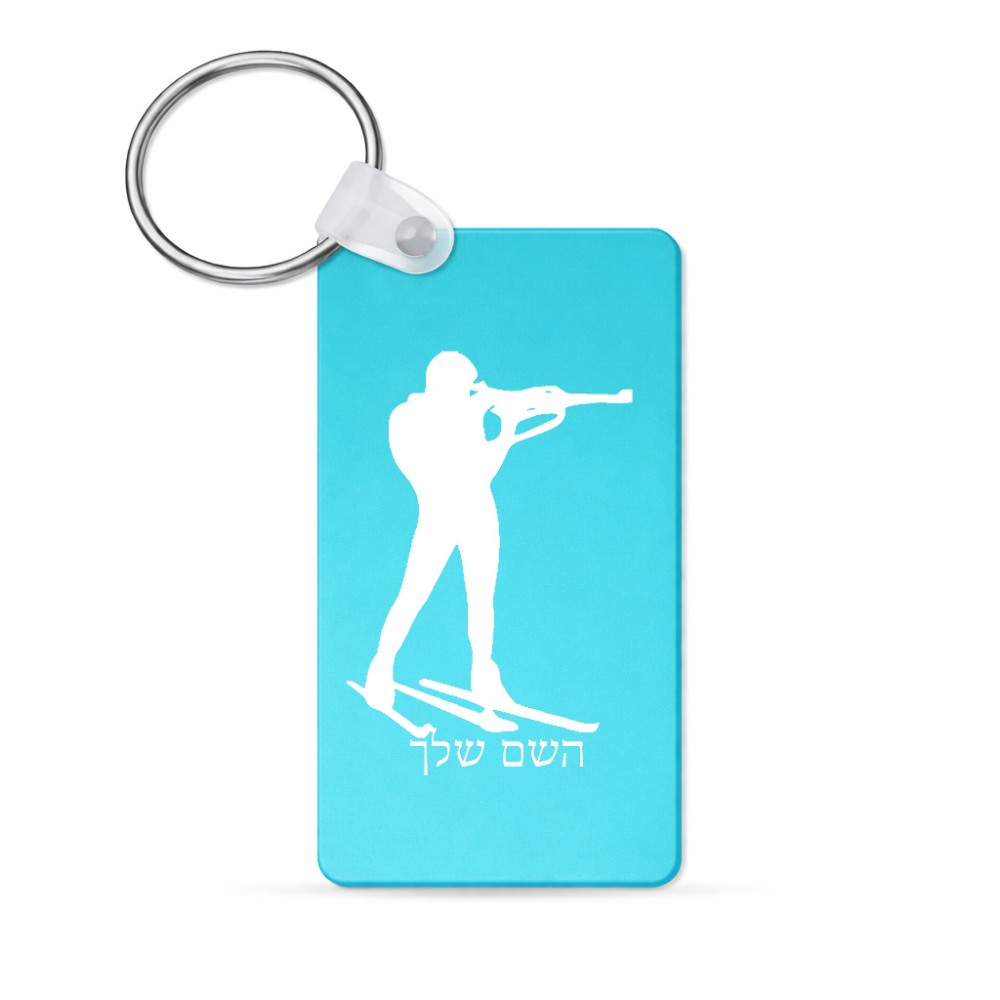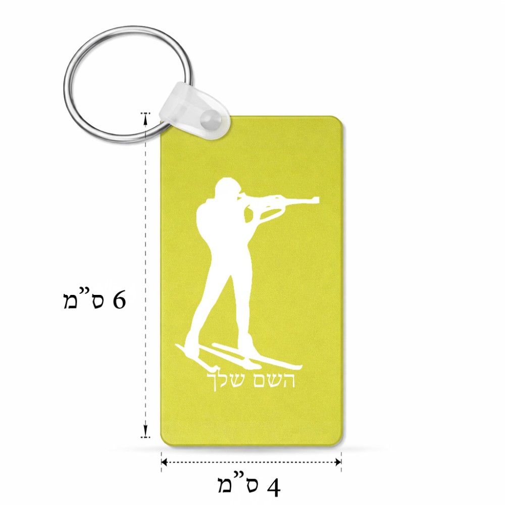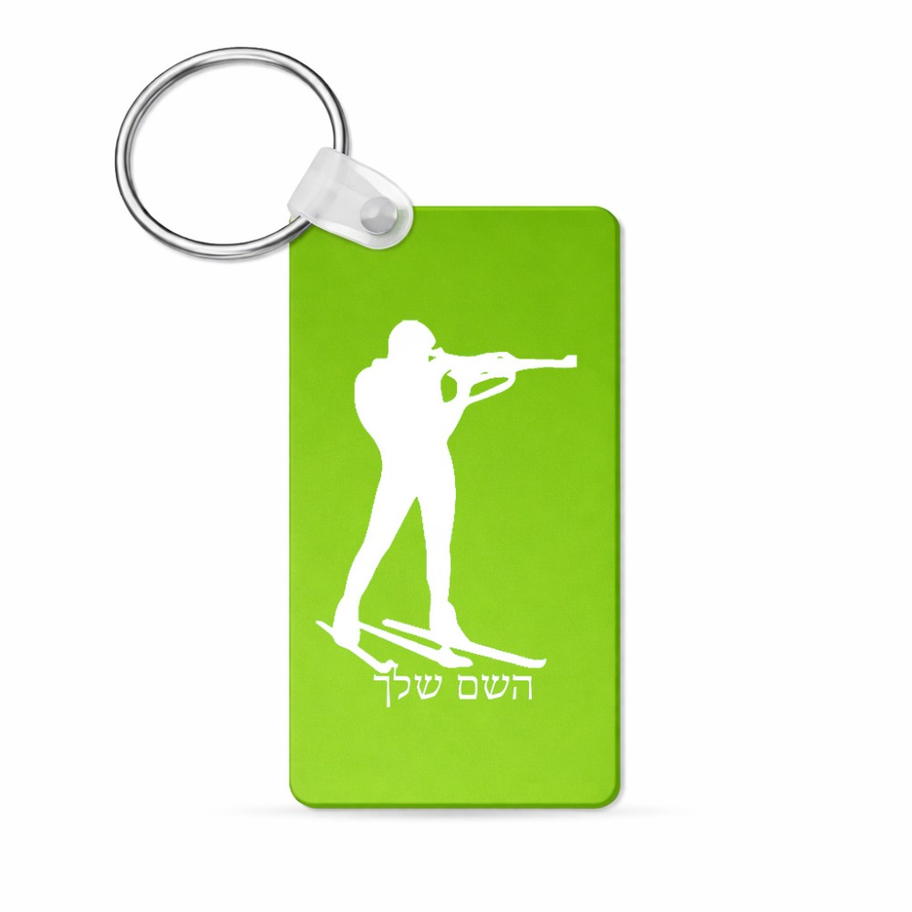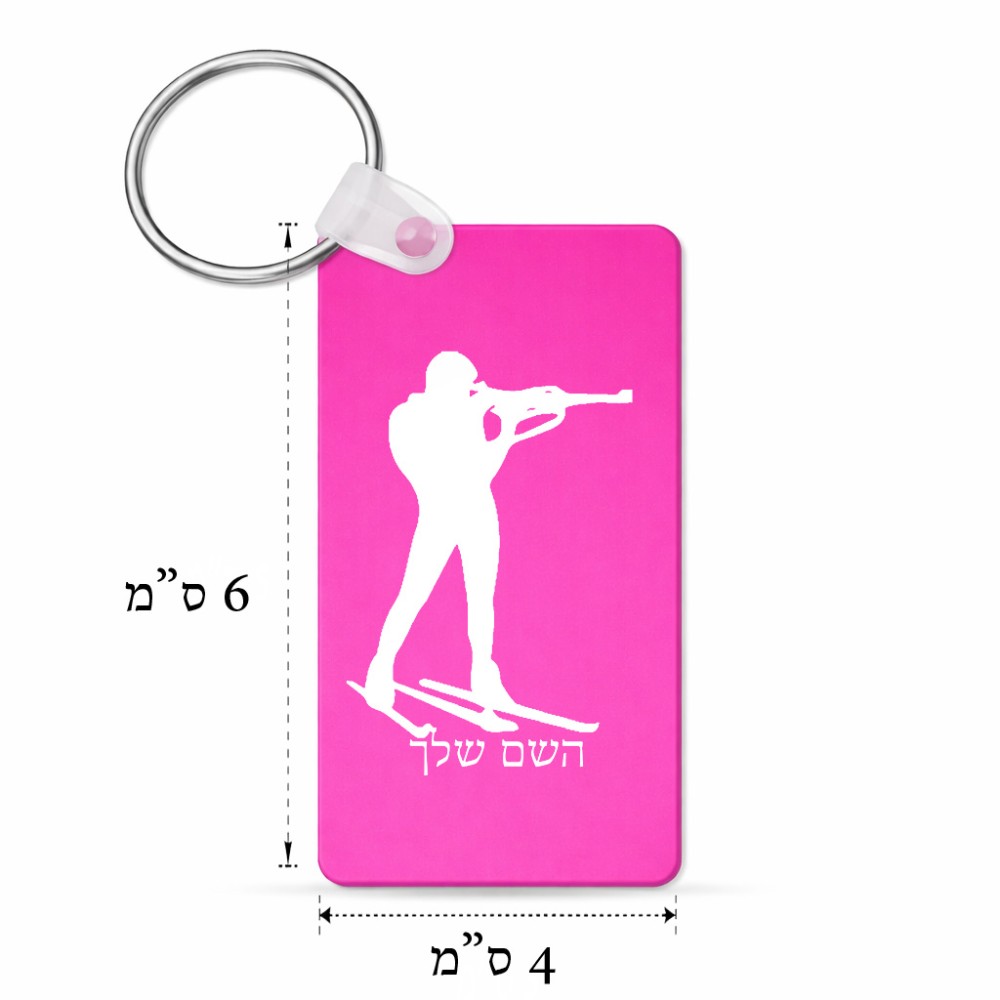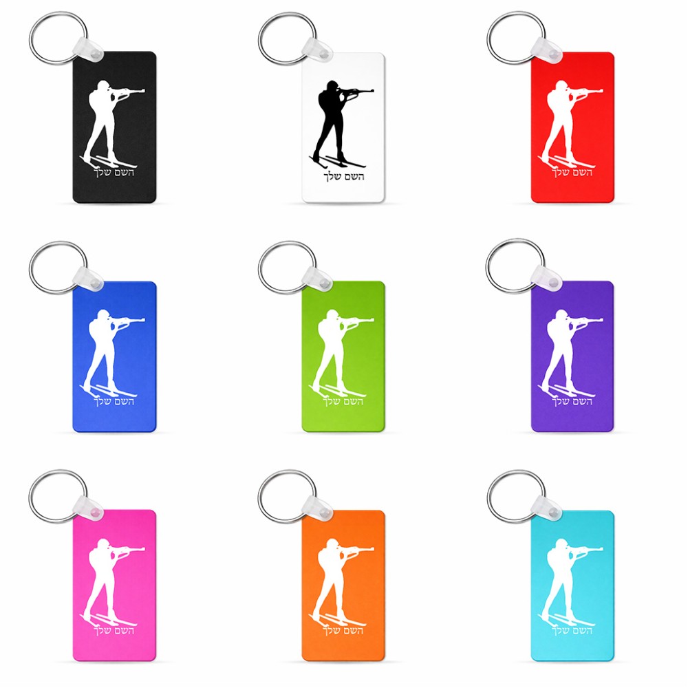 מחזיק מפתחות בצורת מלבן בעיצוב אישי עם השם שלך בעיצוב ביאתלון גודל המחזיק 6 × 4 ס"מ. את השם המבוקש ניתן לציין בהזמנה, אם לא צויין אנחנו ניצור קשר לבירור.