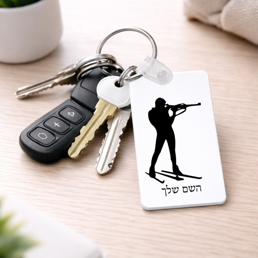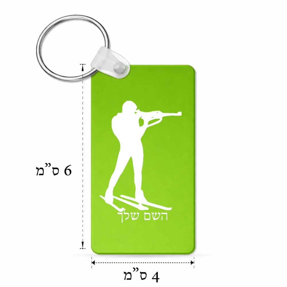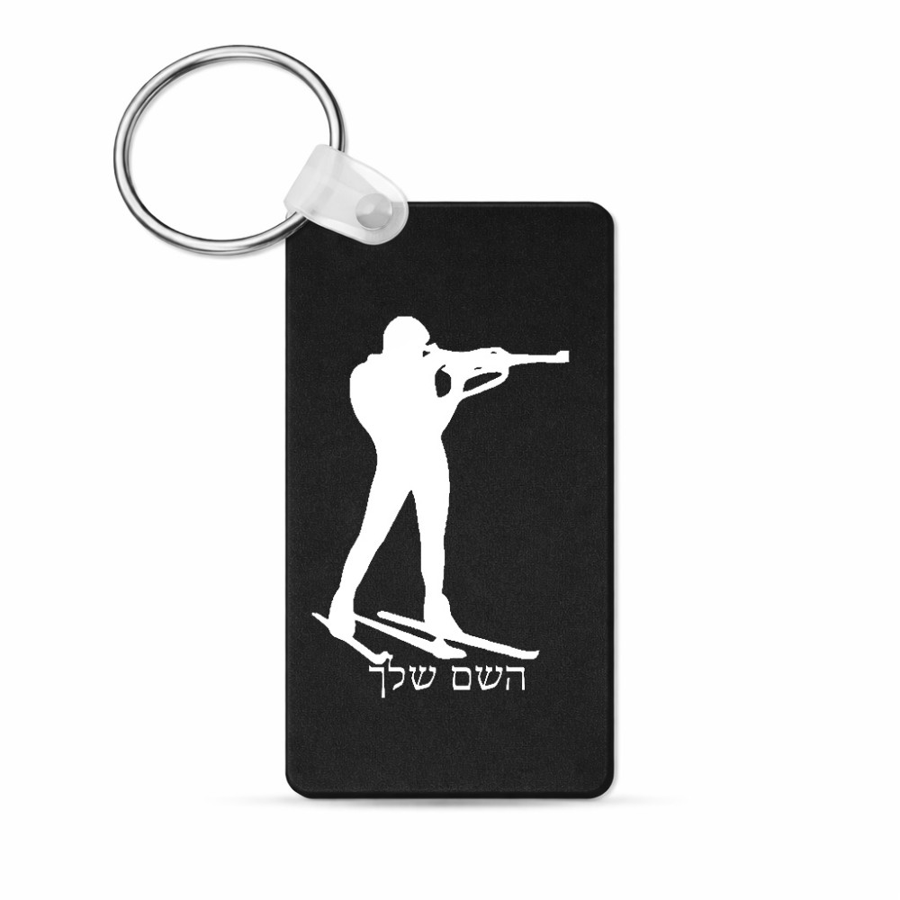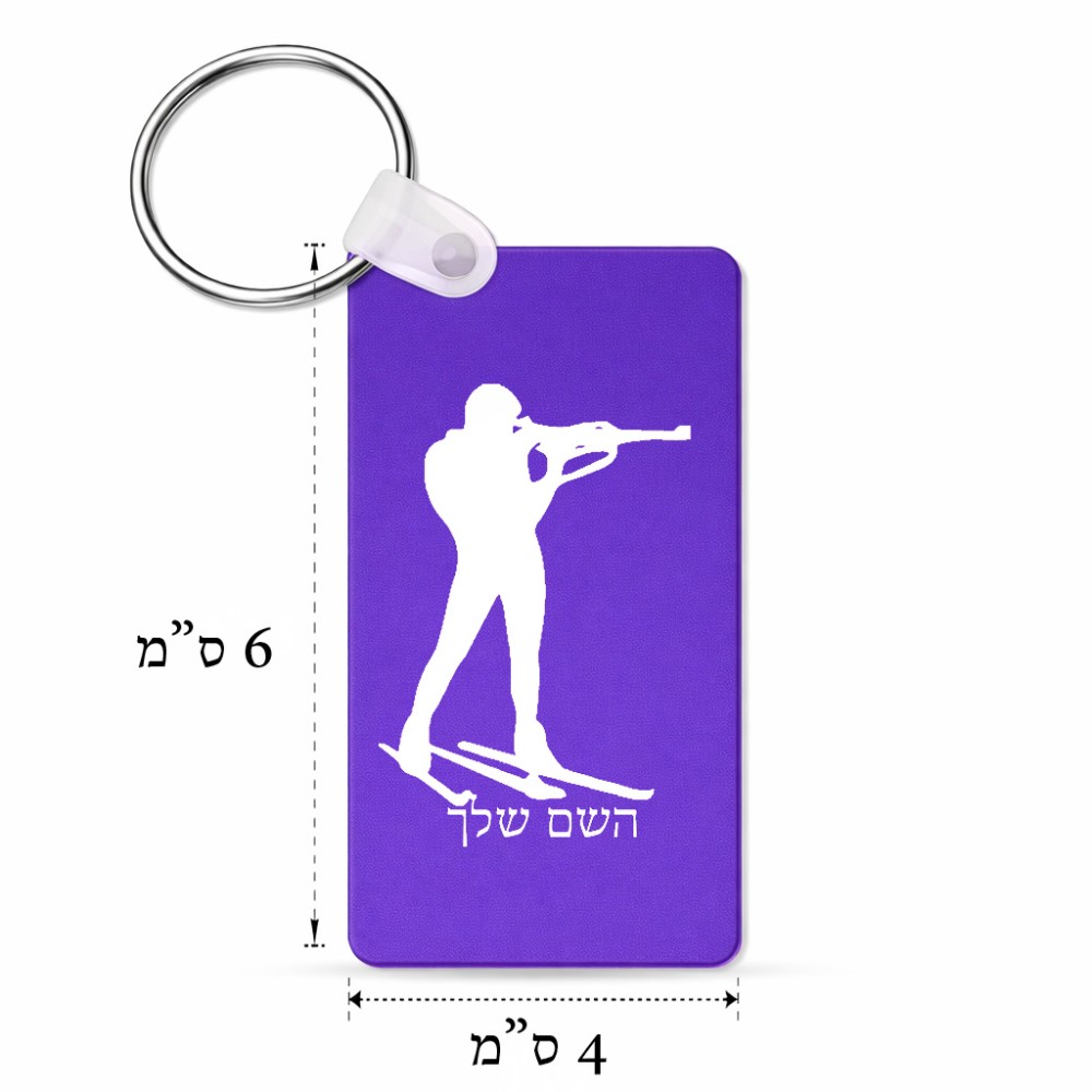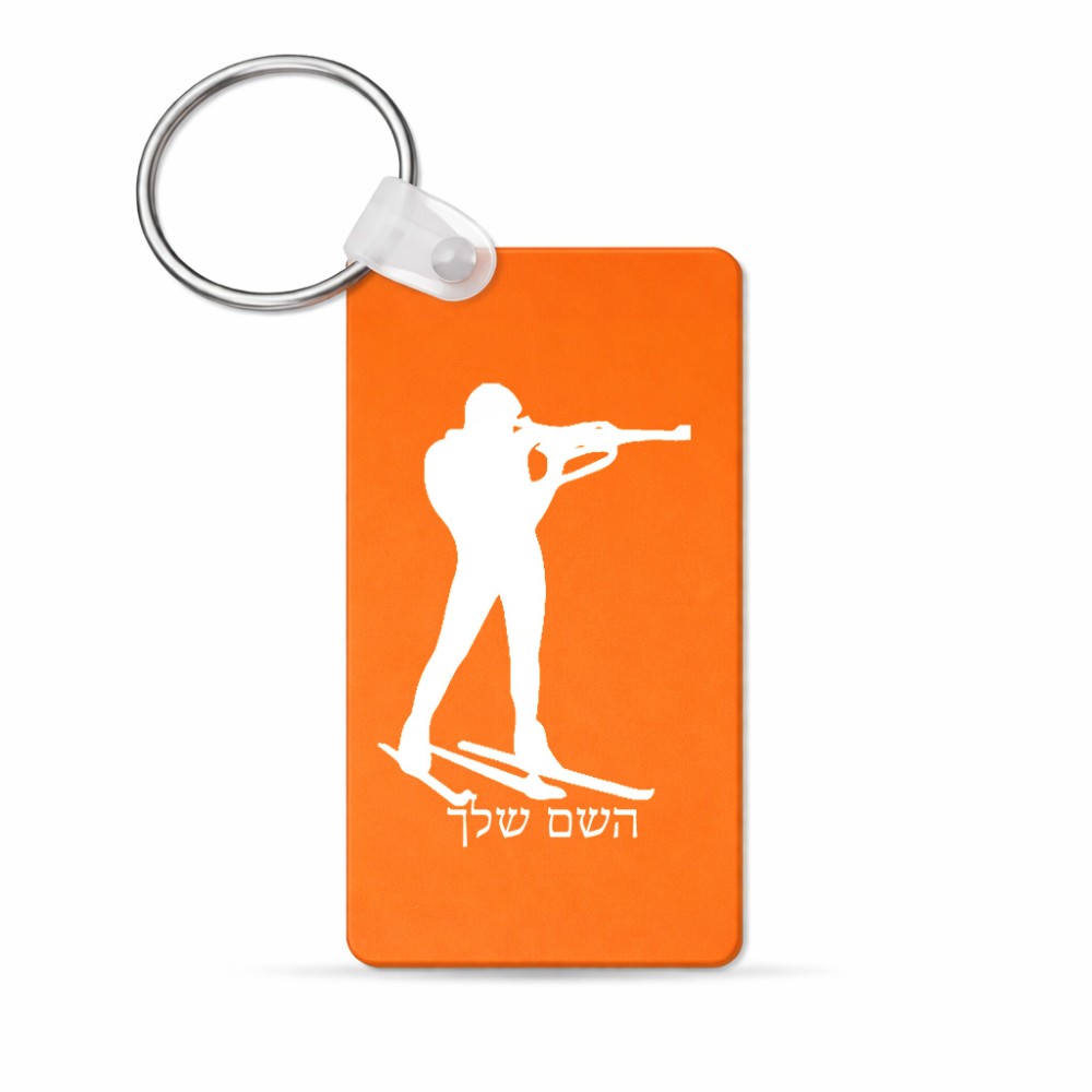 מחזיק מפתחות בצורת מלבן בעיצוב אישי עם השם שלך בעיצוב ביאתלון גודל המחזיק 6 × 4 ס"מ. את השם המבוקש ניתן לציין בהזמנה, אם לא צויין אנחנו ניצור קשר לבירור.