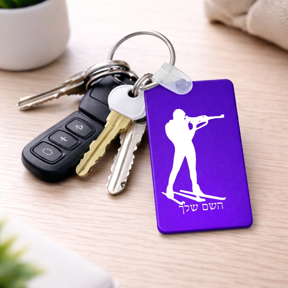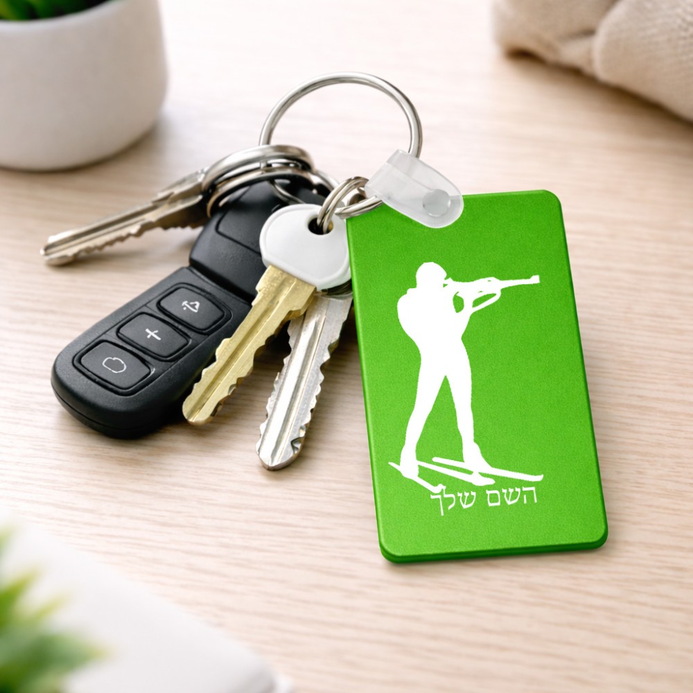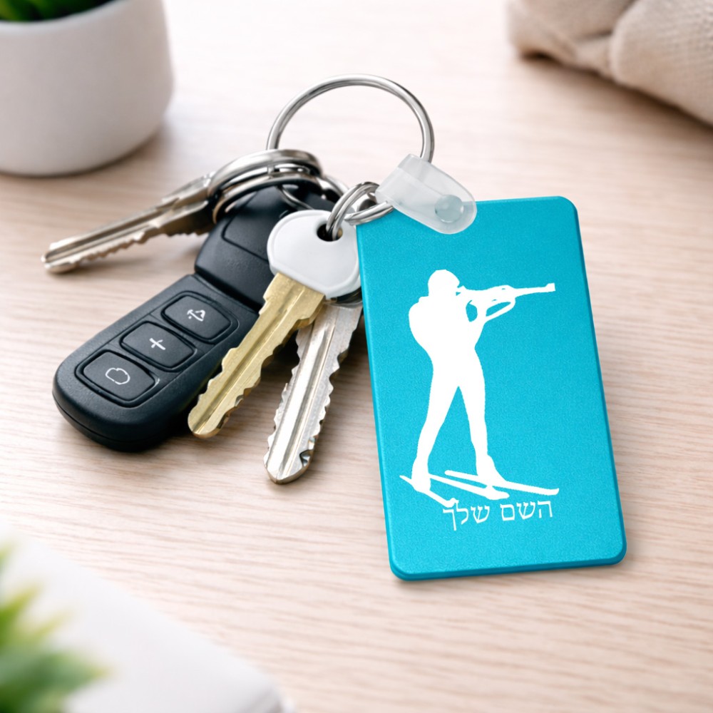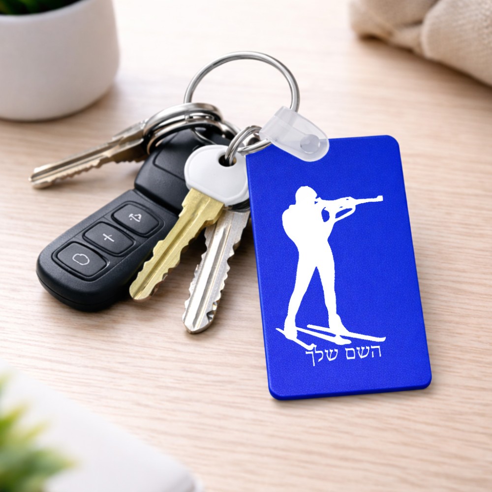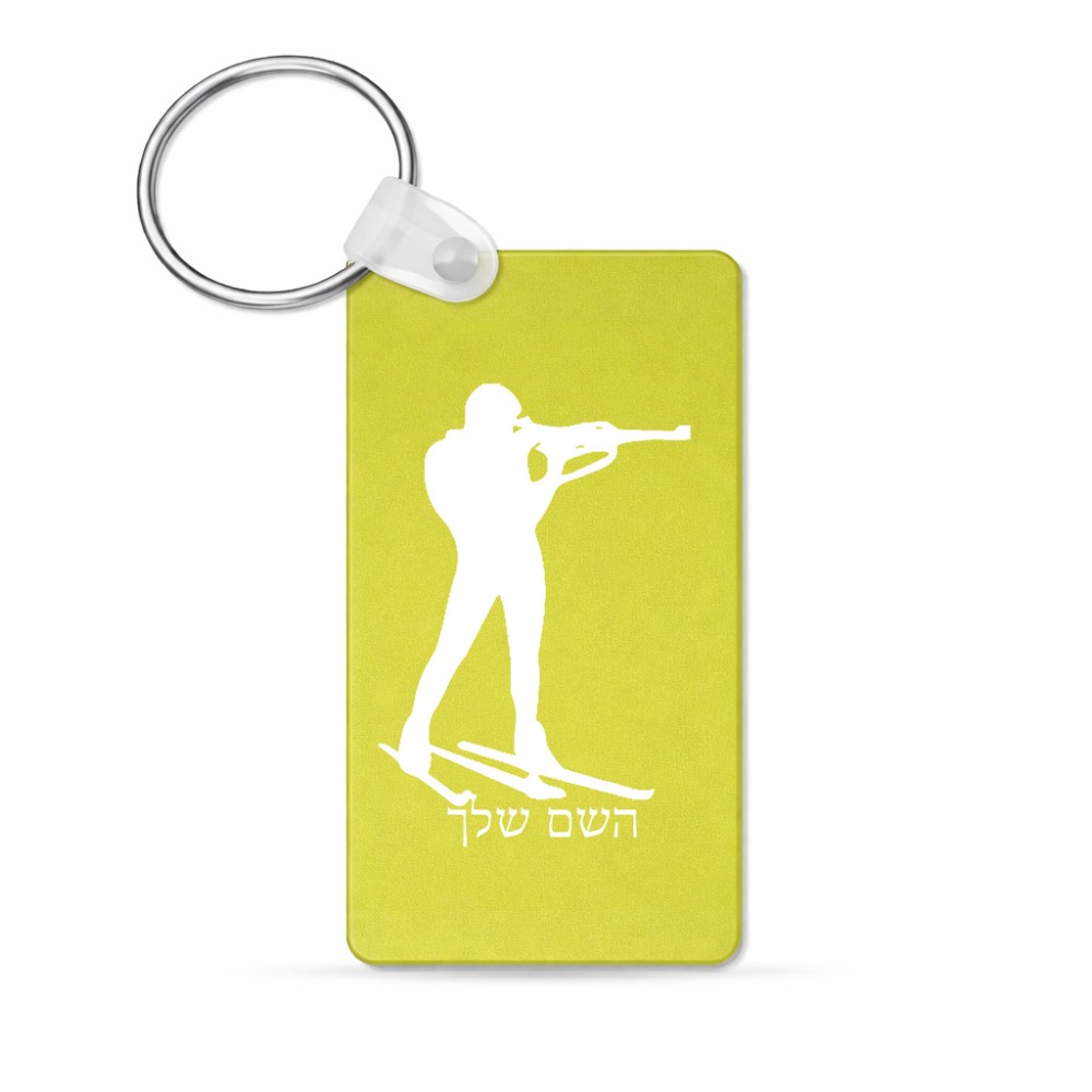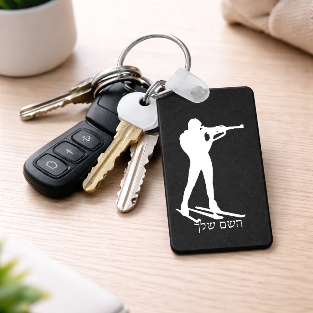 מחזיק מפתחות בצורת מלבן בעיצוב אישי עם השם שלך בעיצוב ביאתלון גודל המחזיק 6 × 4 ס"מ. את השם המבוקש ניתן לציין בהזמנה, אם לא צויין אנחנו ניצור קשר לבירור.