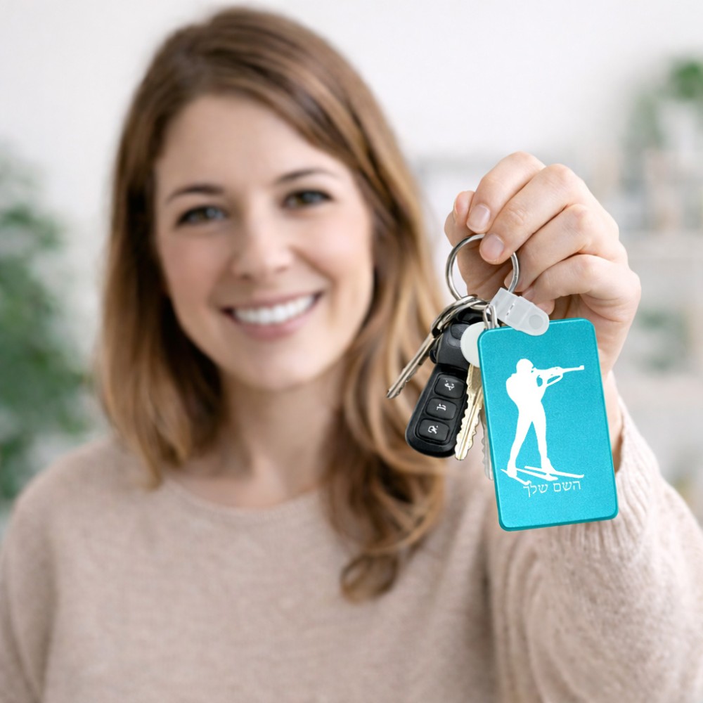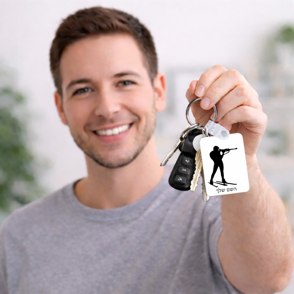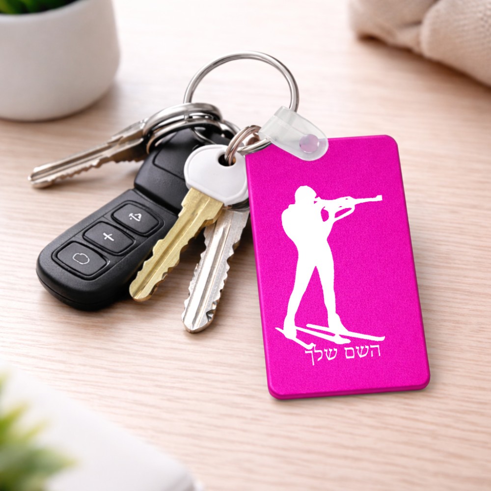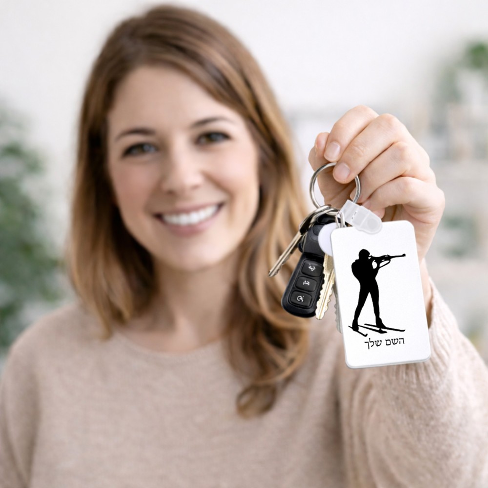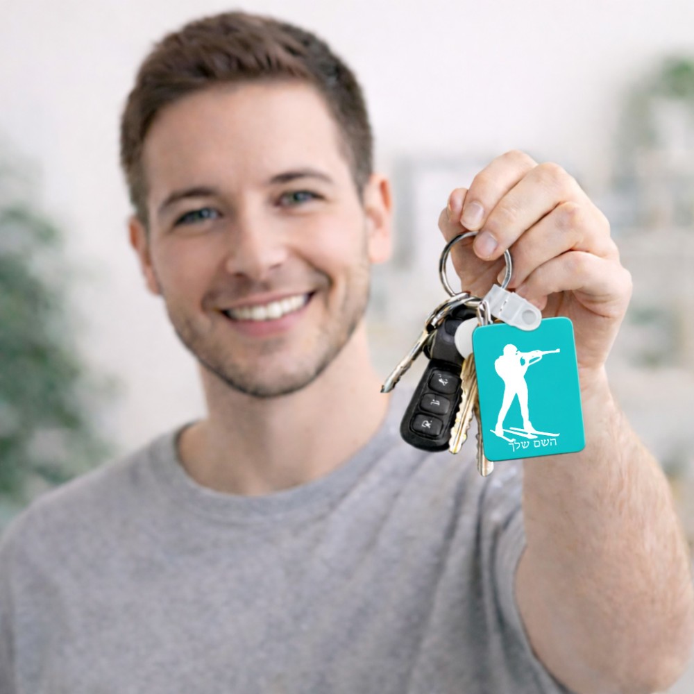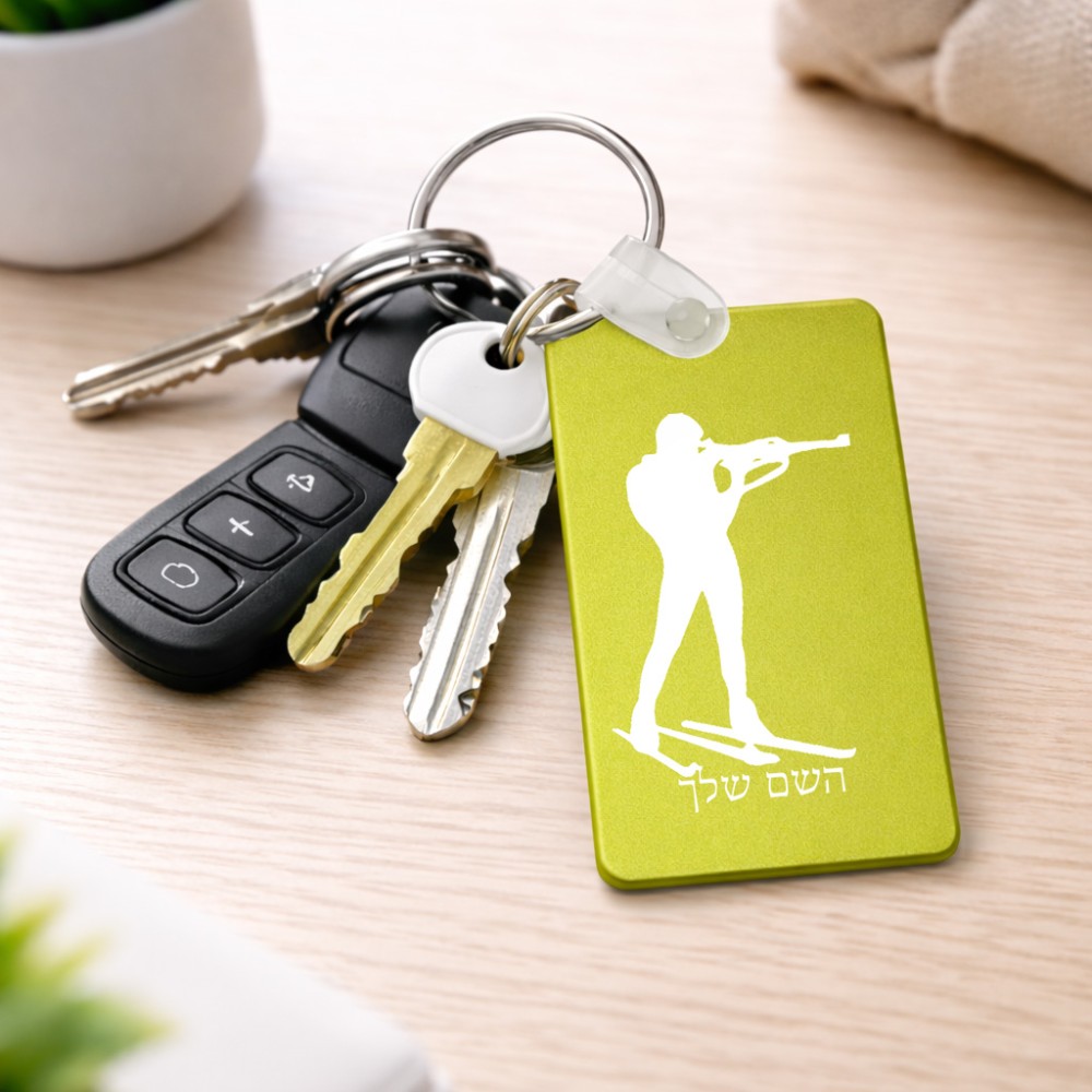 מחזיק מפתחות בצורת מלבן בעיצוב אישי עם השם שלך בעיצוב ביאתלון גודל המחזיק 6 × 4 ס"מ. את השם המבוקש ניתן לציין בהזמנה, אם לא צויין אנחנו ניצור קשר לבירור.