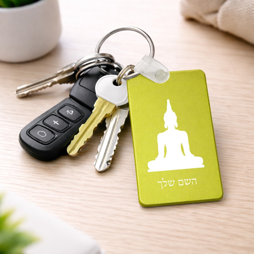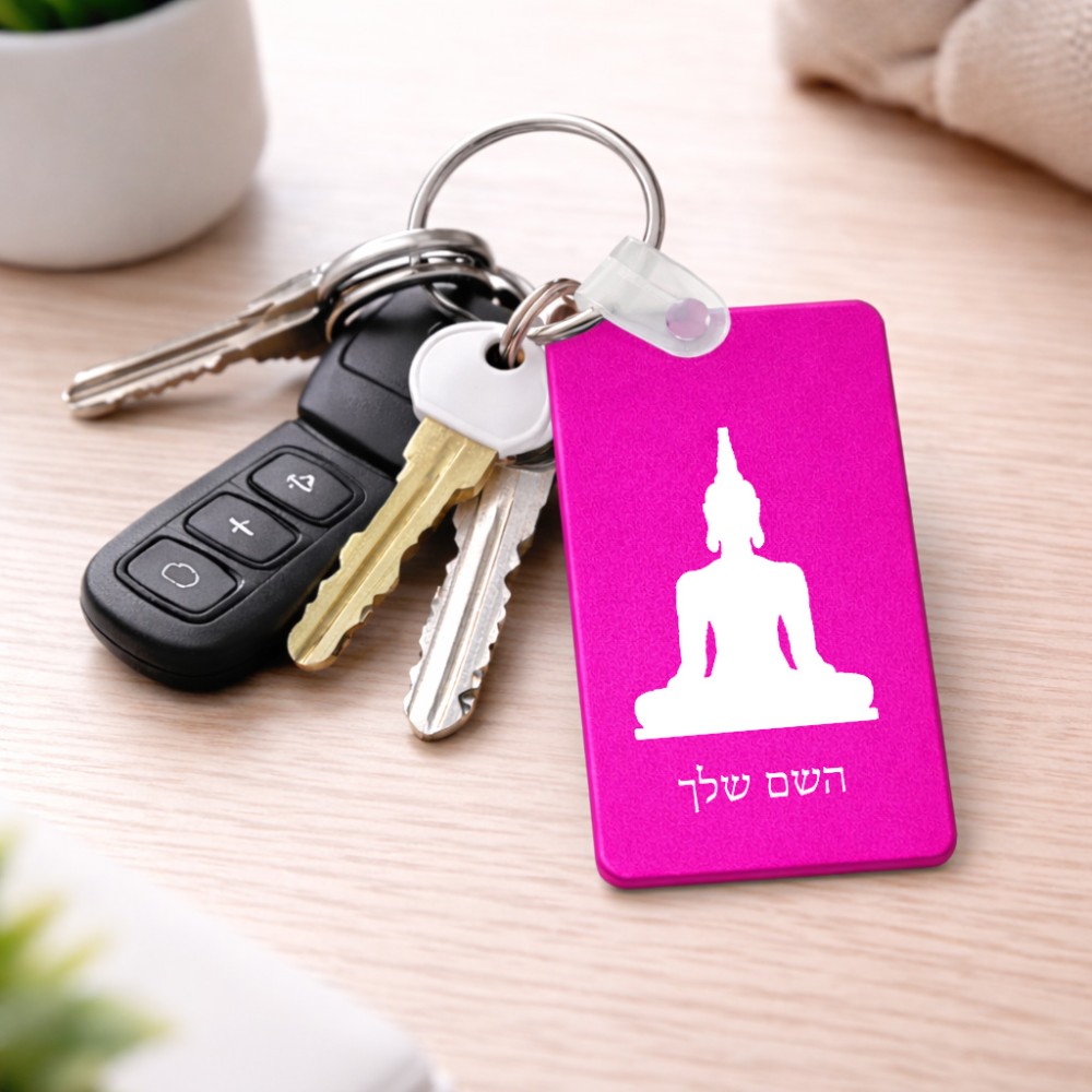 מחזיק מפתחות בצורת מלבן בעיצוב אישי עם השם שלך בעיצוב בודה גודל המחזיק 6 × 4 ס"מ. את השם המבוקש ניתן לציין בהזמנה, אם לא צויין אנחנו ניצור קשר לבירור.