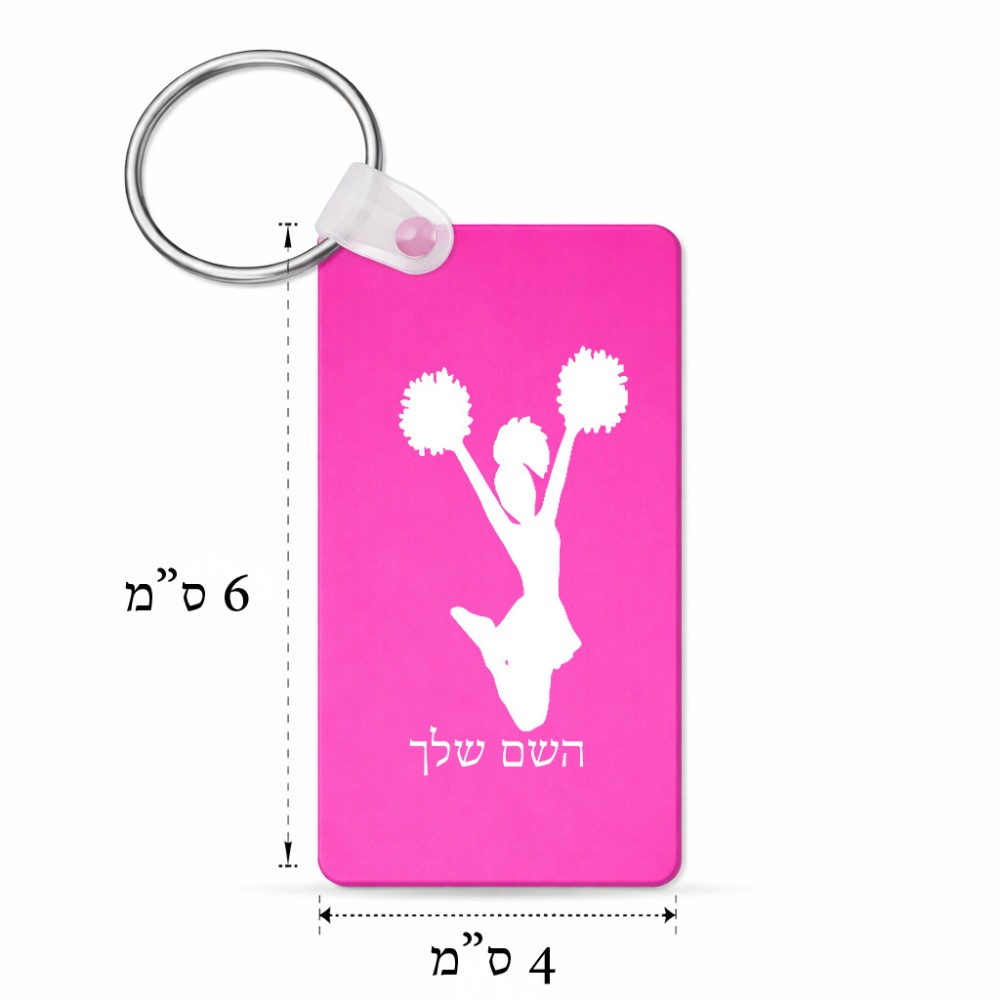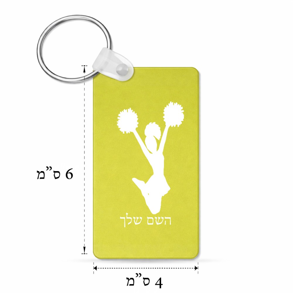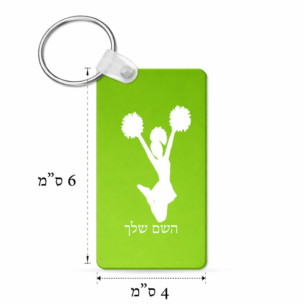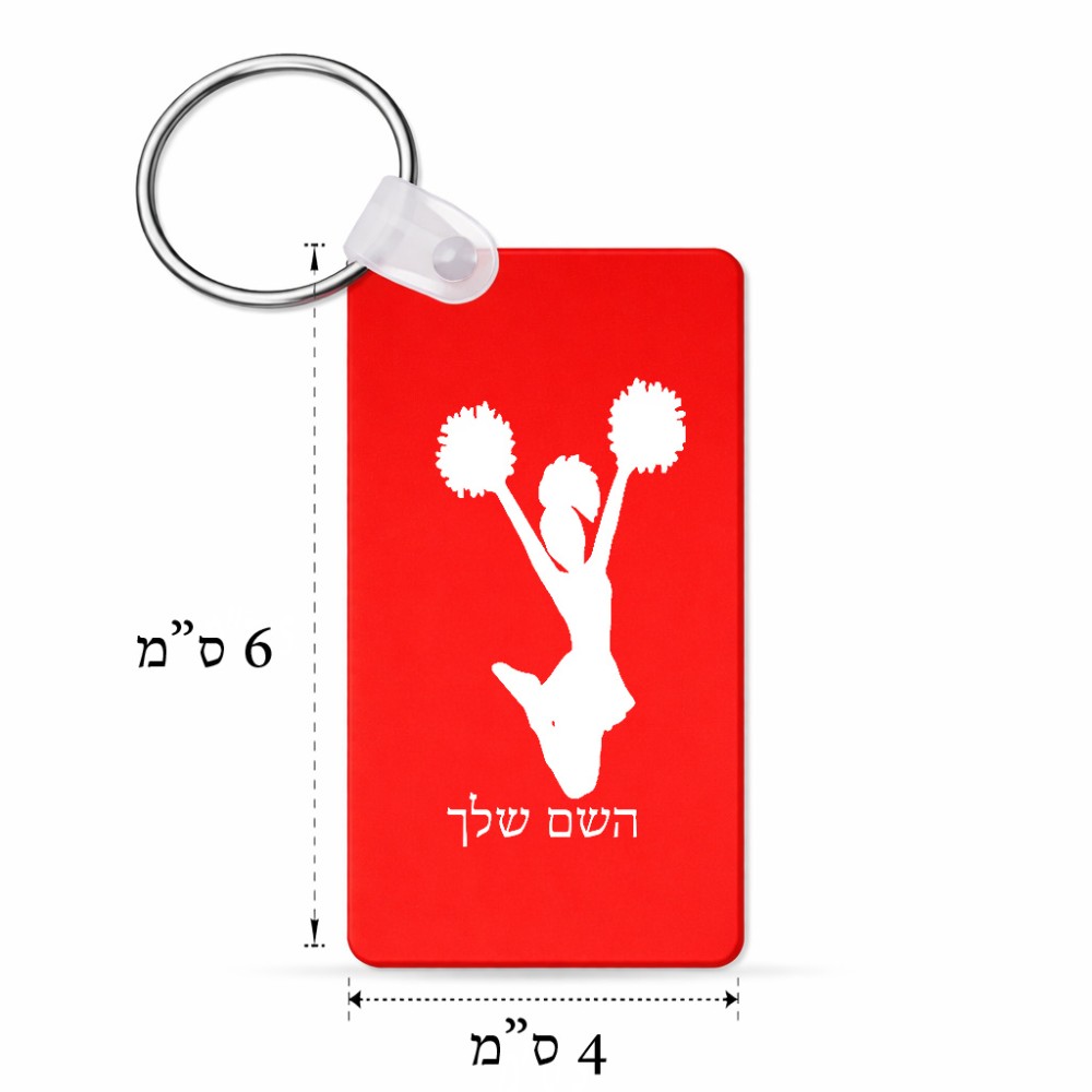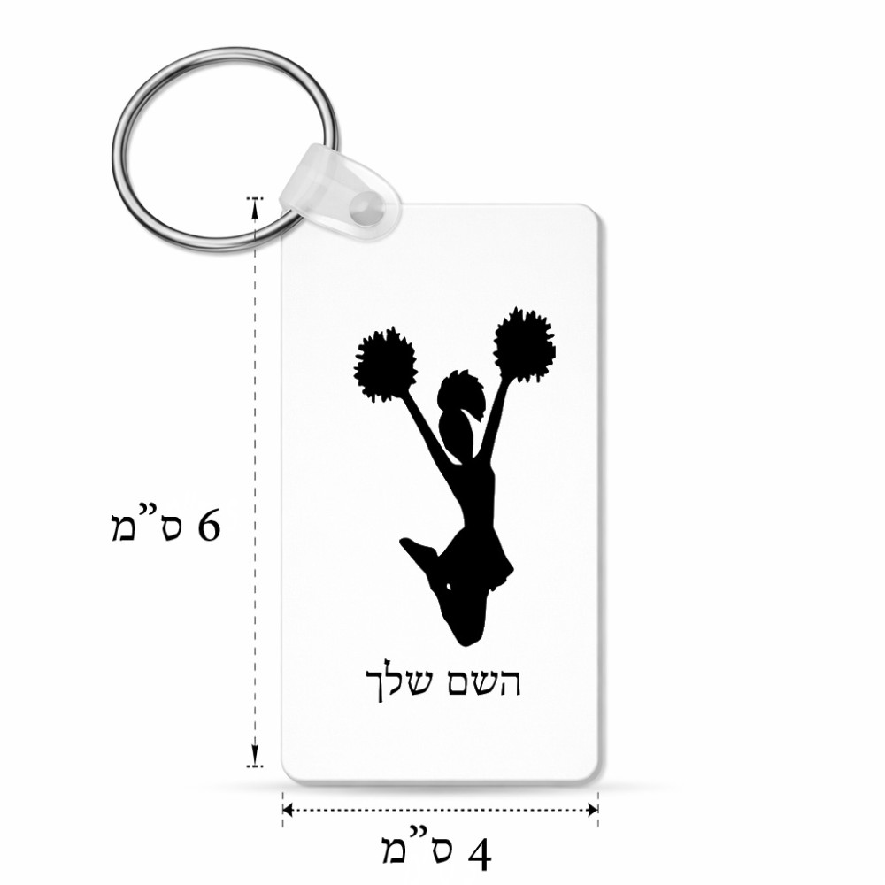 מחזיק מפתחות בצורת מלבן בעיצוב אישי עם השם שלך בעיצוב מעודדת גודל המחזיק 6 × 4 ס"מ. את השם המבוקש ניתן לציין בהזמנה, אם לא צויין אנחנו ניצור קשר לבירור.