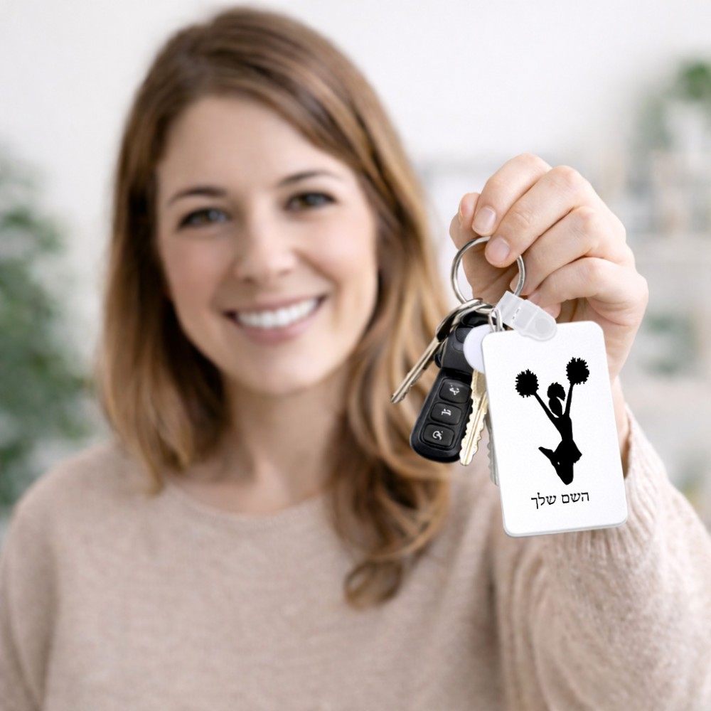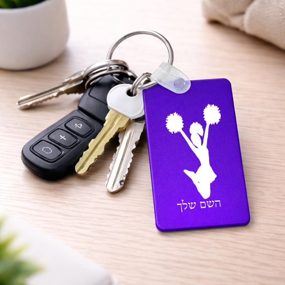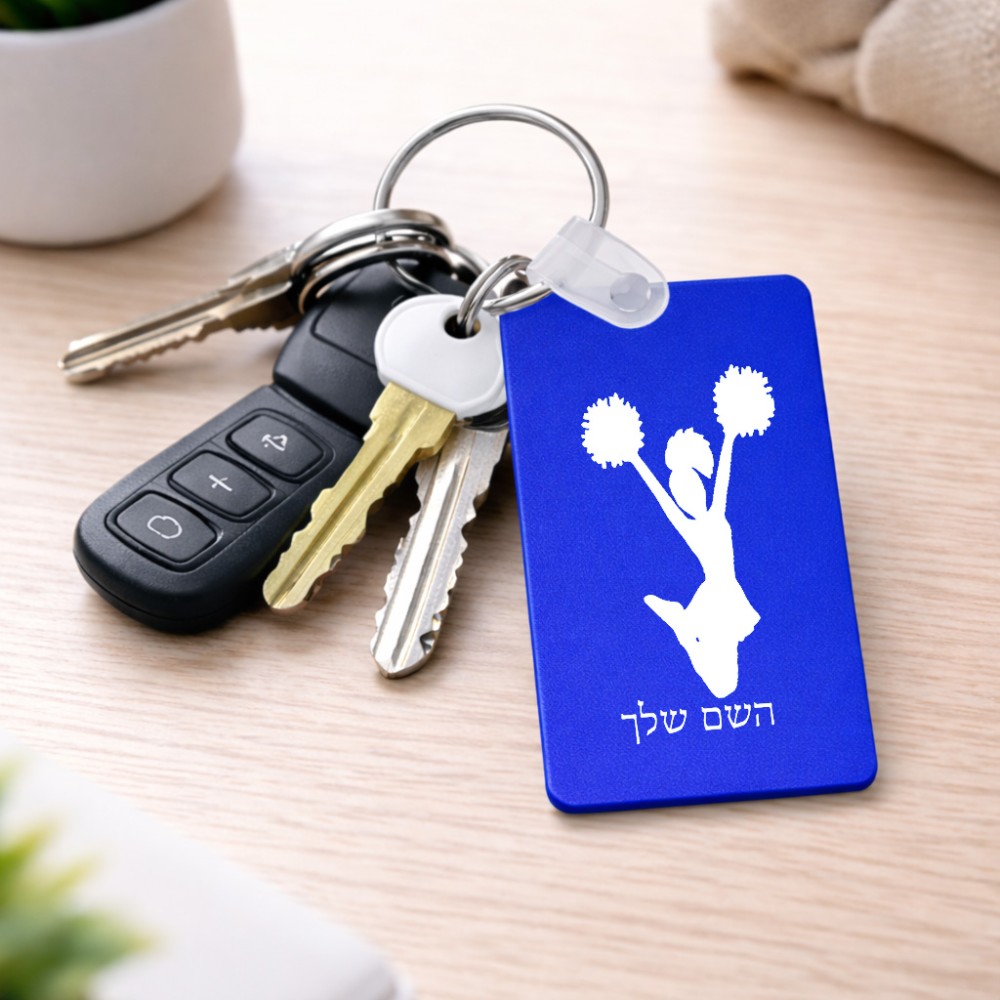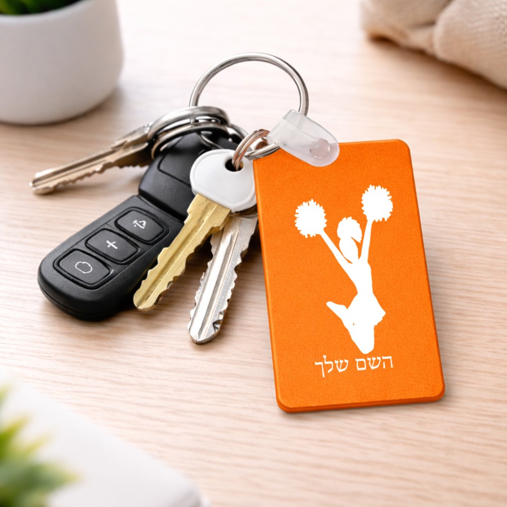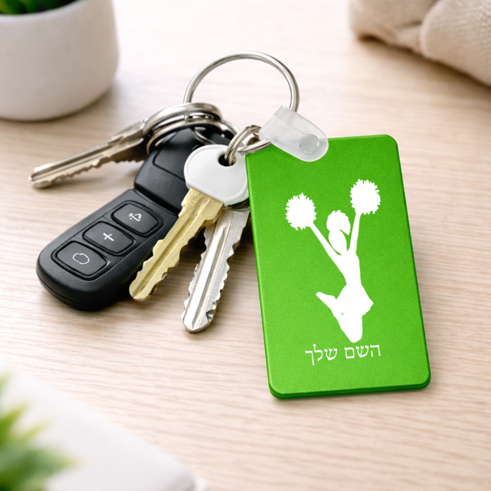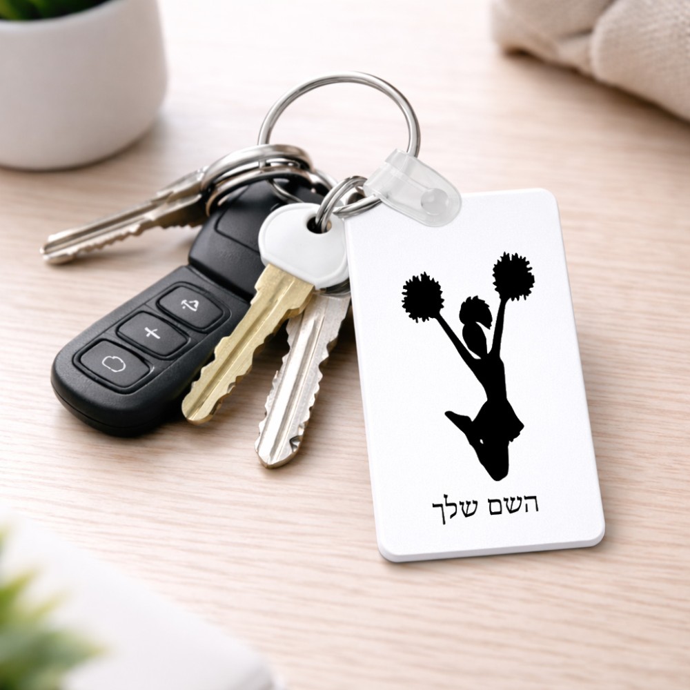 מחזיק מפתחות בצורת מלבן בעיצוב אישי עם השם שלך בעיצוב מעודדת גודל המחזיק 6 × 4 ס"מ. את השם המבוקש ניתן לציין בהזמנה, אם לא צויין אנחנו ניצור קשר לבירור.