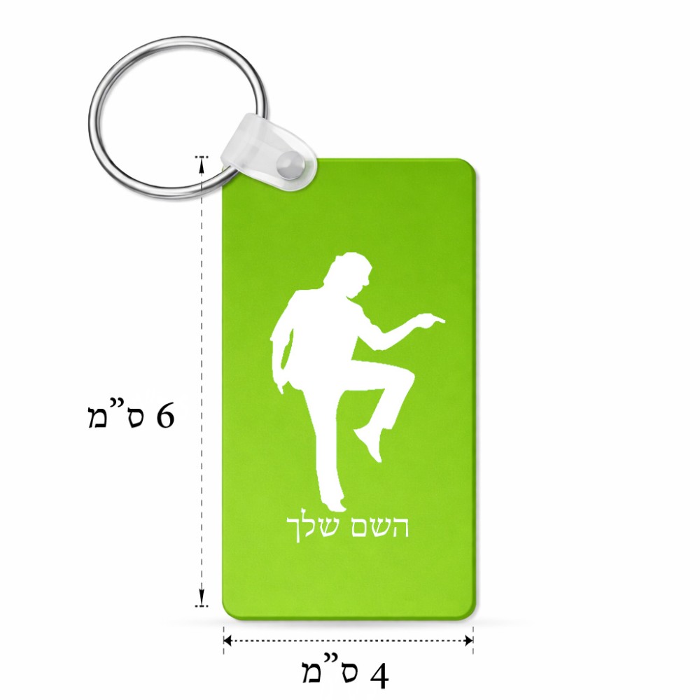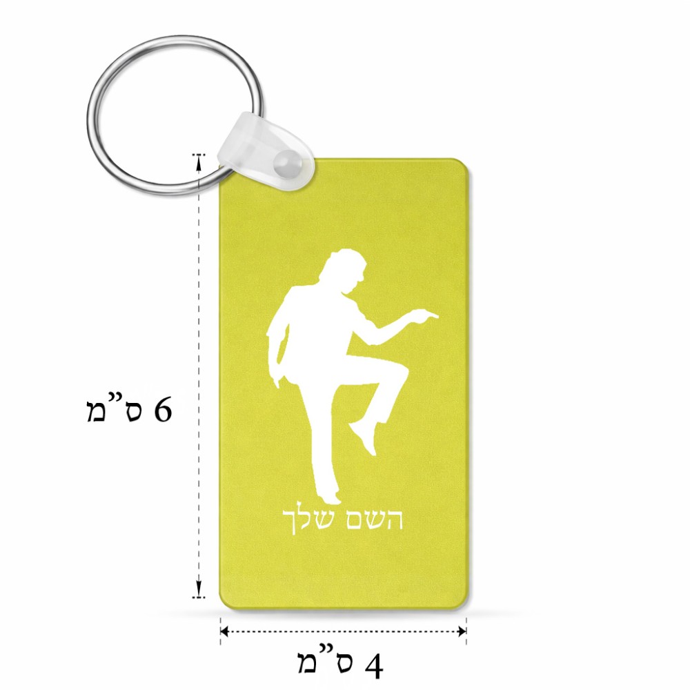 מחזיק מפתחות בצורת מלבן בעיצוב אישי עם השם שלך בעיצוב רקדן גודל המחזיק 6 × 4 ס"מ. את השם המבוקש ניתן לציין בהזמנה, אם לא צויין אנחנו ניצור קשר לבירור.