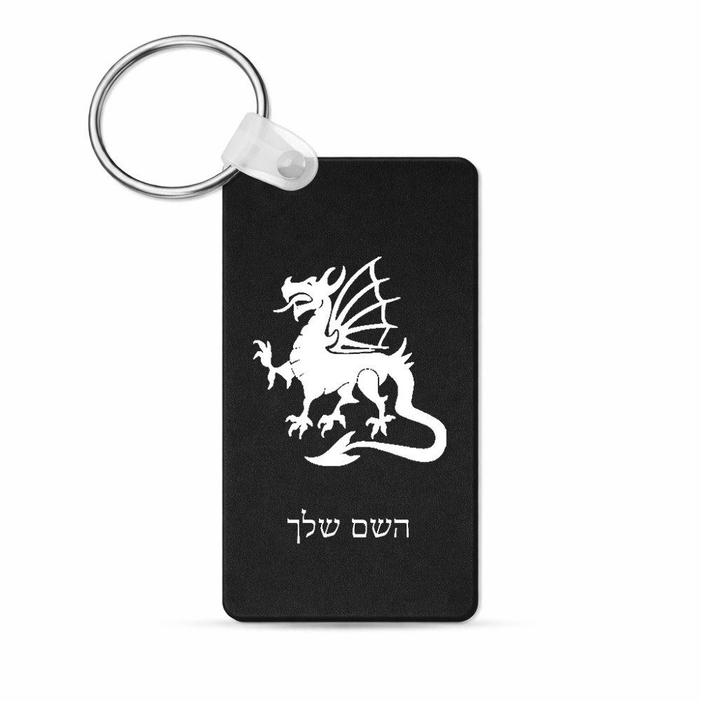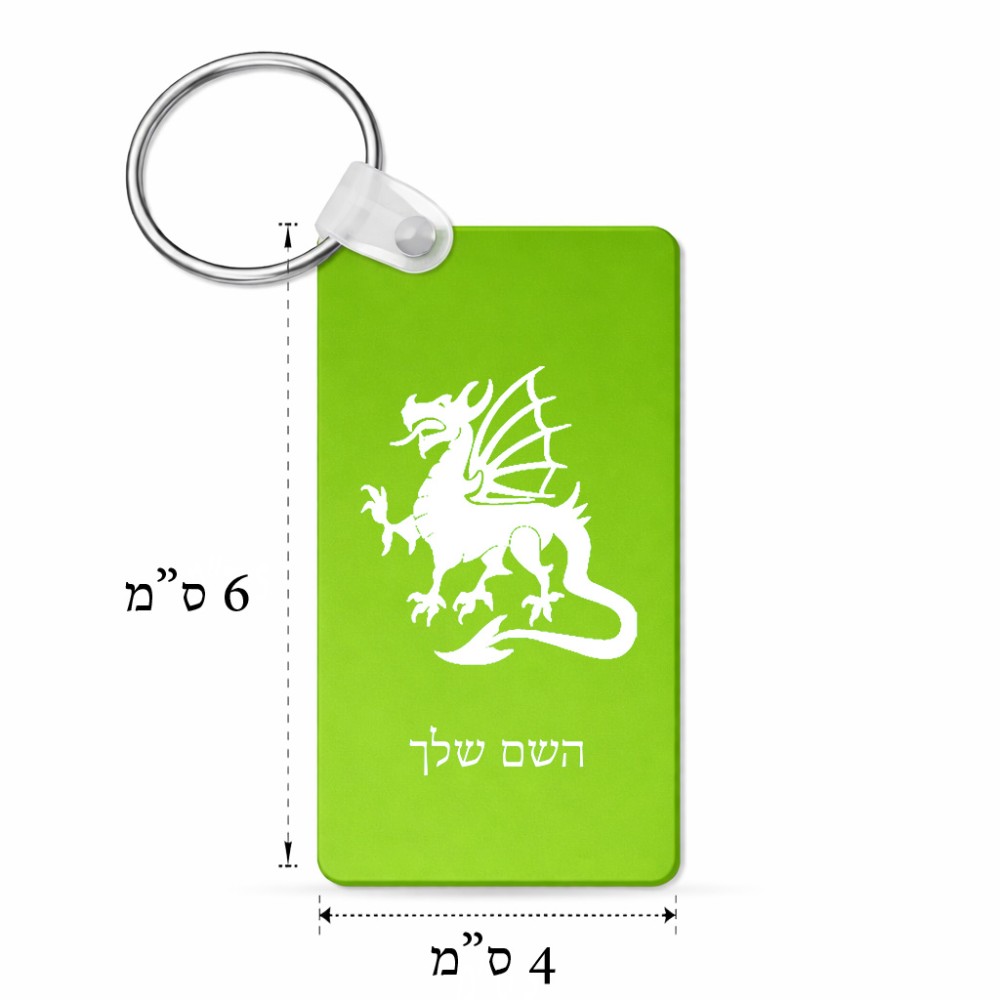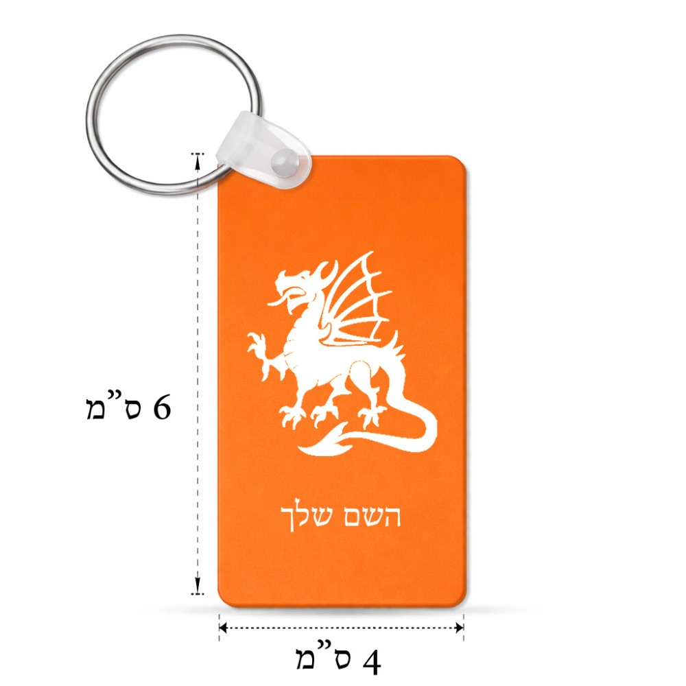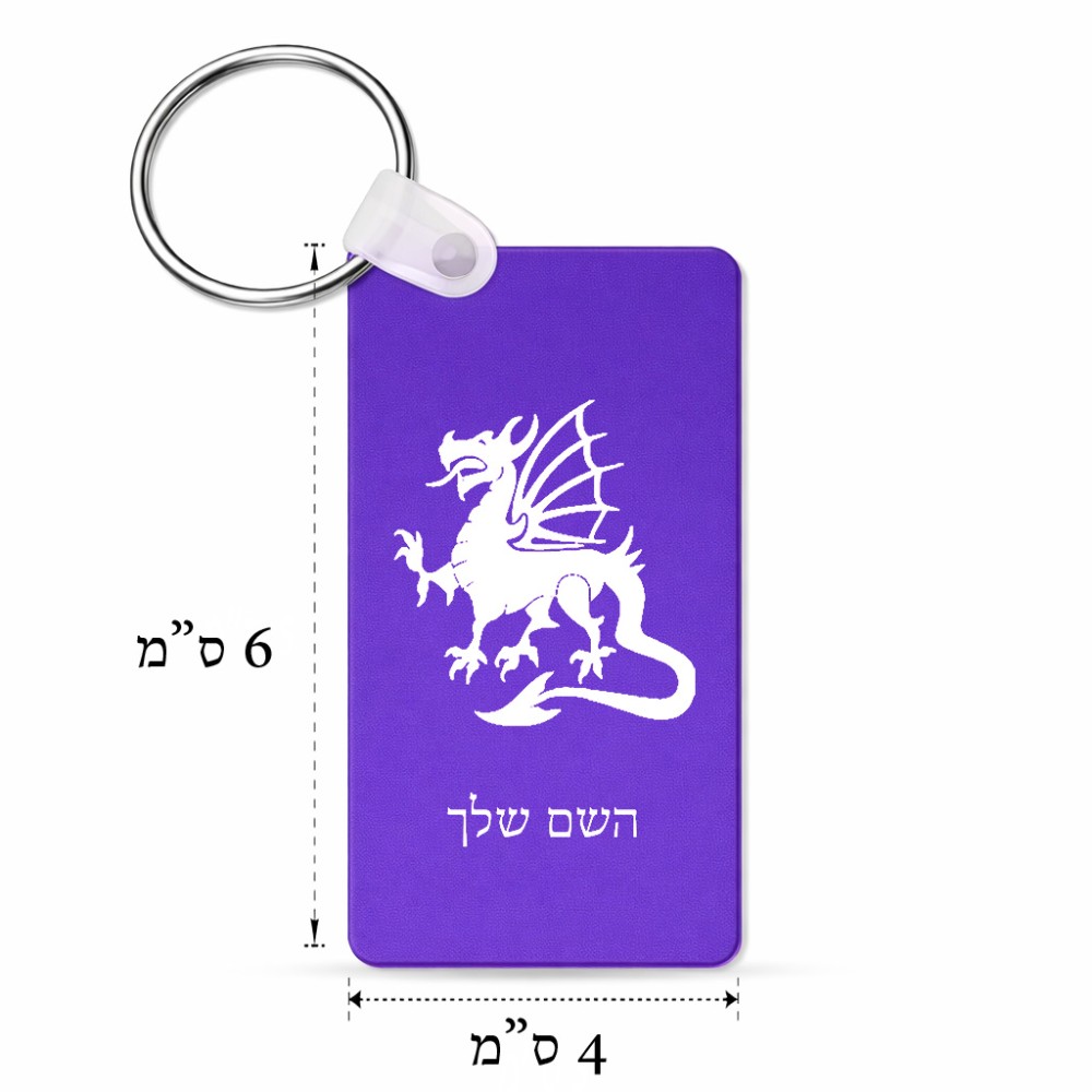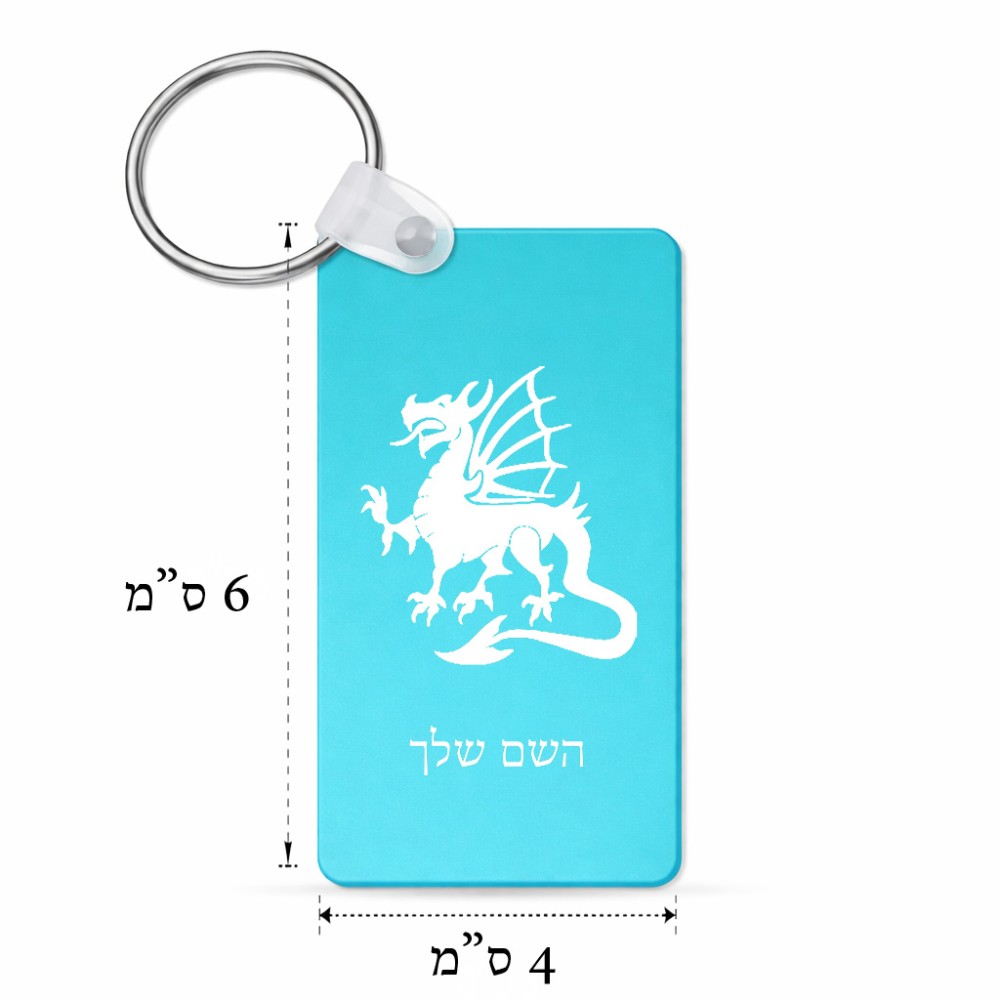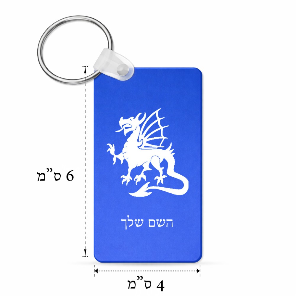 מחזיק מפתחות בצורת מלבן בעיצוב אישי עם השם שלך בעיצוב דרקון גודל המחזיק 6 × 4 ס"מ. את השם המבוקש ניתן לציין בהזמנה, אם לא צויין אנחנו ניצור קשר לבירור.