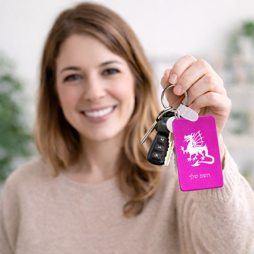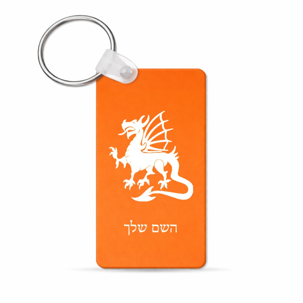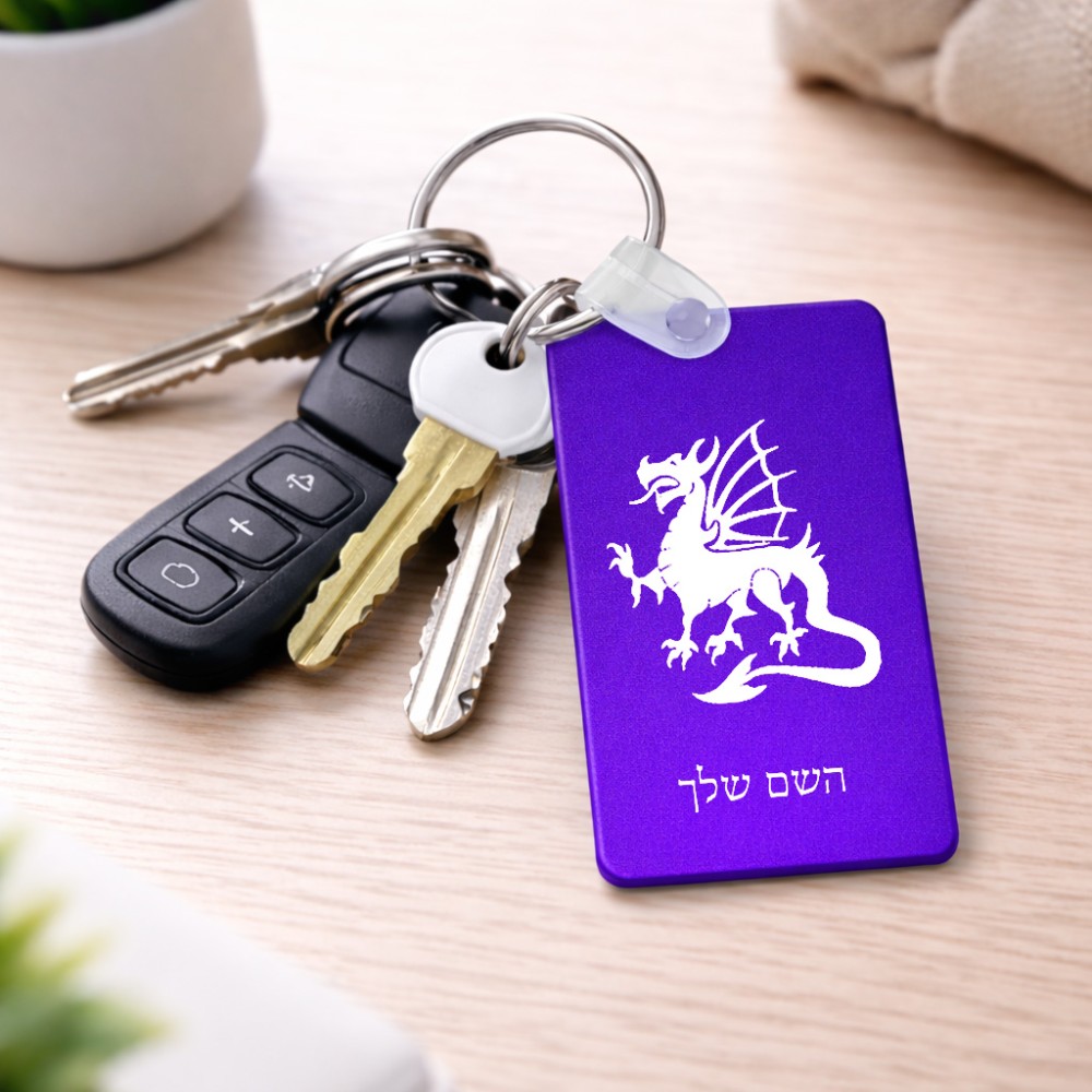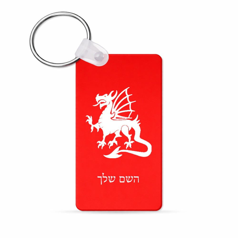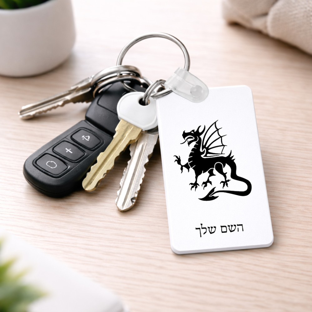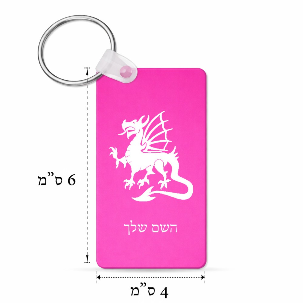 מחזיק מפתחות בצורת מלבן בעיצוב אישי עם השם שלך בעיצוב דרקון גודל המחזיק 6 × 4 ס"מ. את השם המבוקש ניתן לציין בהזמנה, אם לא צויין אנחנו ניצור קשר לבירור.