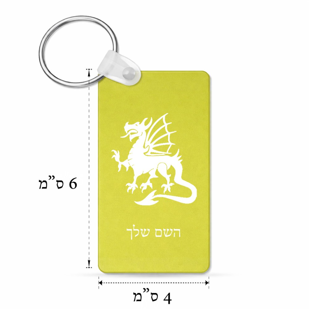 מחזיק מפתחות בצורת מלבן בעיצוב אישי עם השם שלך בעיצוב דרקון גודל המחזיק 6 × 4 ס"מ