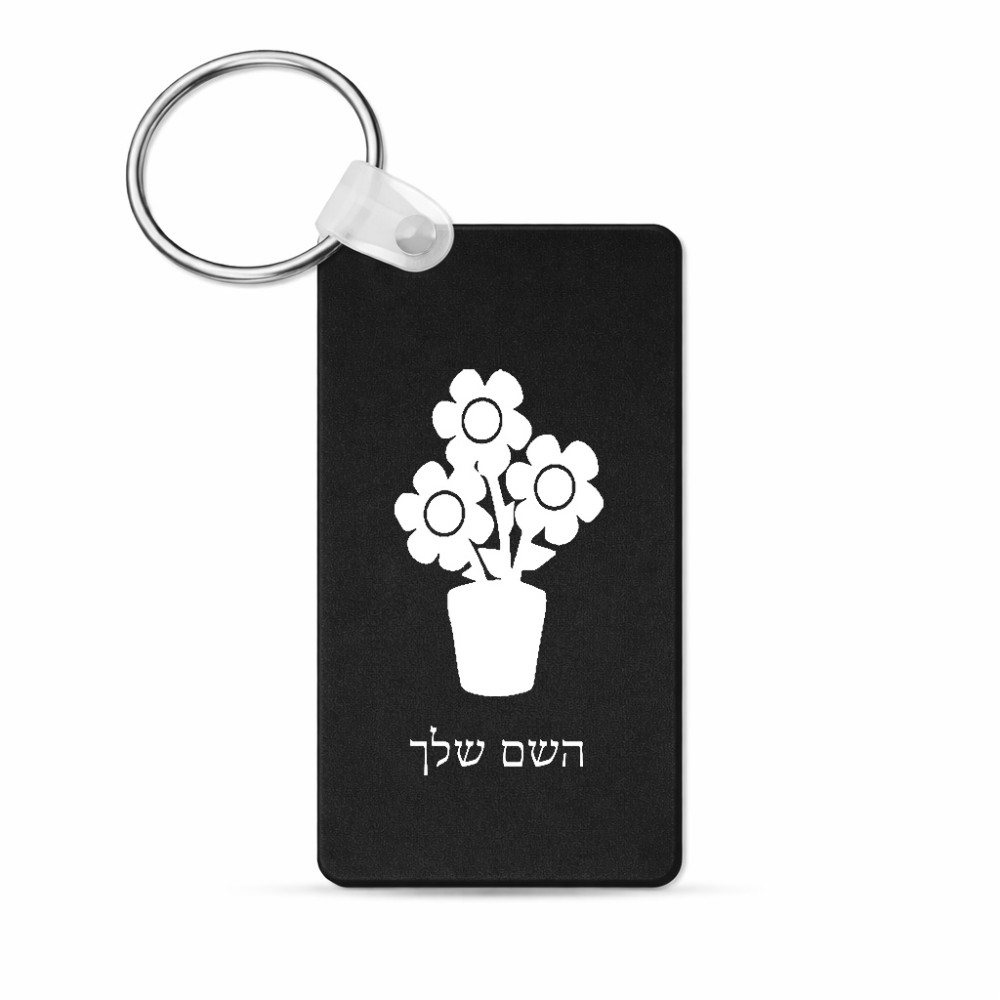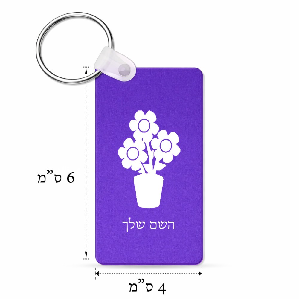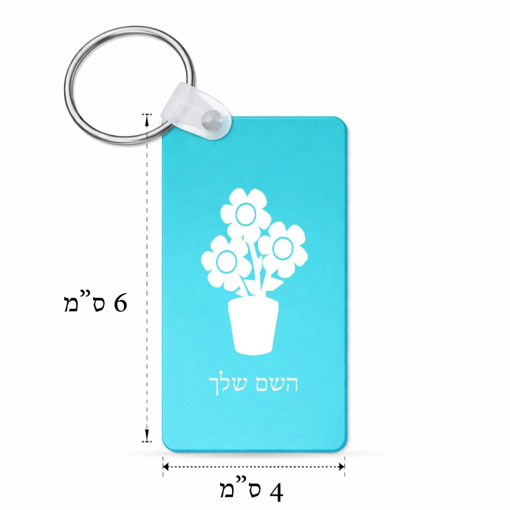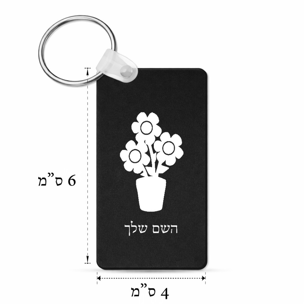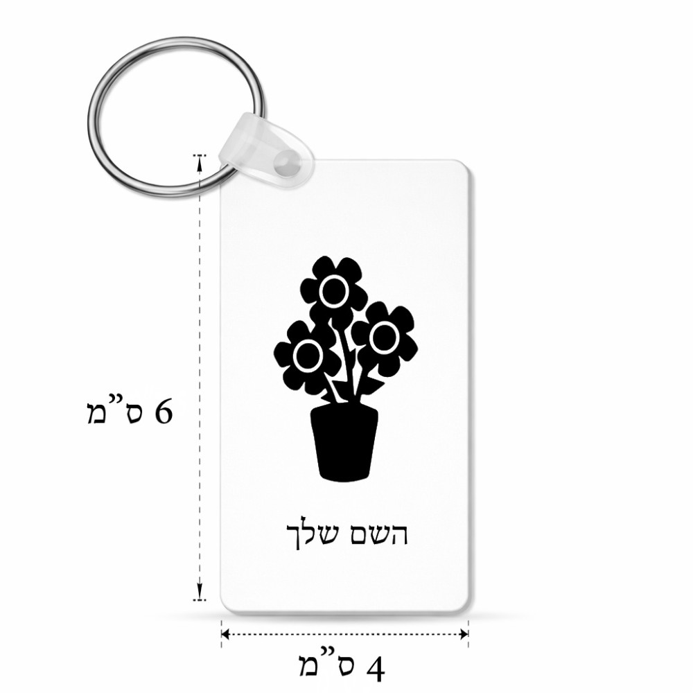מחזיק מפתחות בצורת מלבן בעיצוב אישי עם השם שלך בעיצוב פרח גודל המחזיק 6 × 4 ס"מ. את השם המבוקש ניתן לציין בהזמנה, אם לא צויין אנחנו ניצור קשר לבירור.