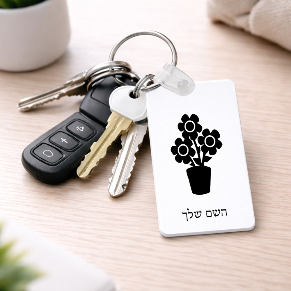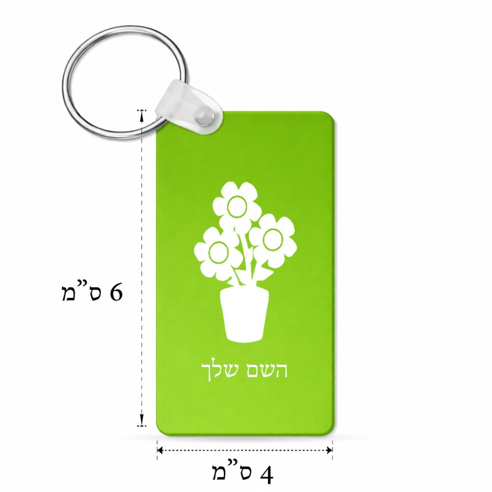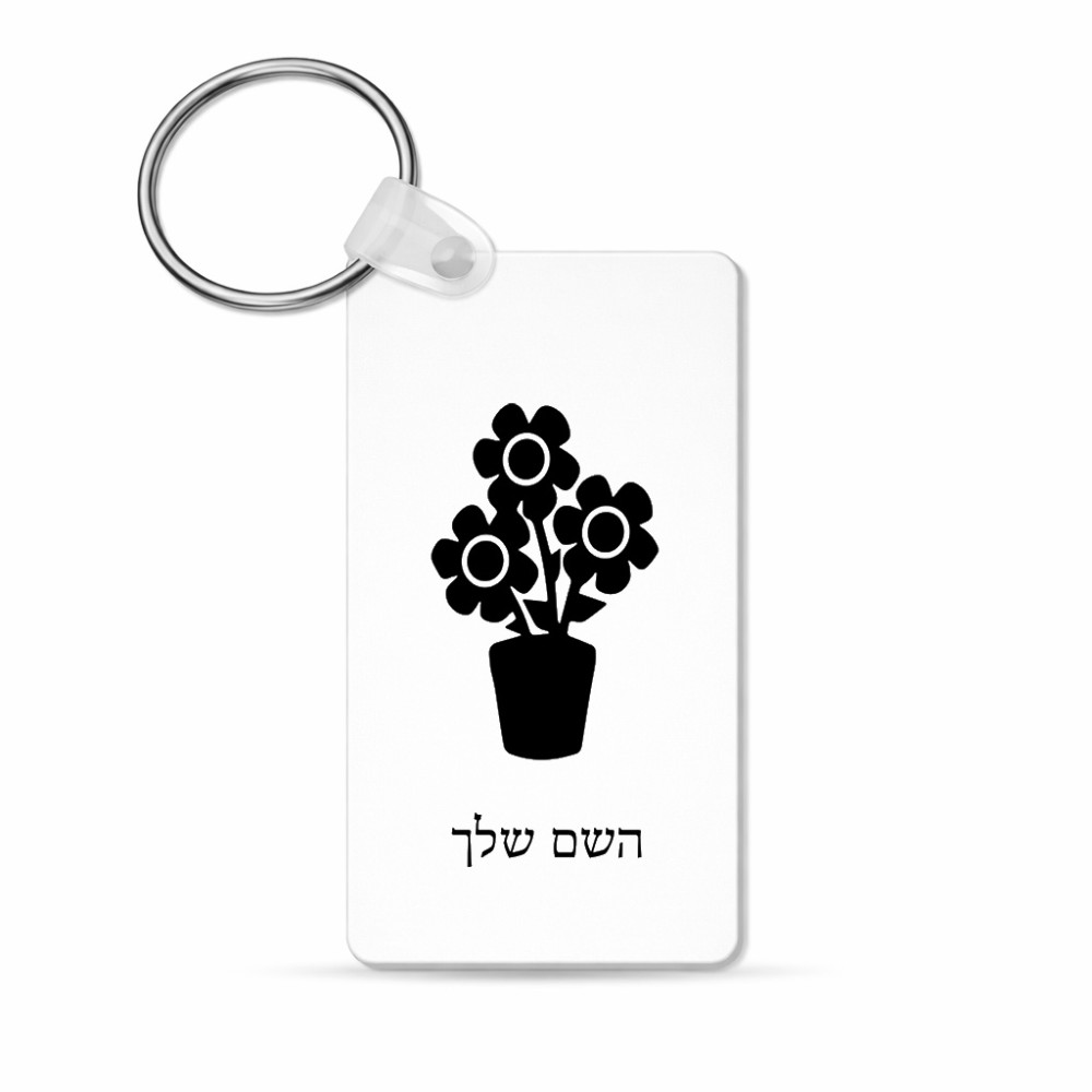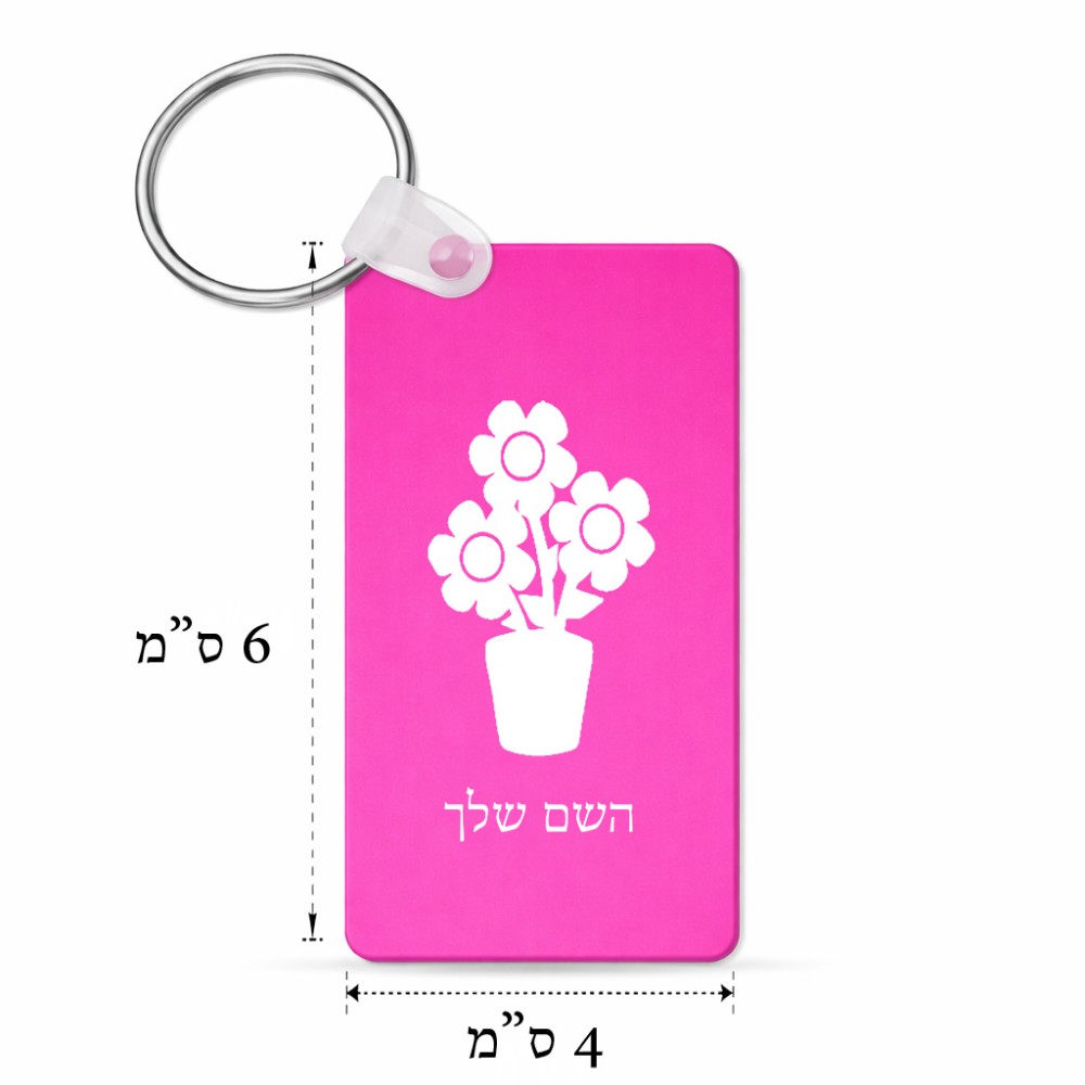 מחזיק מפתחות בצורת מלבן בעיצוב אישי עם השם שלך בעיצוב פרח גודל המחזיק 6 × 4 ס"מ. את השם המבוקש ניתן לציין בהזמנה, אם לא צויין אנחנו ניצור קשר לבירור.