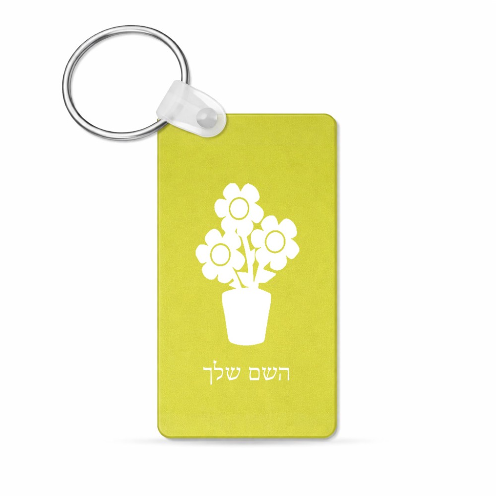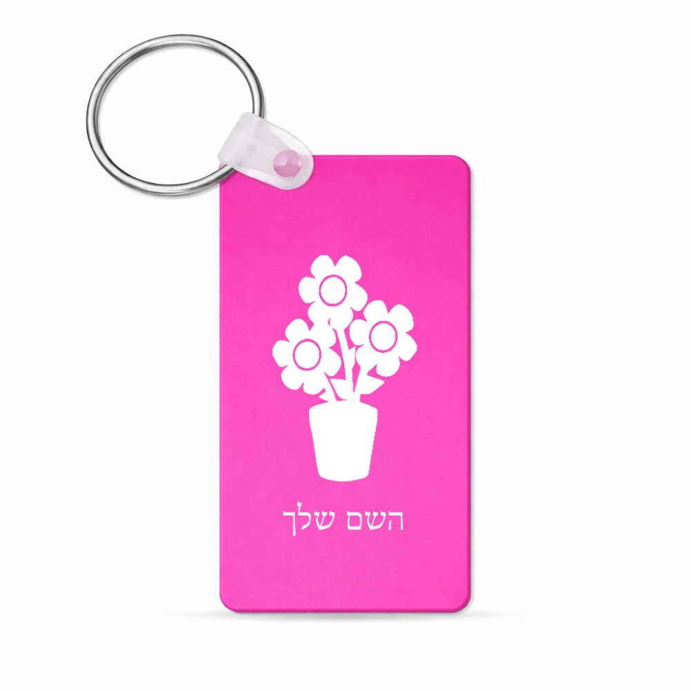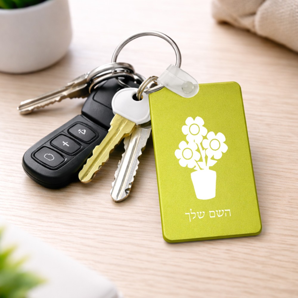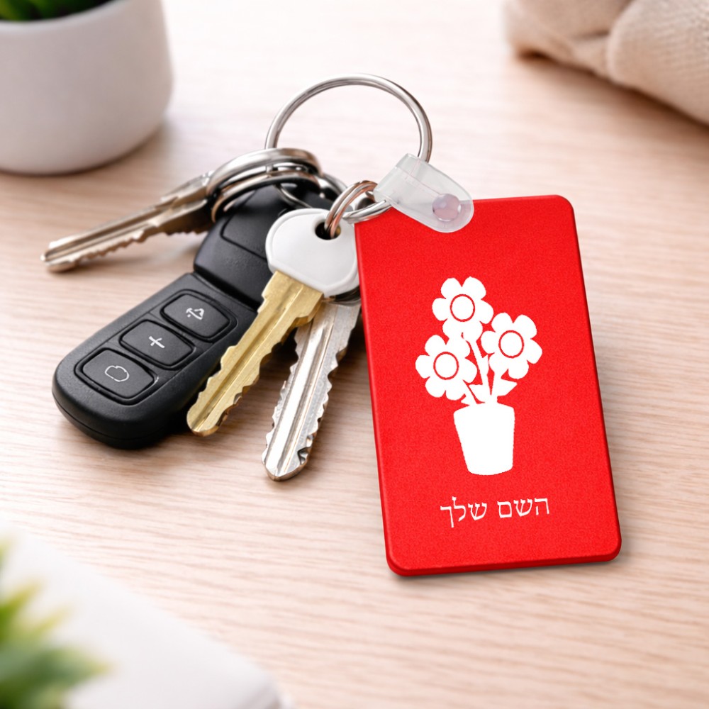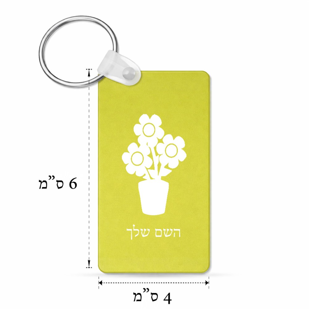 מחזיק מפתחות בצורת מלבן בעיצוב אישי עם השם שלך בעיצוב פרח גודל המחזיק 6 × 4 ס"מ. את השם המבוקש ניתן לציין בהזמנה, אם לא צויין אנחנו ניצור קשר לבירור.