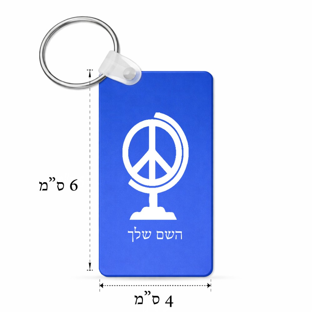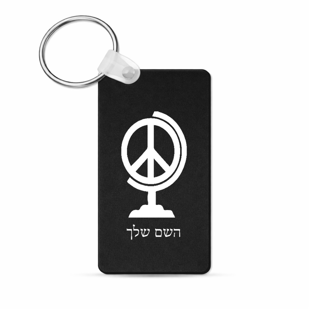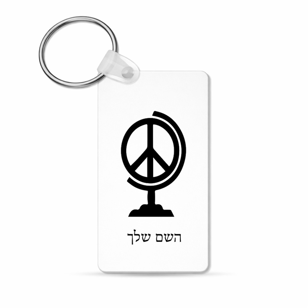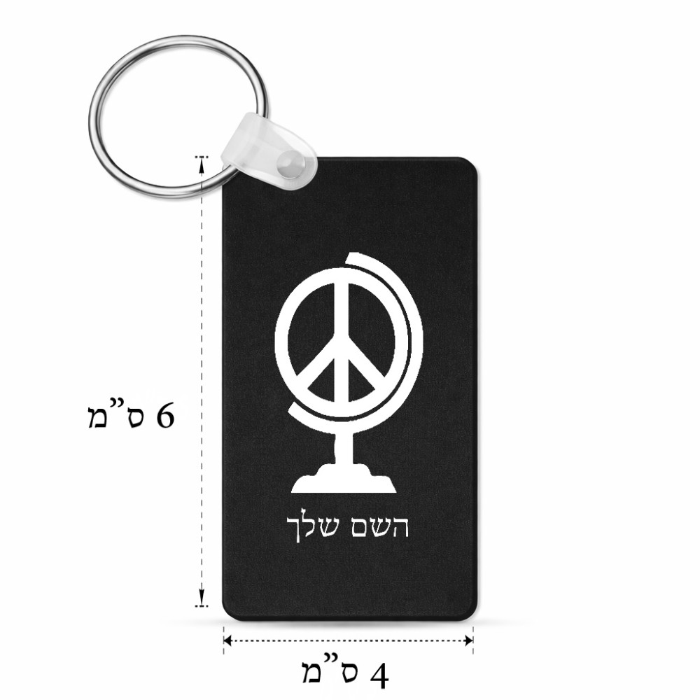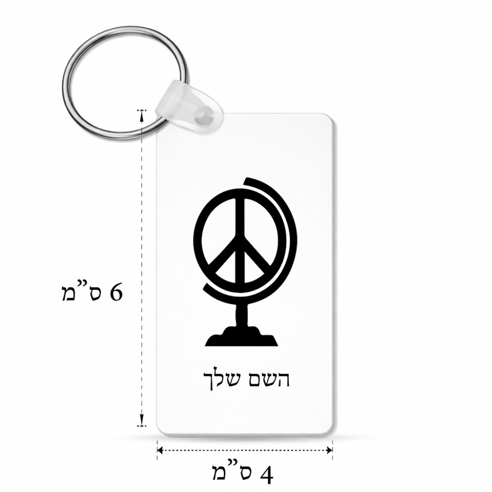 מחזיק מפתחות בצורת מלבן בעיצוב אישי עם השם שלך בעיצוב גלובוסי שלום גודל המחזיק 6 × 4 ס"מ. את השם המבוקש ניתן לציין בהזמנה, אם לא צויין אנחנו ניצור קשר לבירור.