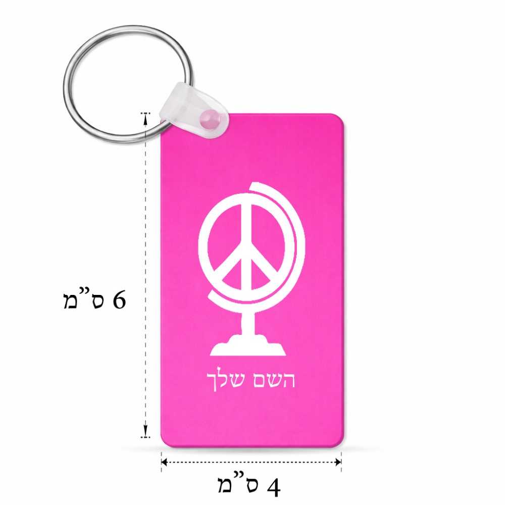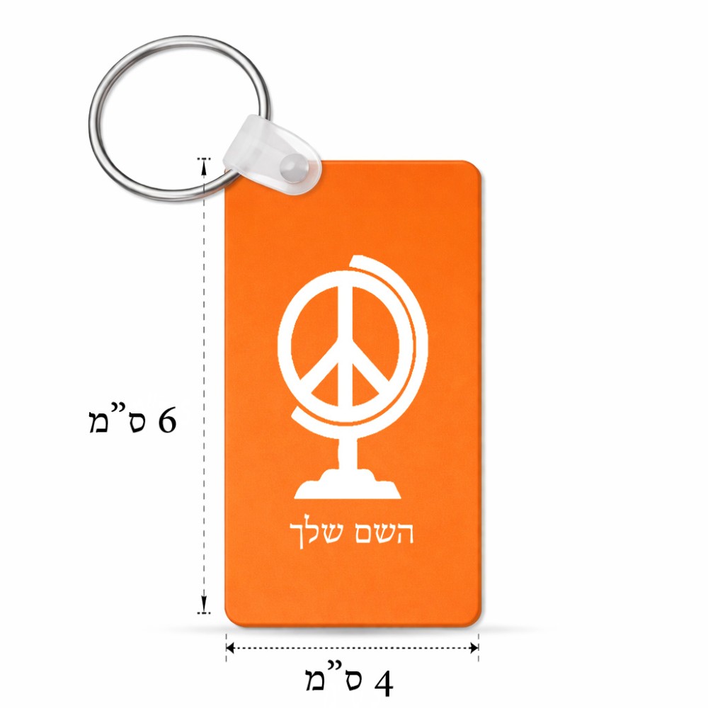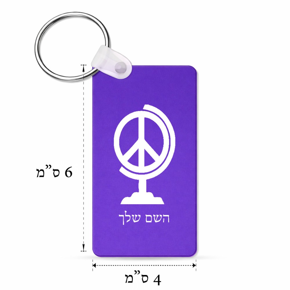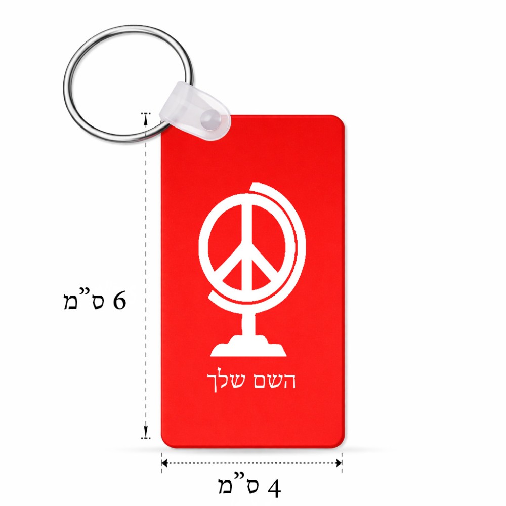 מחזיק מפתחות בצורת מלבן בעיצוב אישי עם השם שלך בעיצוב גלובוסי שלום גודל המחזיק 6 × 4 ס"מ. את השם המבוקש ניתן לציין בהזמנה, אם לא צויין אנחנו ניצור קשר לבירור.