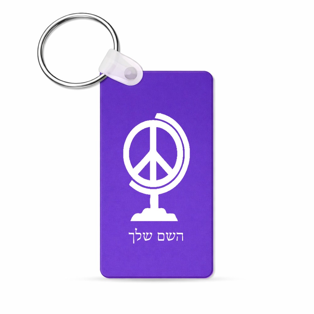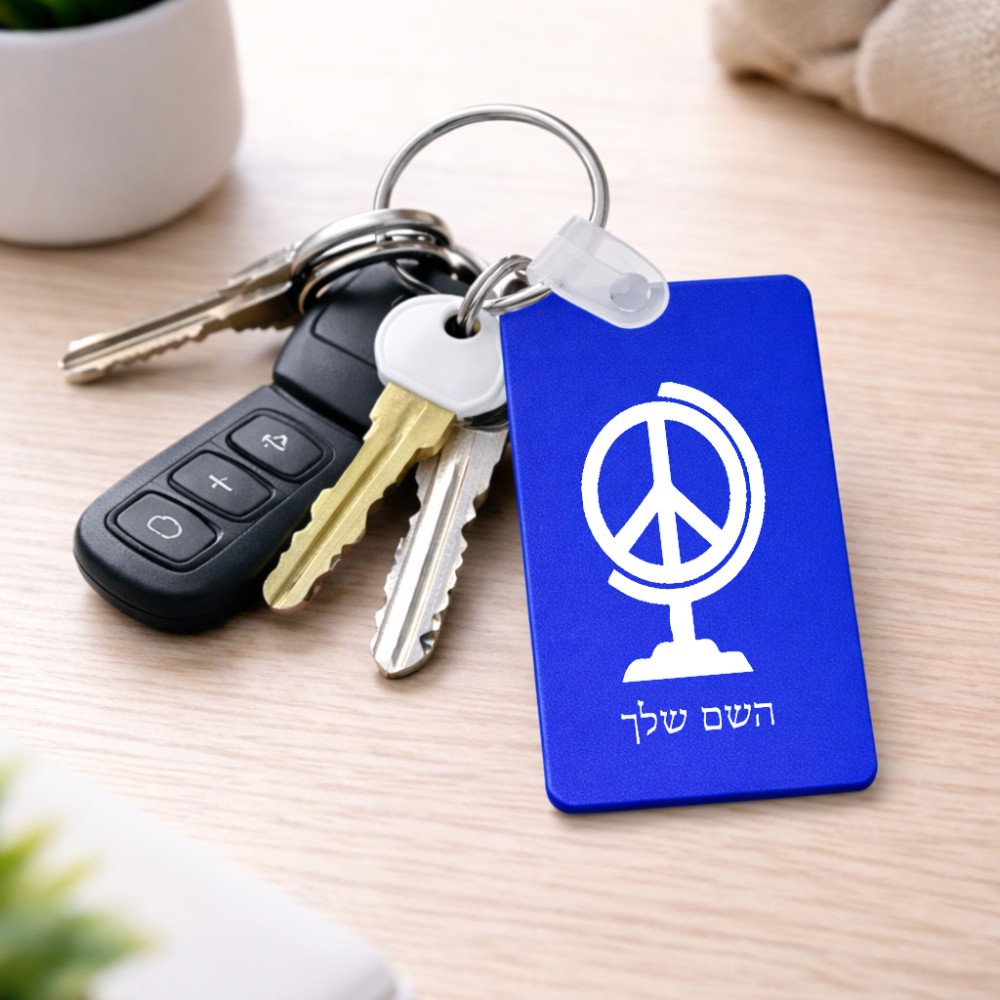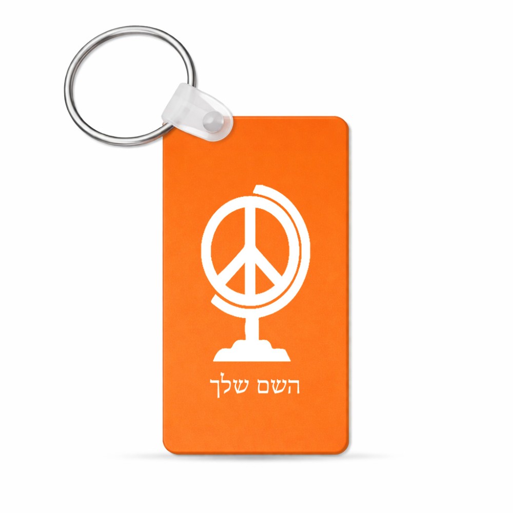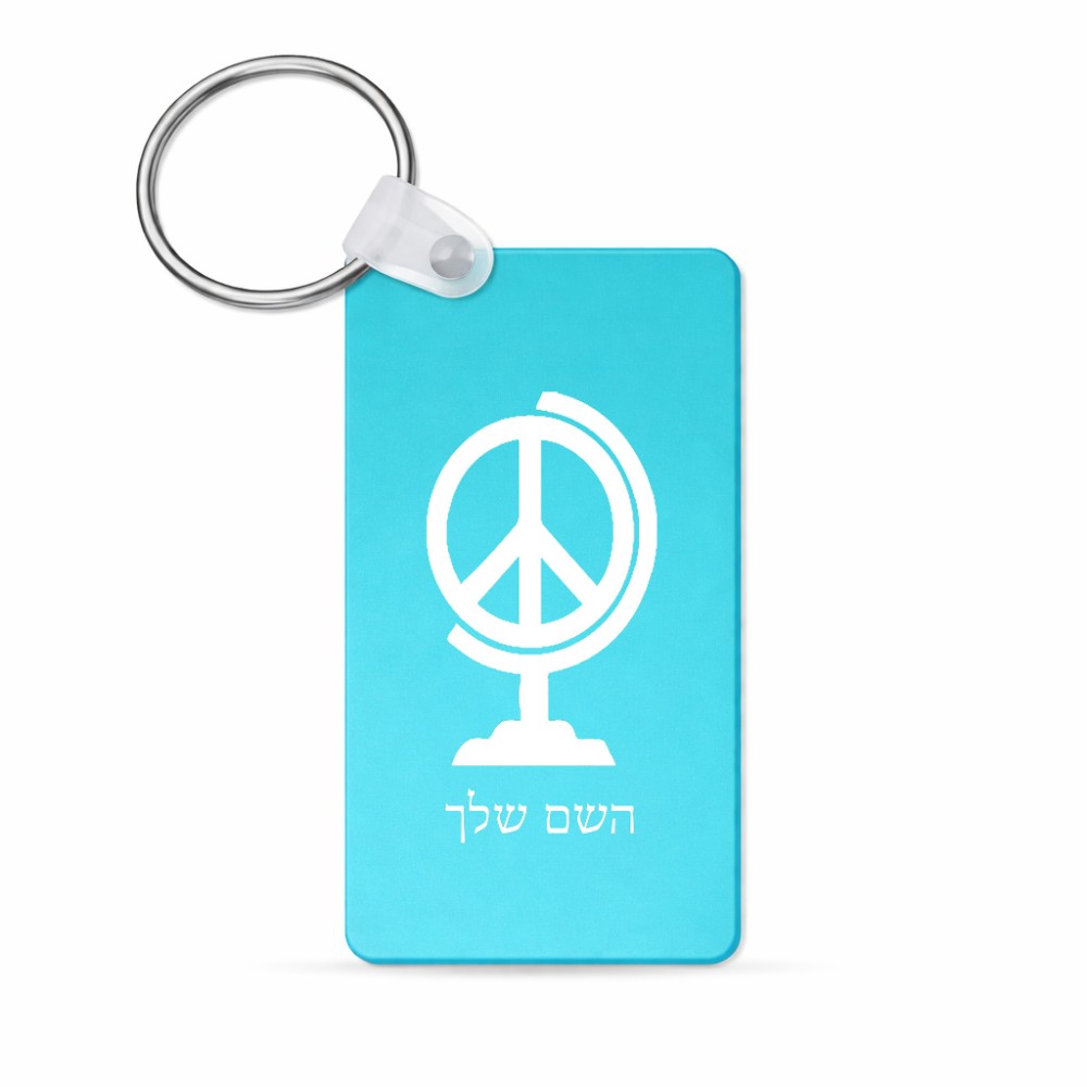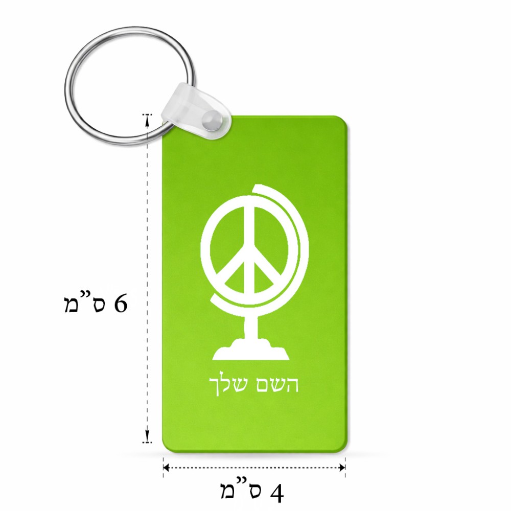 מחזיק מפתחות בצורת מלבן בעיצוב אישי עם השם שלך בעיצוב גלובוסי שלום גודל המחזיק 6 × 4 ס"מ. את השם המבוקש ניתן לציין בהזמנה, אם לא צויין אנחנו ניצור קשר לבירור.