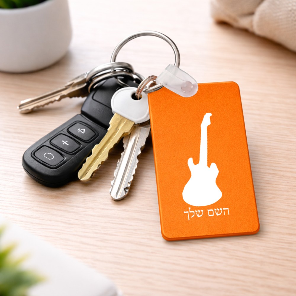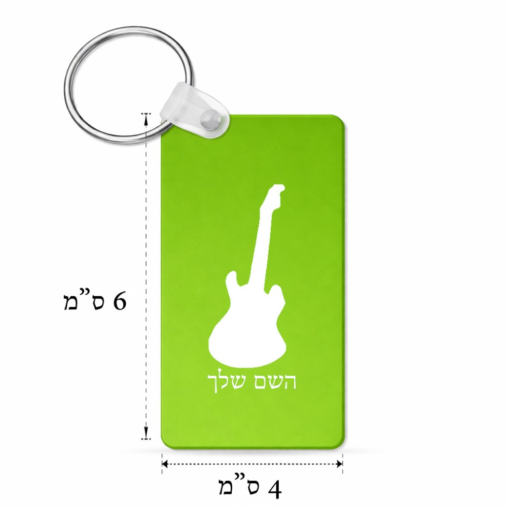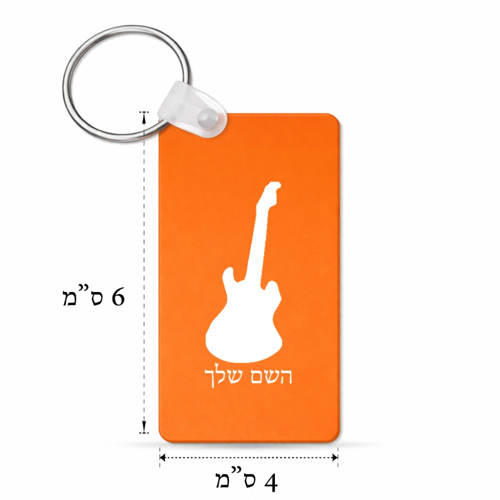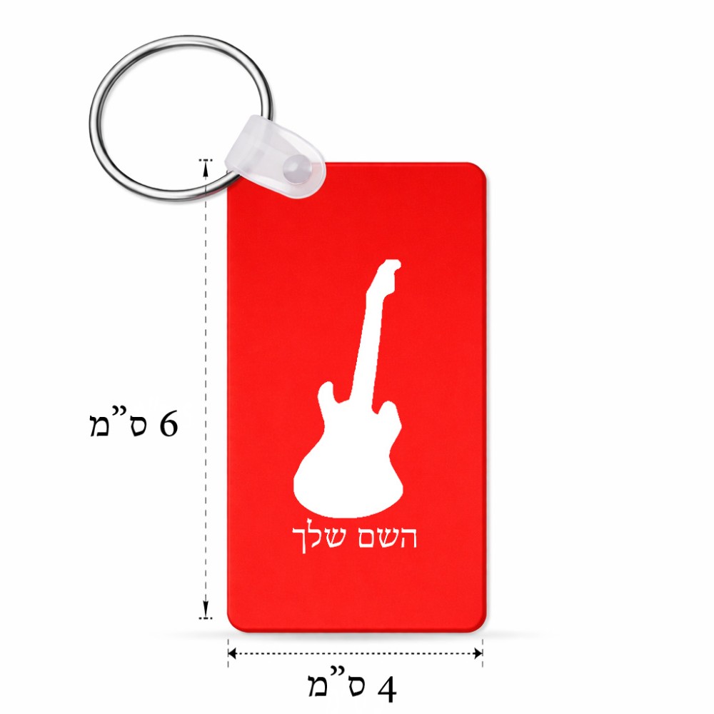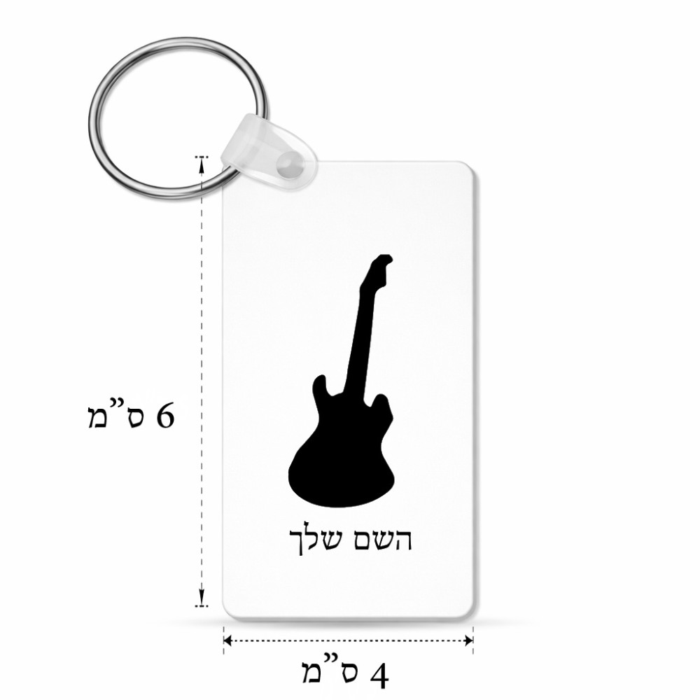 מחזיק מפתחות בצורת מלבן בעיצוב אישי עם השם שלך בעיצוב גיטרה גודל המחזיק 6 × 4 ס"מ. את השם המבוקש ניתן לציין בהזמנה, אם לא צויין אנחנו ניצור קשר לבירור.