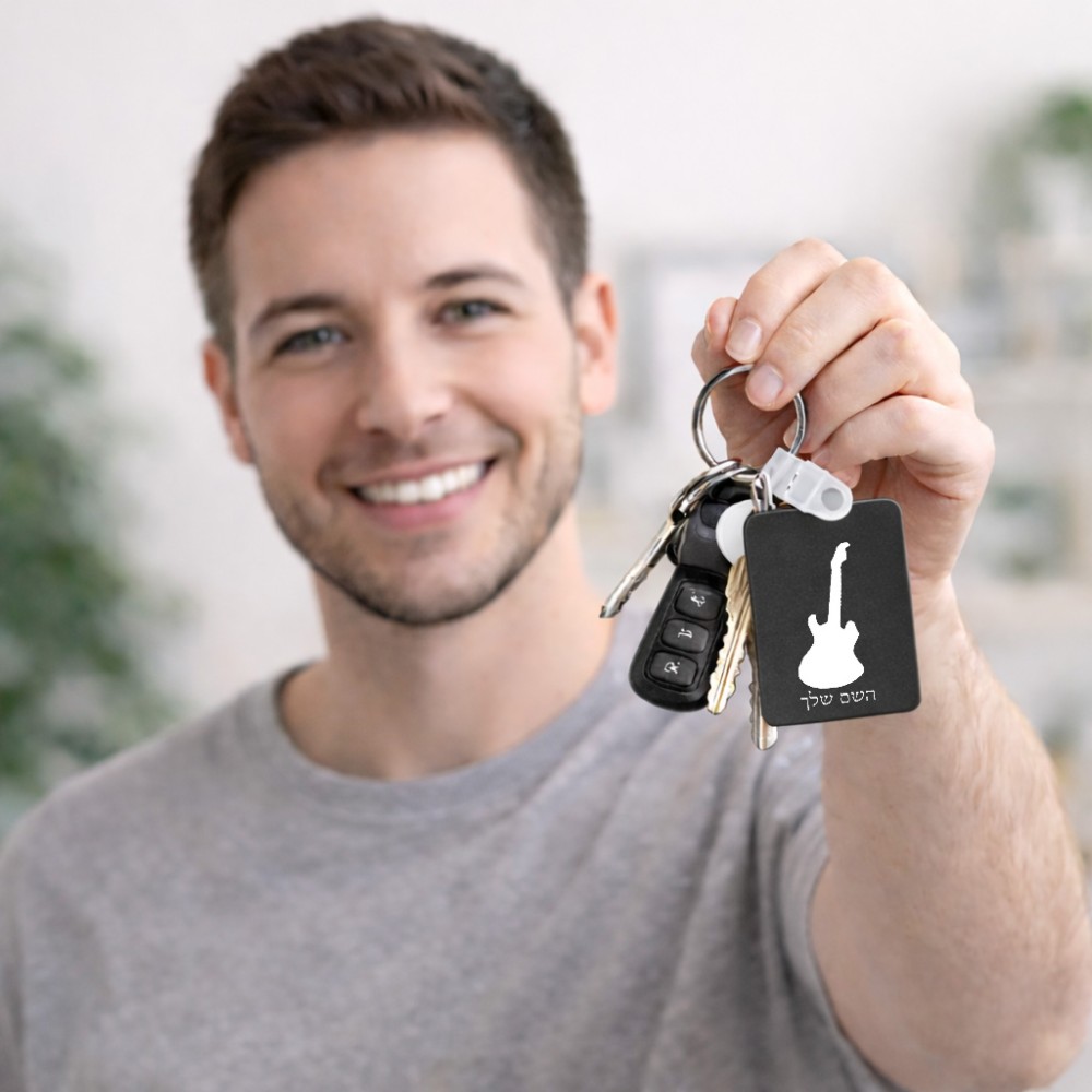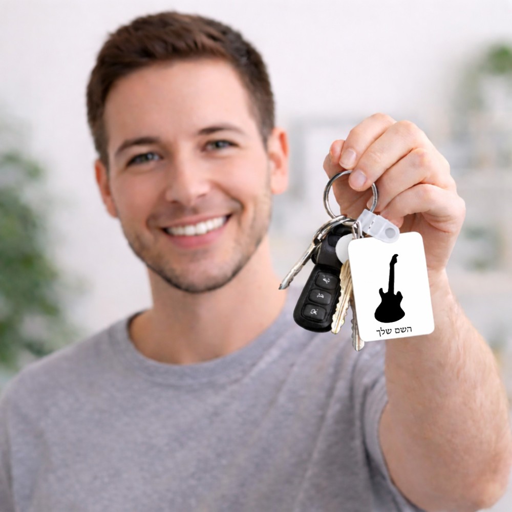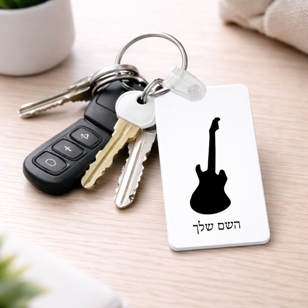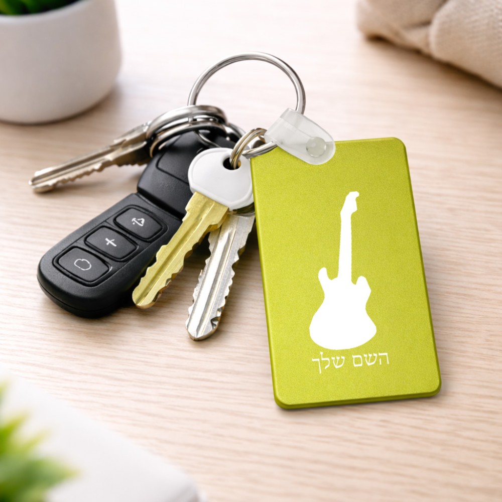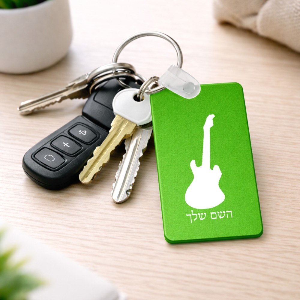 מחזיק מפתחות בצורת מלבן בעיצוב אישי עם השם שלך בעיצוב גיטרה גודל המחזיק 6 × 4 ס"מ. את השם המבוקש ניתן לציין בהזמנה, אם לא צויין אנחנו ניצור קשר לבירור.