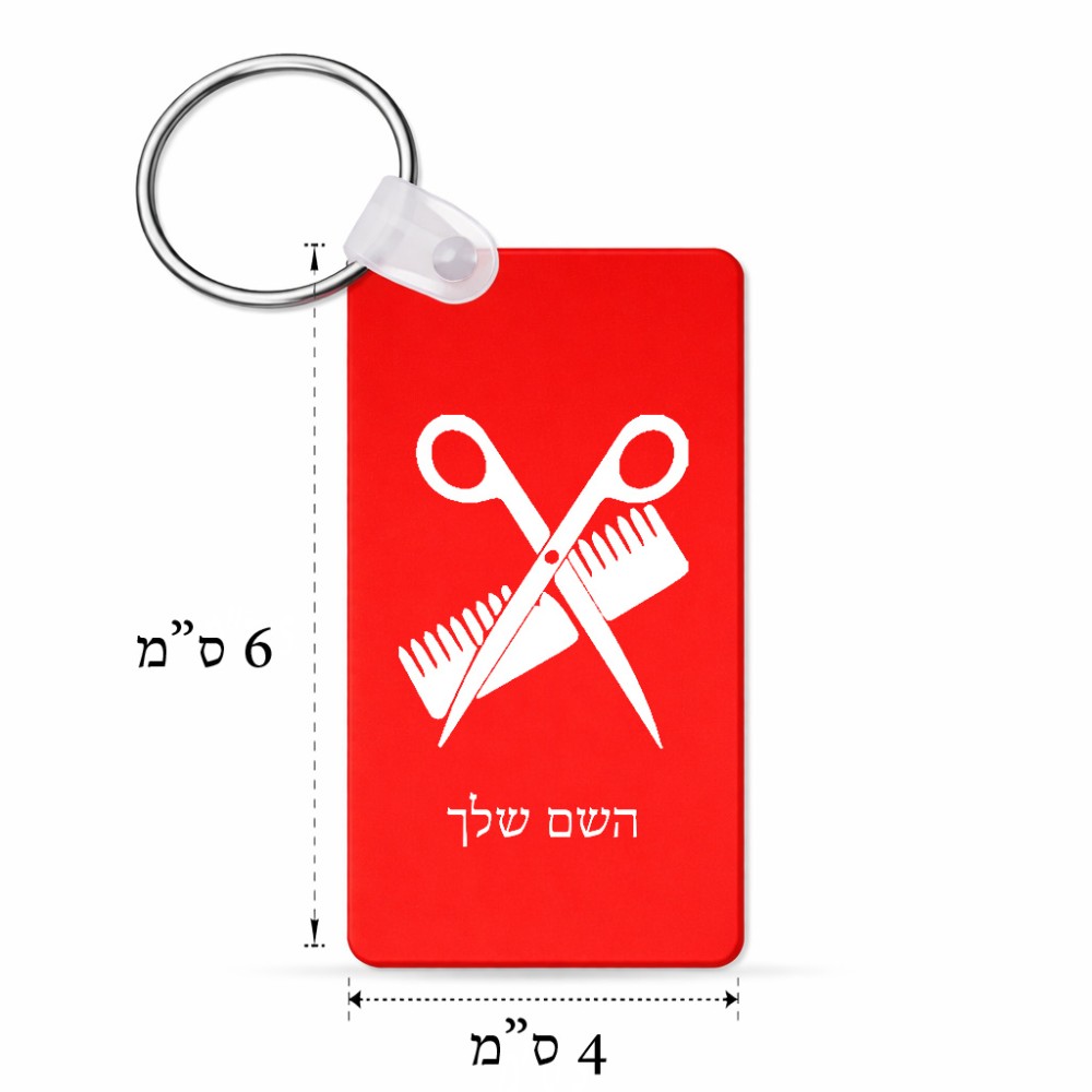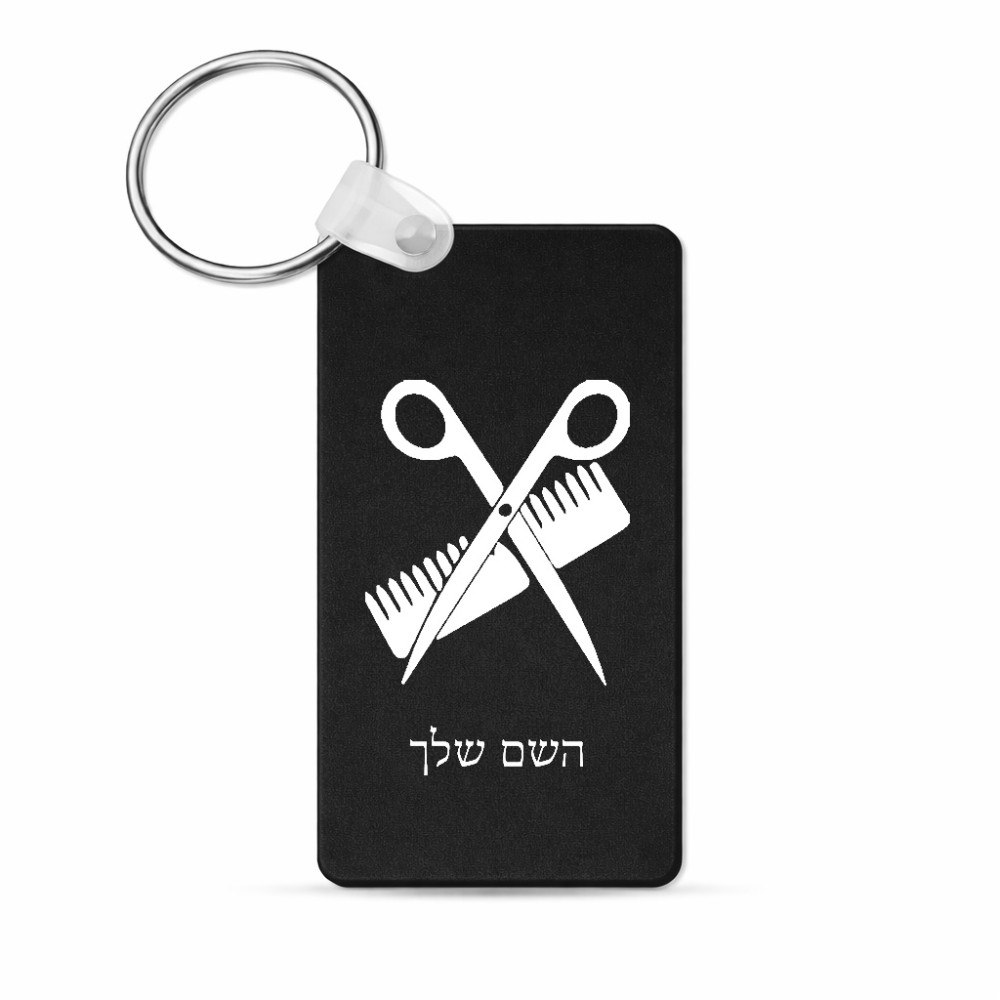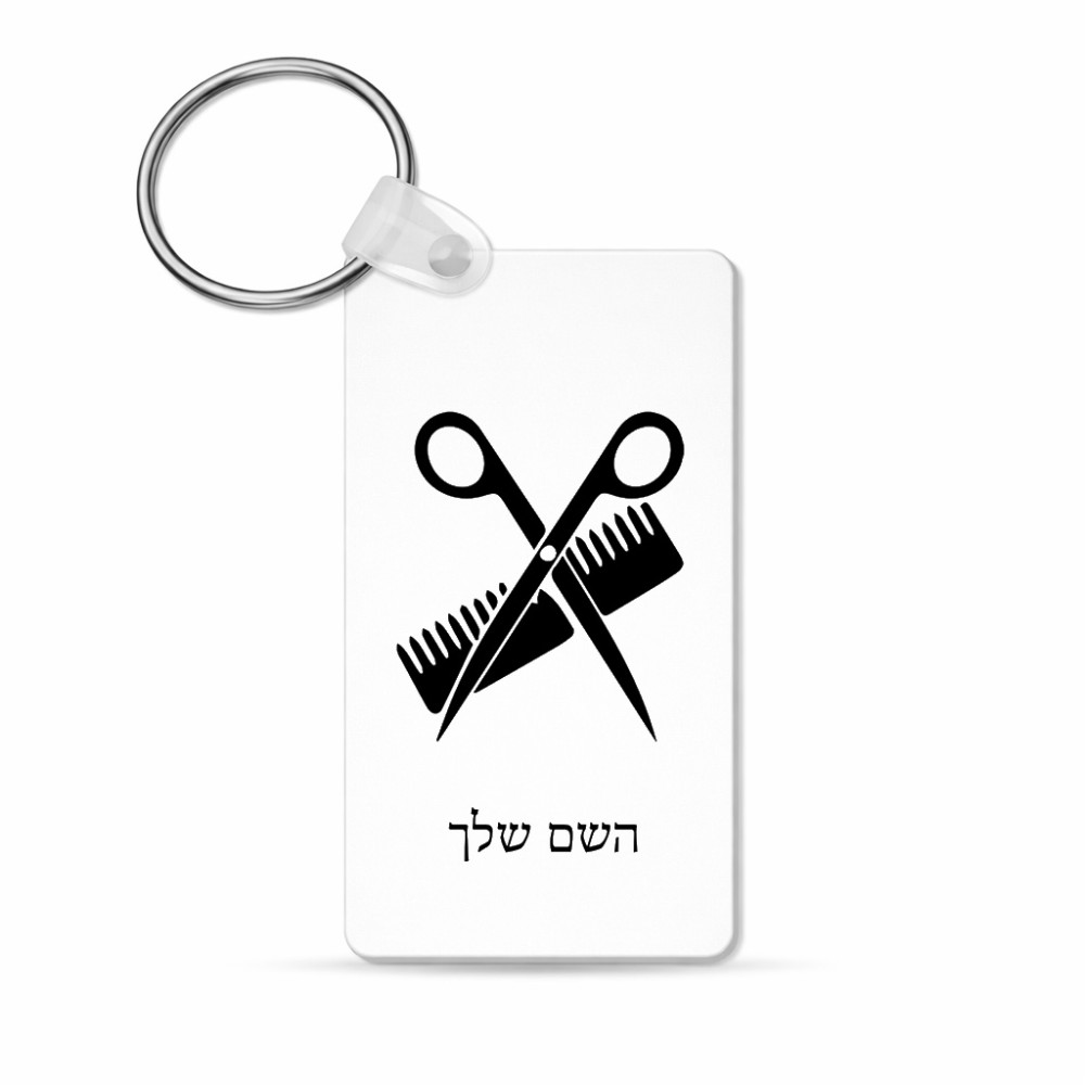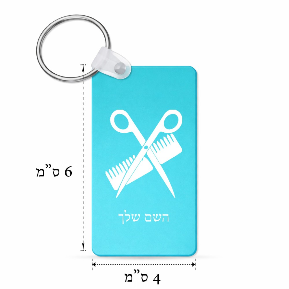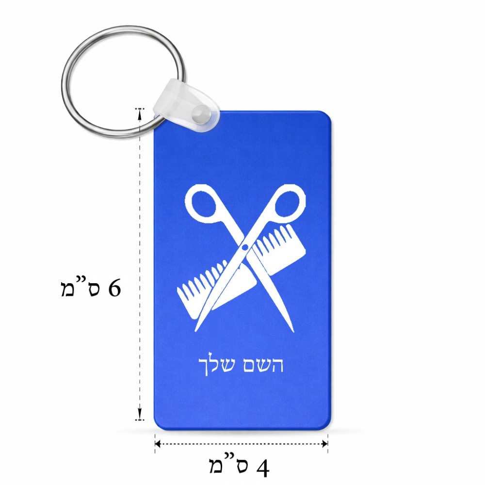 מחזיק מפתחות בצורת מלבן בעיצוב אישי עם השם שלך בעיצוב מעצב שיער גודל המחזיק 6 × 4 ס"מ. את השם המבוקש ניתן לציין בהזמנה, אם לא צויין אנחנו ניצור קשר לבירור.