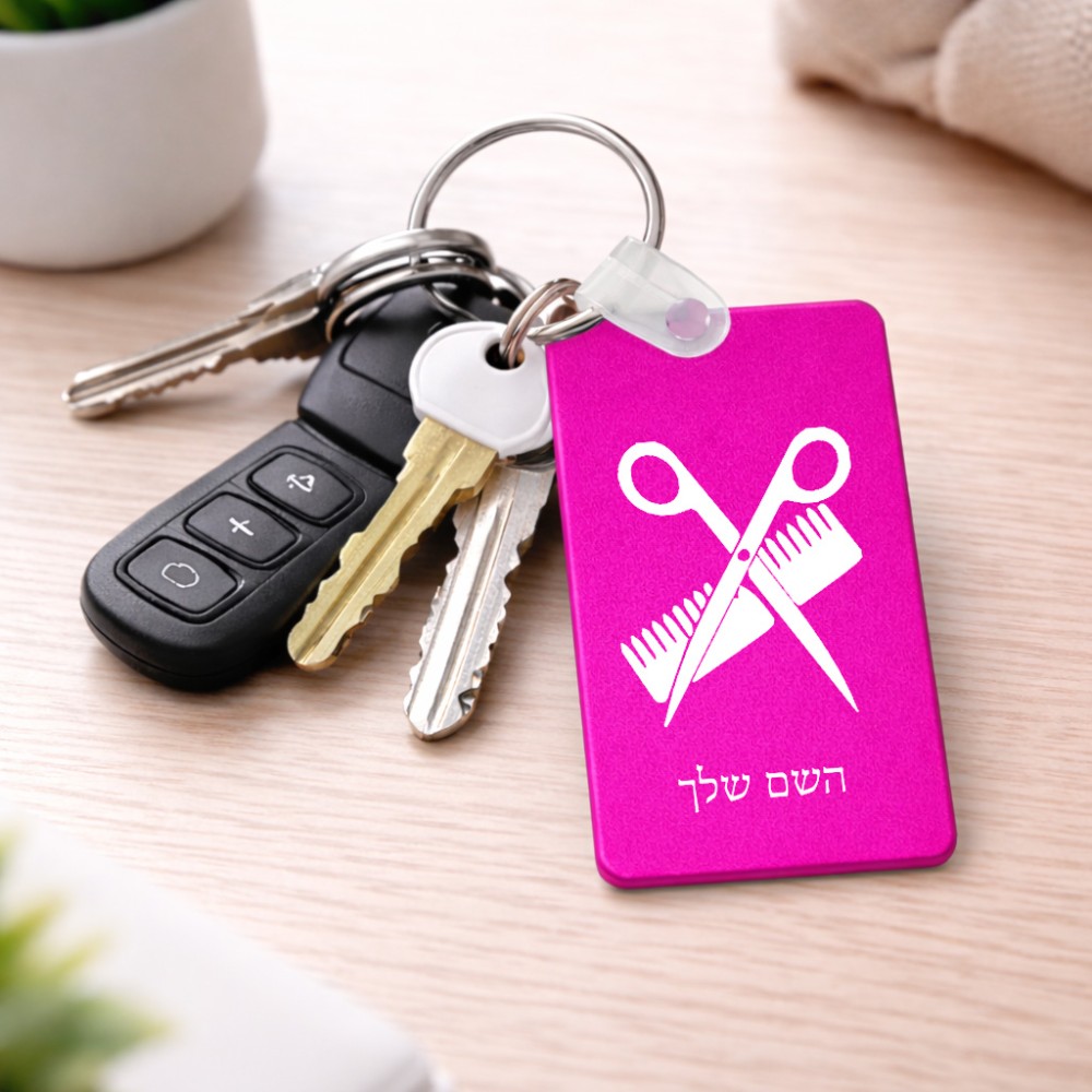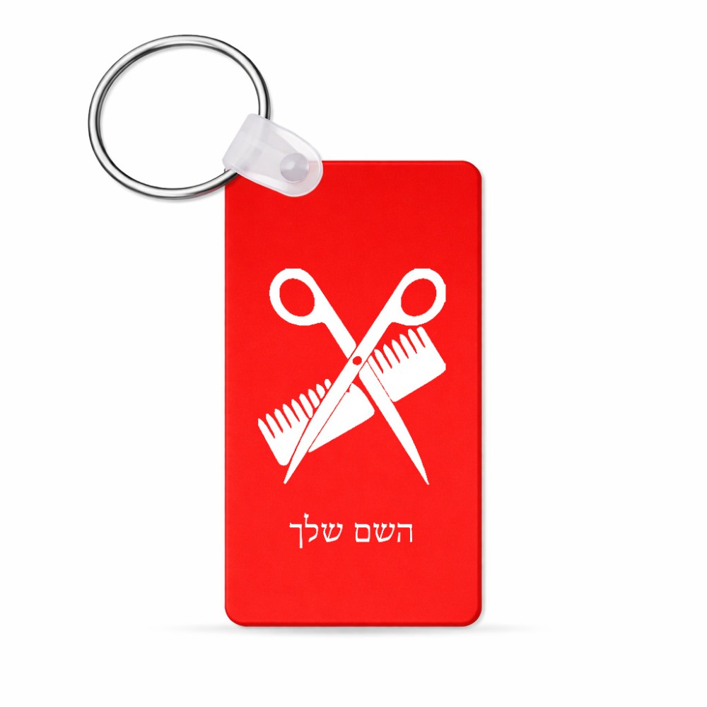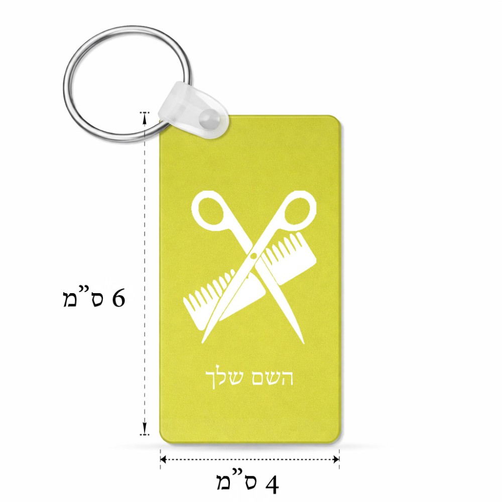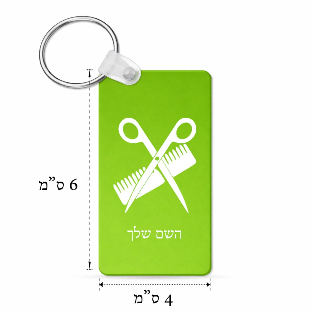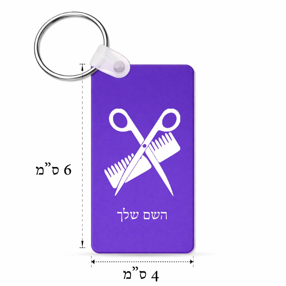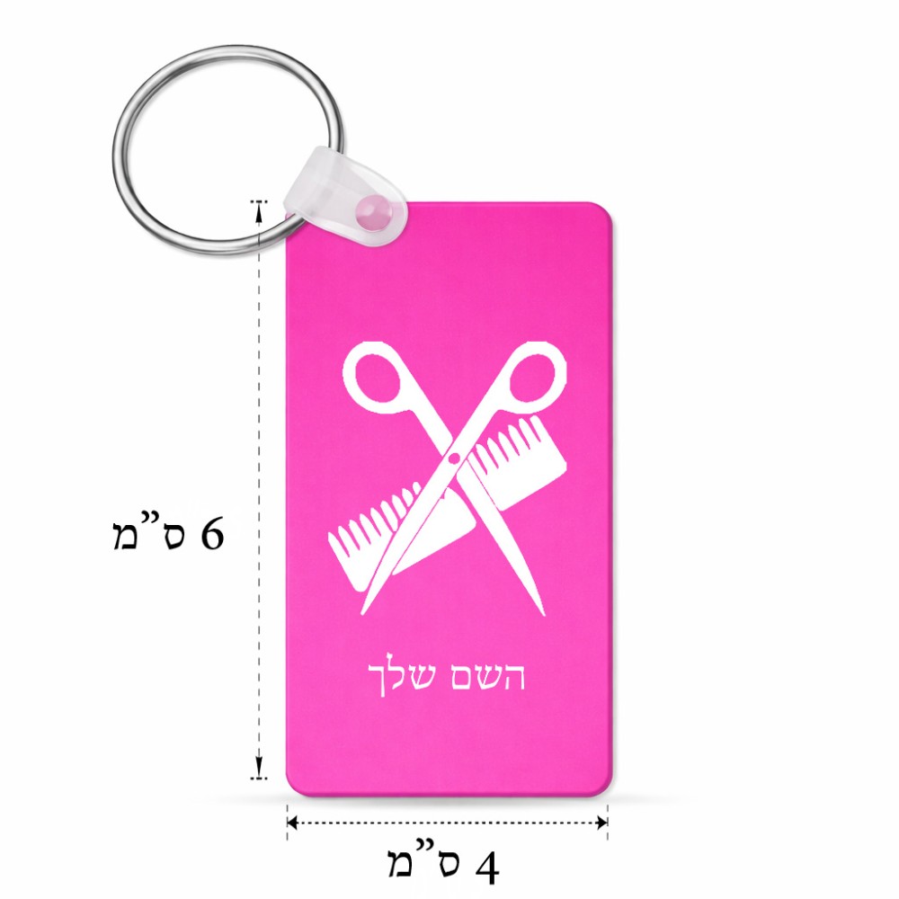 מחזיק מפתחות בצורת מלבן בעיצוב אישי עם השם שלך בעיצוב מעצב שיער גודל המחזיק 6 × 4 ס"מ. את השם המבוקש ניתן לציין בהזמנה, אם לא צויין אנחנו ניצור קשר לבירור.