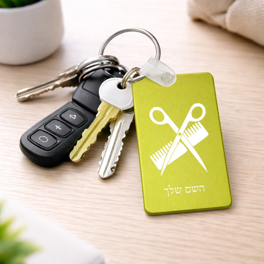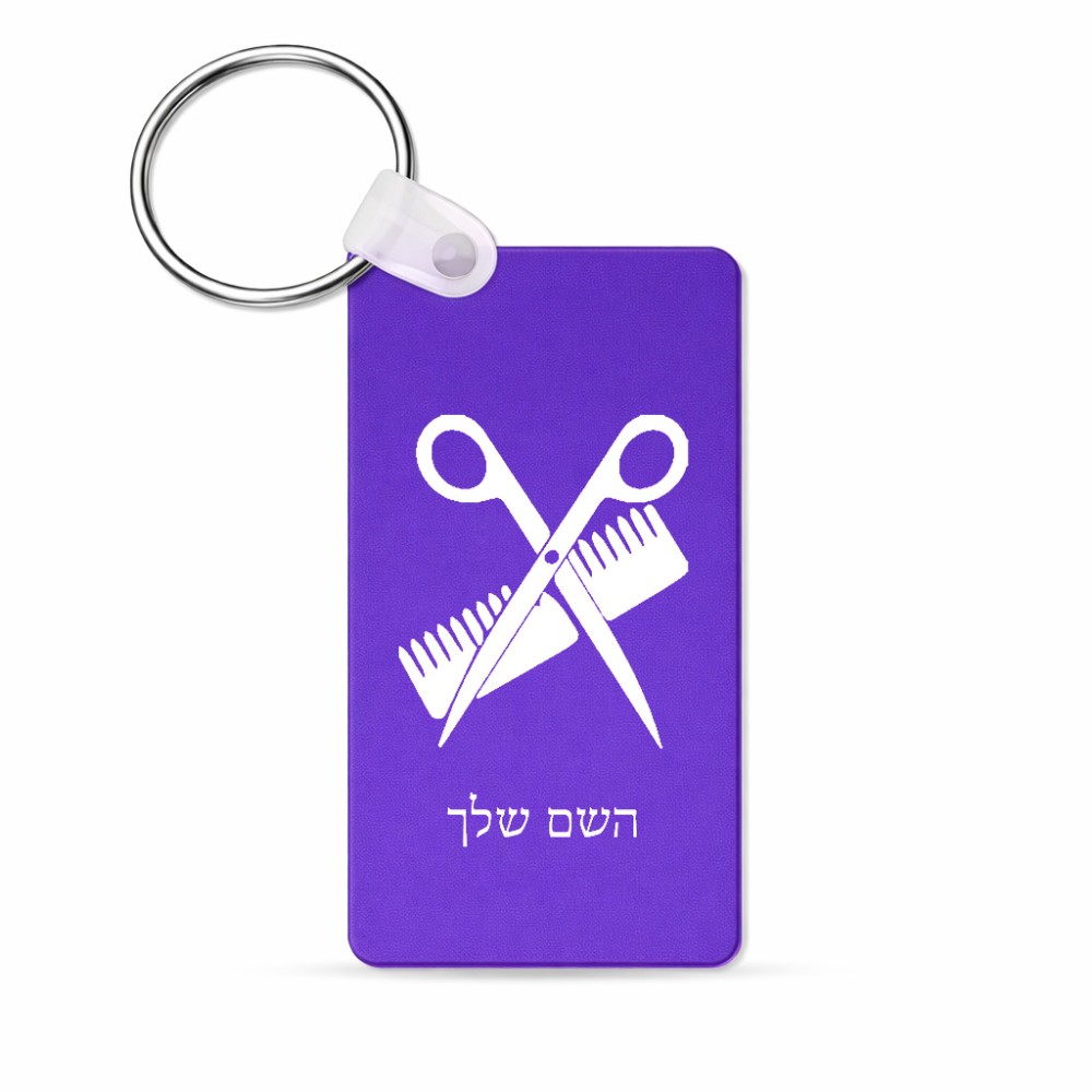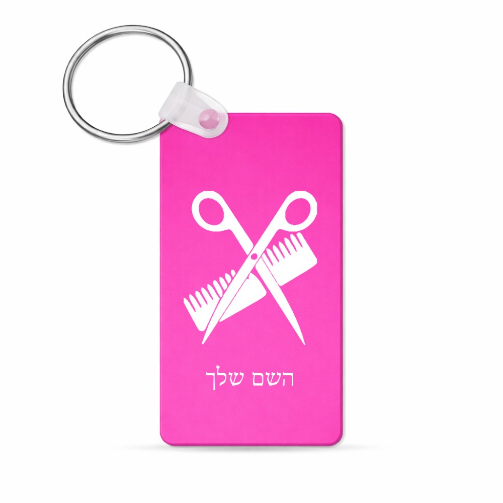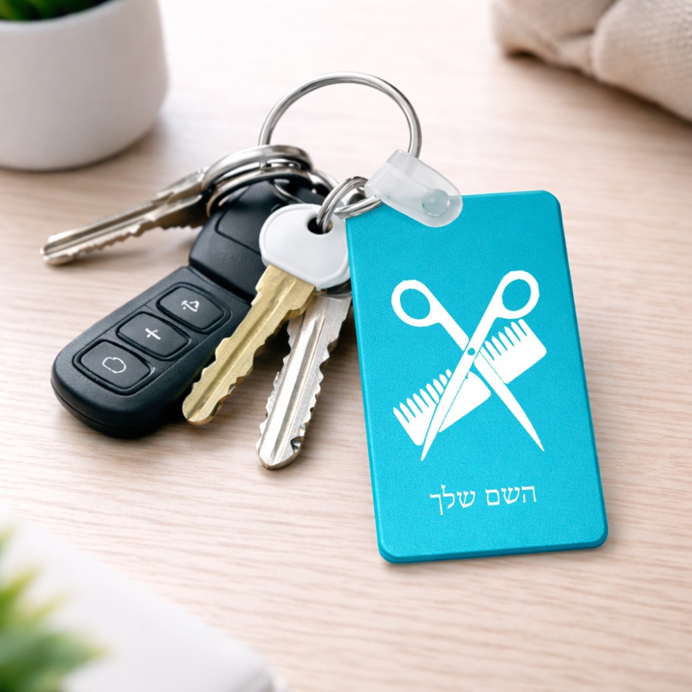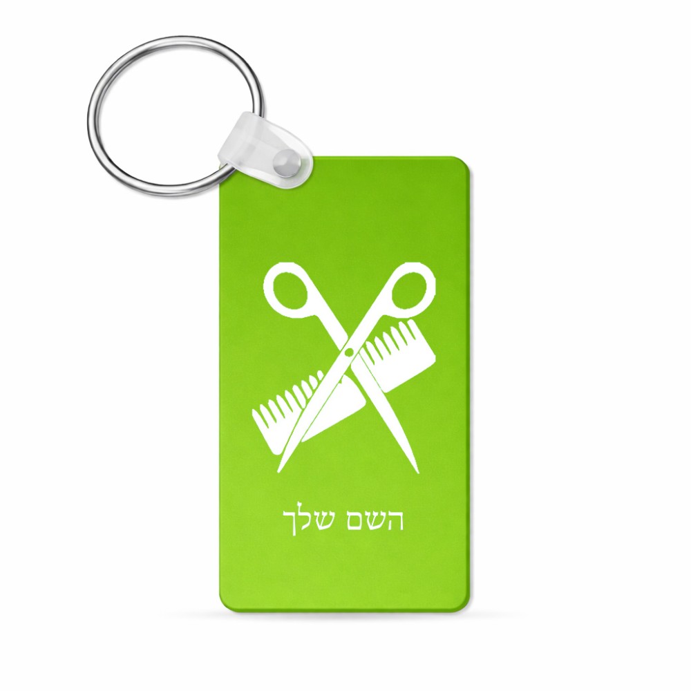 מחזיק מפתחות בצורת מלבן בעיצוב אישי עם השם שלך בעיצוב מעצב שיער גודל המחזיק 6 × 4 ס"מ. את השם המבוקש ניתן לציין בהזמנה, אם לא צויין אנחנו ניצור קשר לבירור.