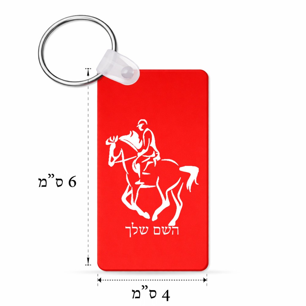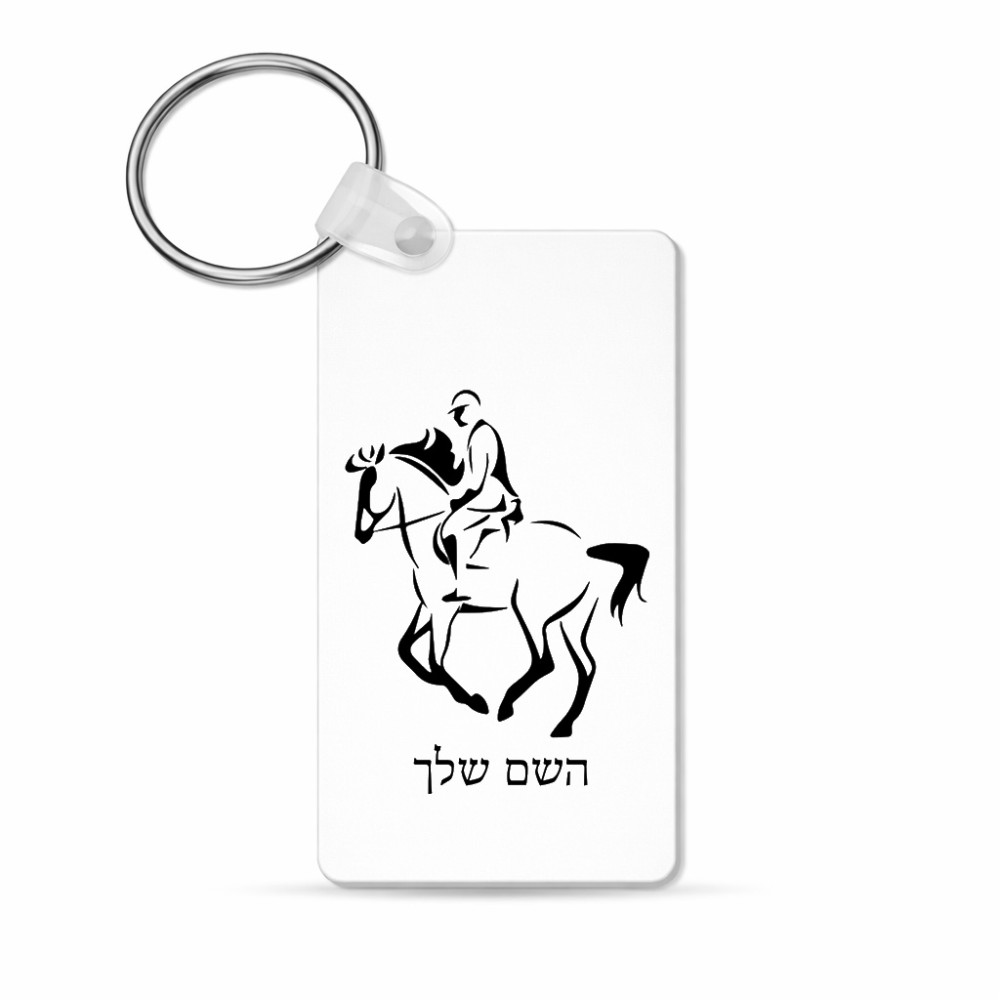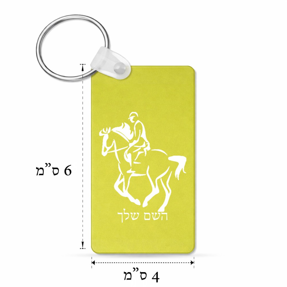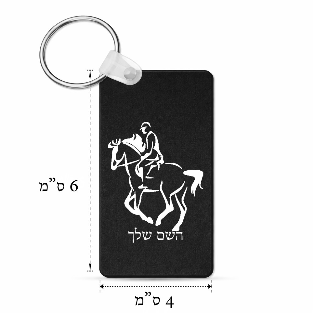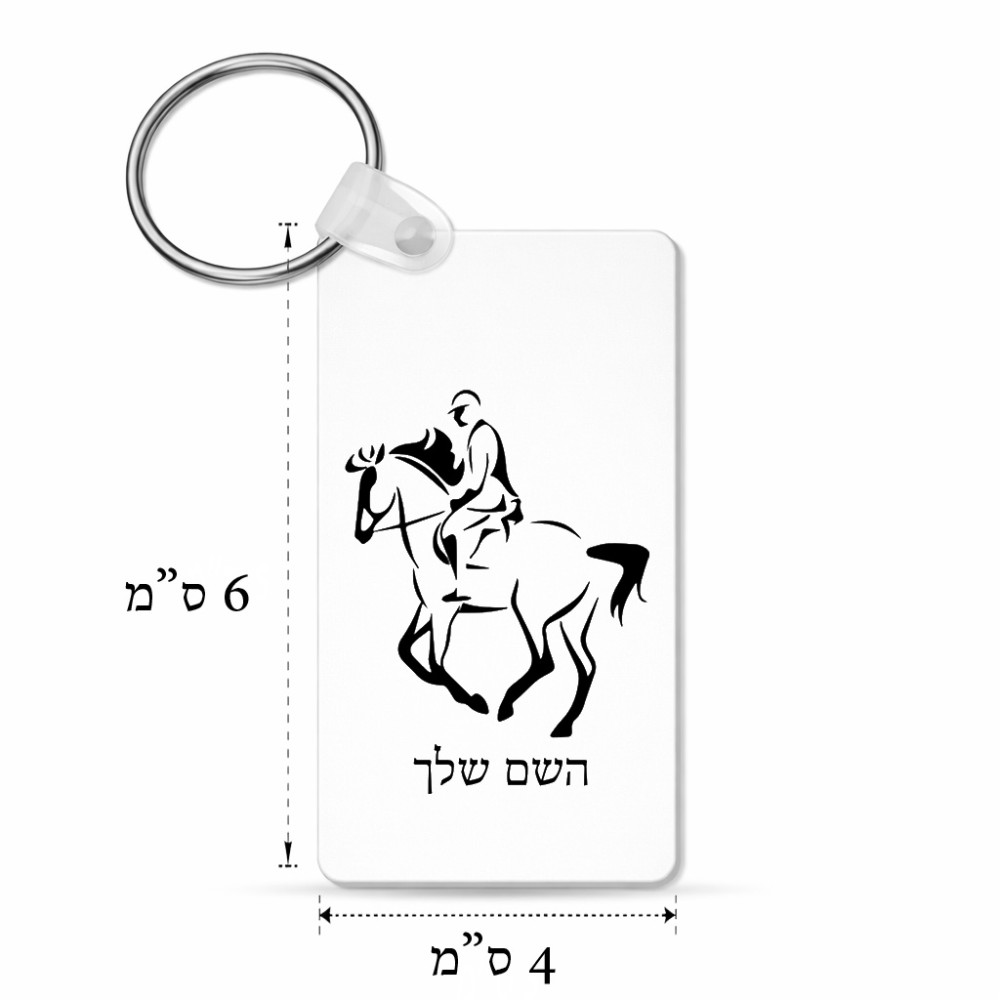 מחזיק מפתחות בצורת מלבן בעיצוב אישי עם השם שלך בעיצוב רוכב סוסים 2 גודל המחזיק 6 × 4 ס"מ. את השם המבוקש ניתן לציין בהזמנה, אם לא צויין אנחנו ניצור קשר לבירור.