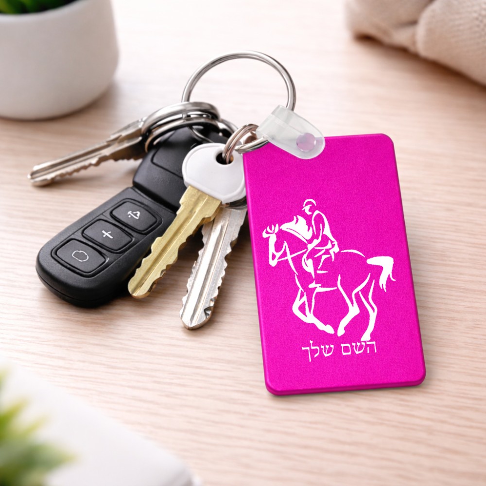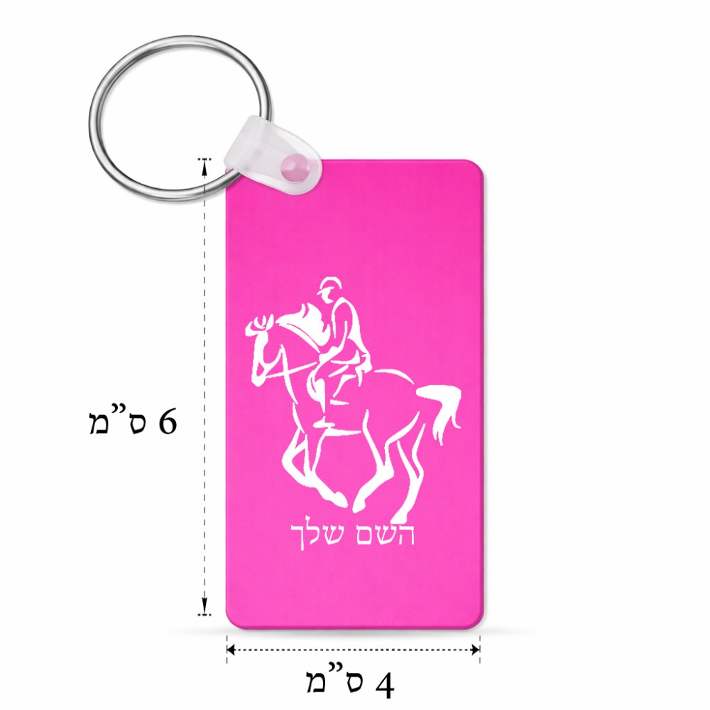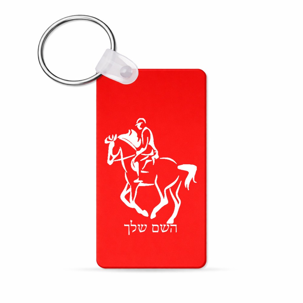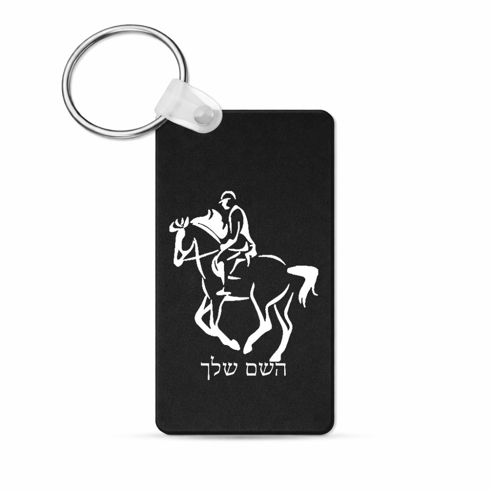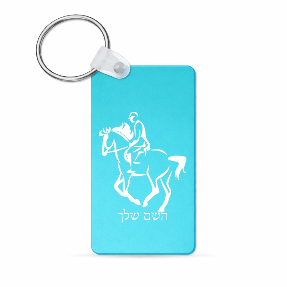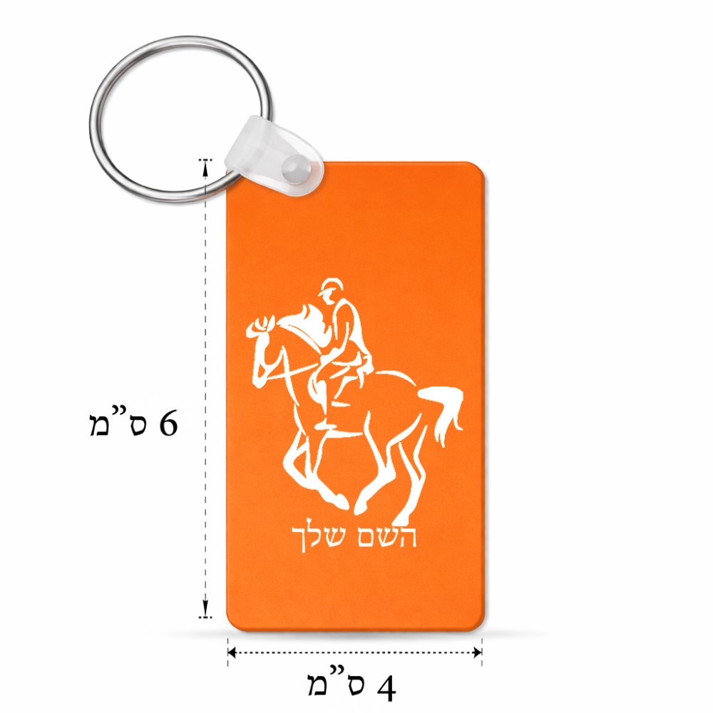 מחזיק מפתחות בצורת מלבן בעיצוב אישי עם השם שלך בעיצוב רוכב סוסים 2 גודל המחזיק 6 × 4 ס"מ. את השם המבוקש ניתן לציין בהזמנה, אם לא צויין אנחנו ניצור קשר לבירור.