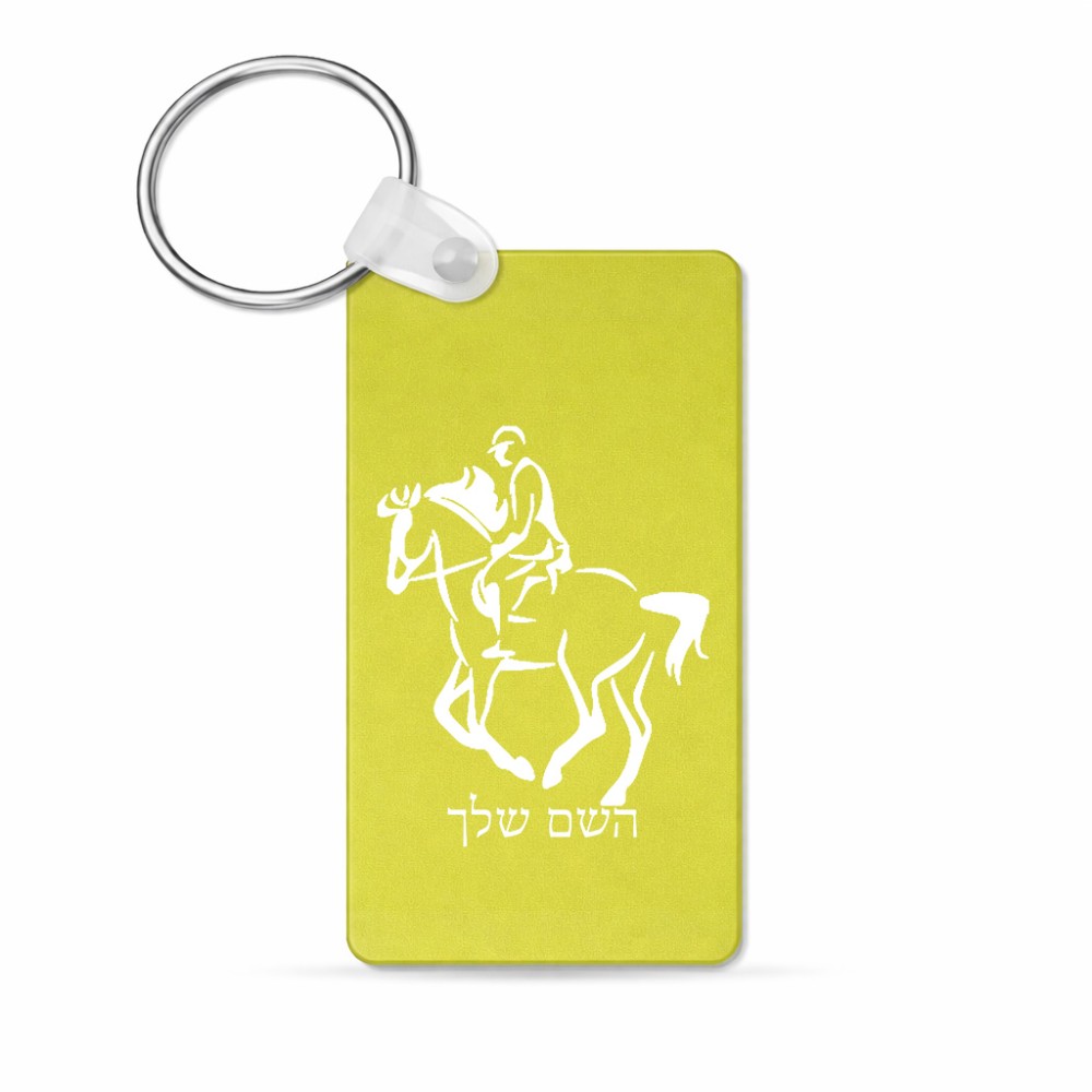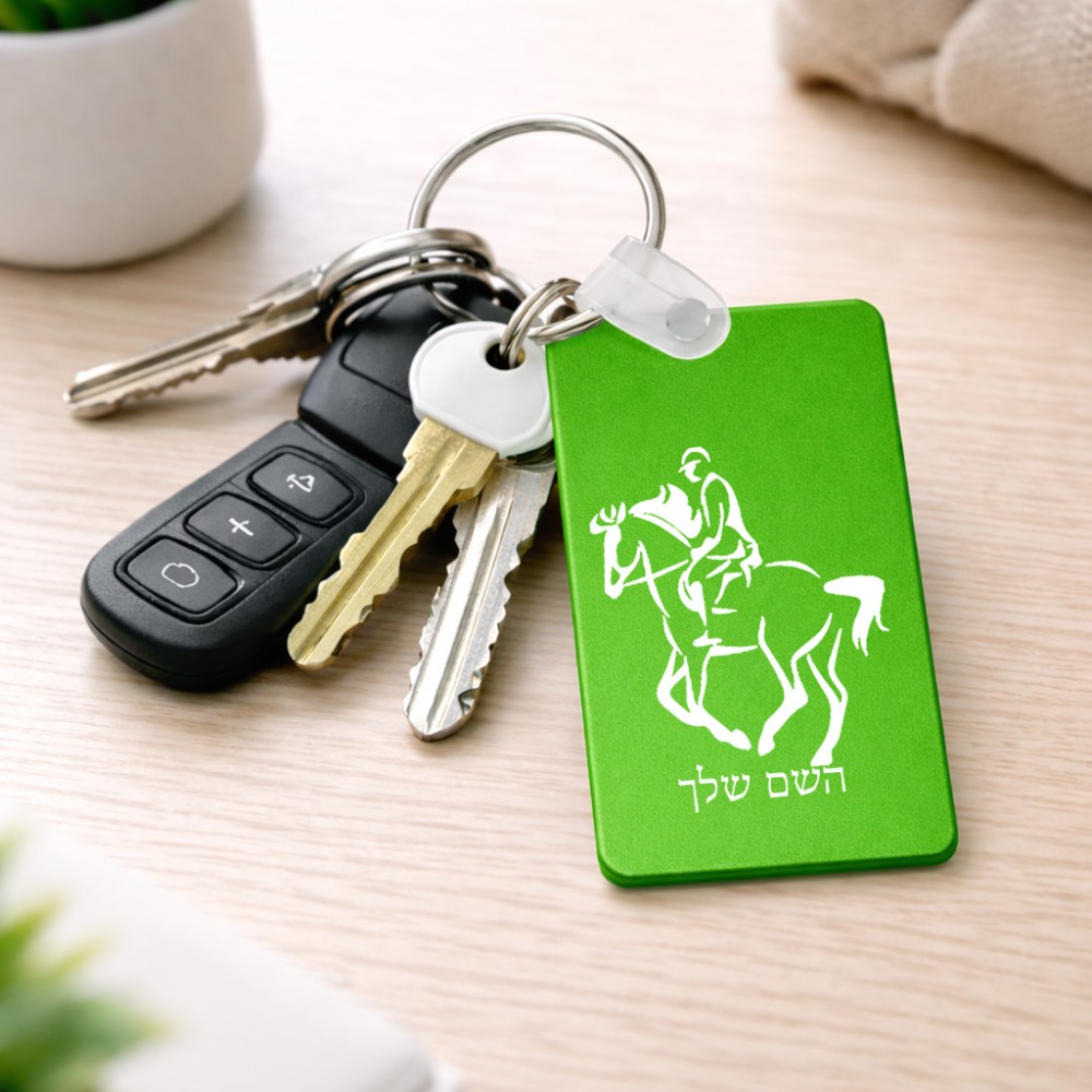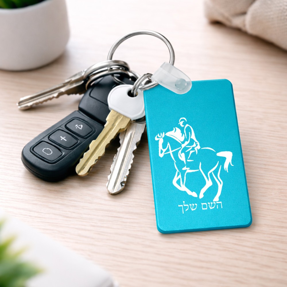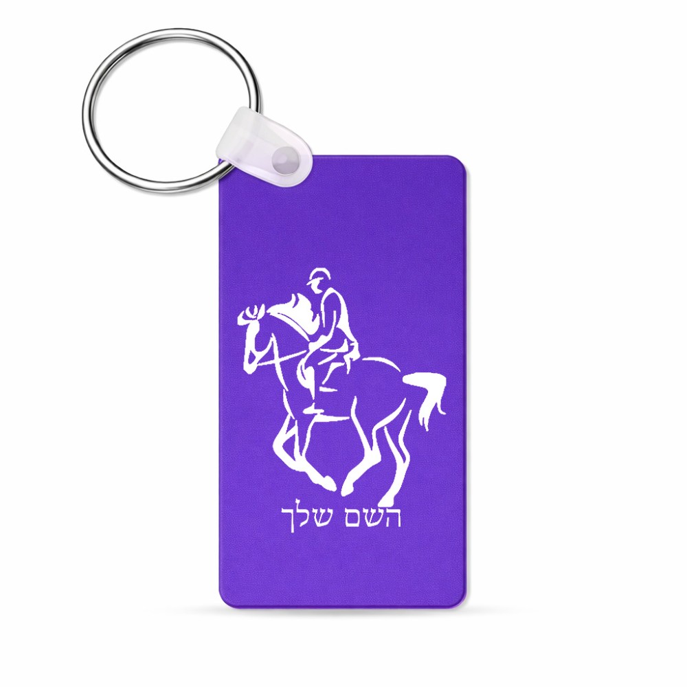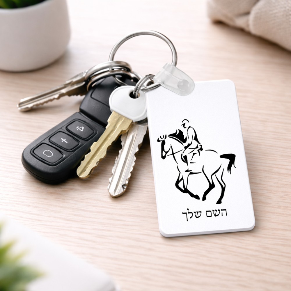 מחזיק מפתחות בצורת מלבן בעיצוב אישי עם השם שלך בעיצוב רוכב סוסים 2 גודל המחזיק 6 × 4 ס"מ. את השם המבוקש ניתן לציין בהזמנה, אם לא צויין אנחנו ניצור קשר לבירור.