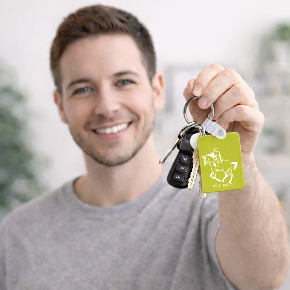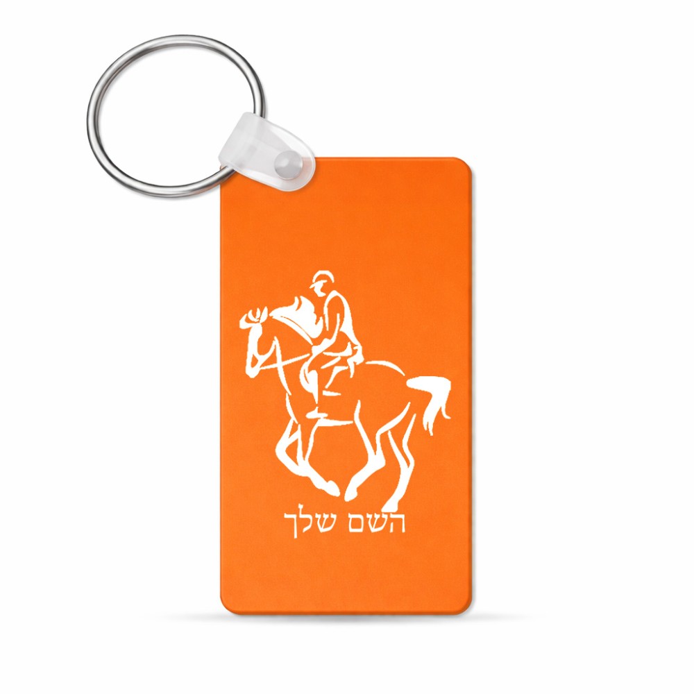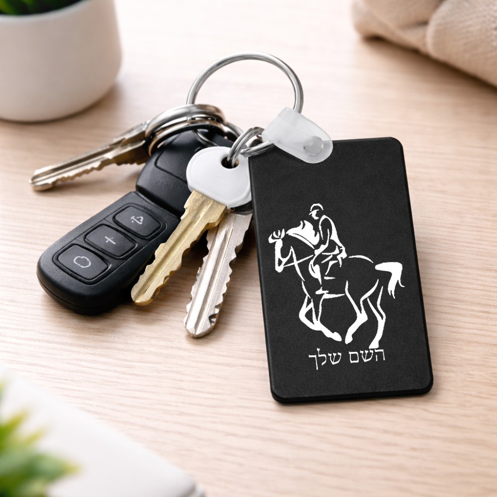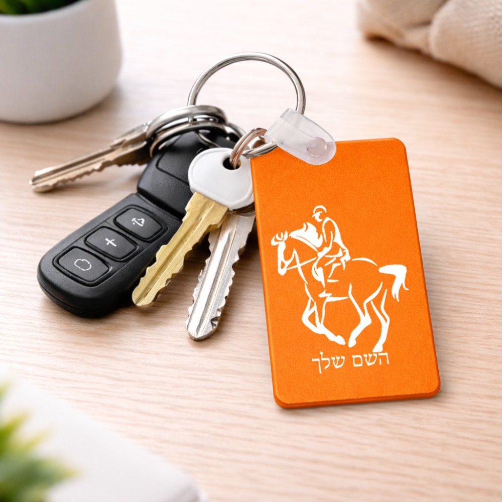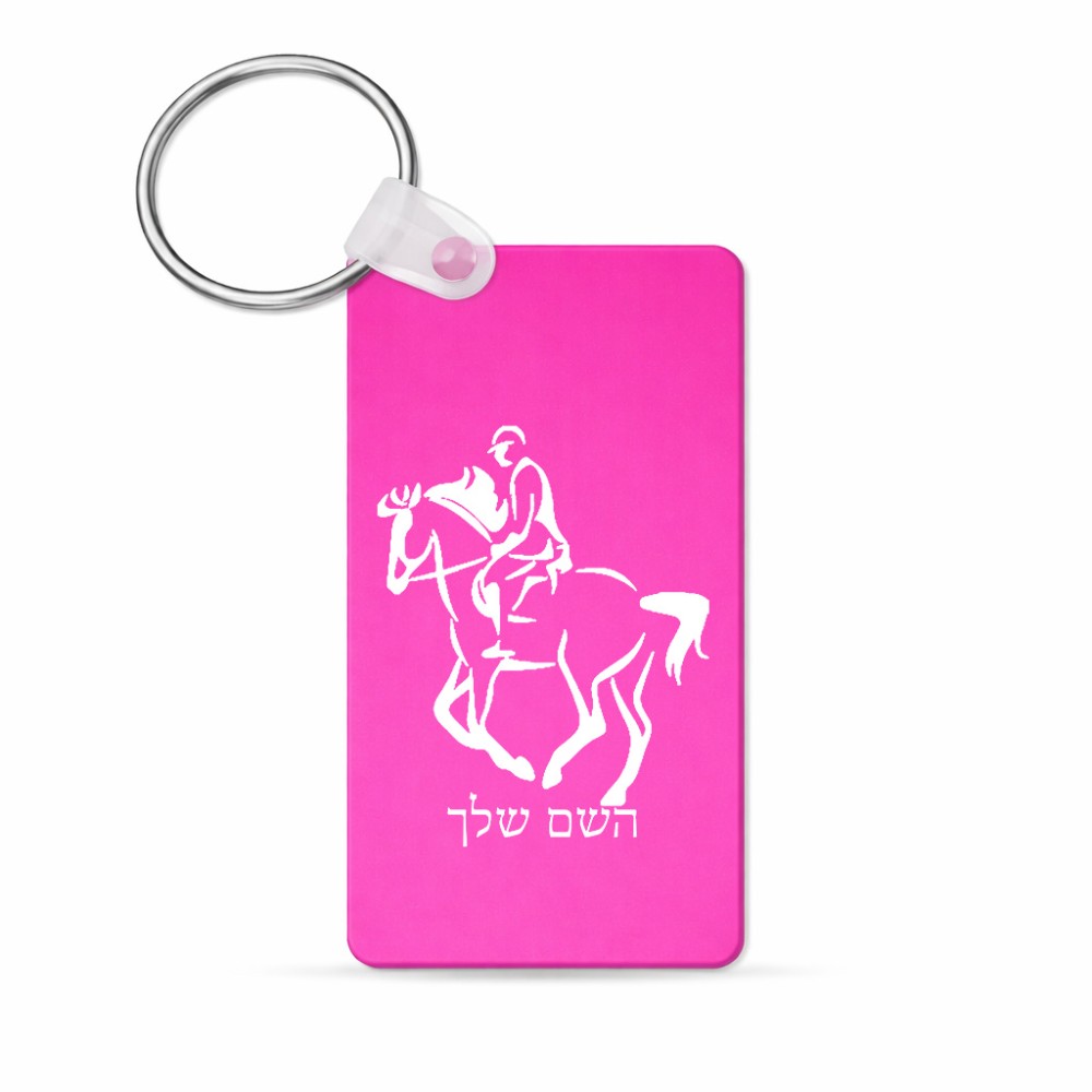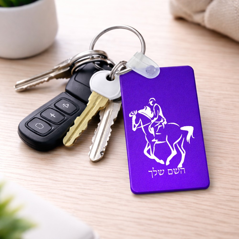 מחזיק מפתחות בצורת מלבן בעיצוב אישי עם השם שלך בעיצוב רוכב סוסים 2 גודל המחזיק 6 × 4 ס"מ. את השם המבוקש ניתן לציין בהזמנה, אם לא צויין אנחנו ניצור קשר לבירור.