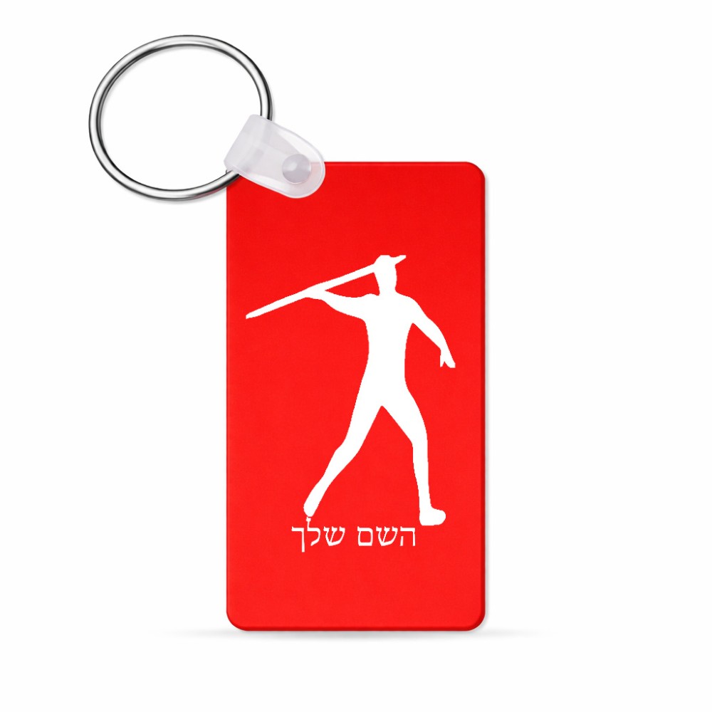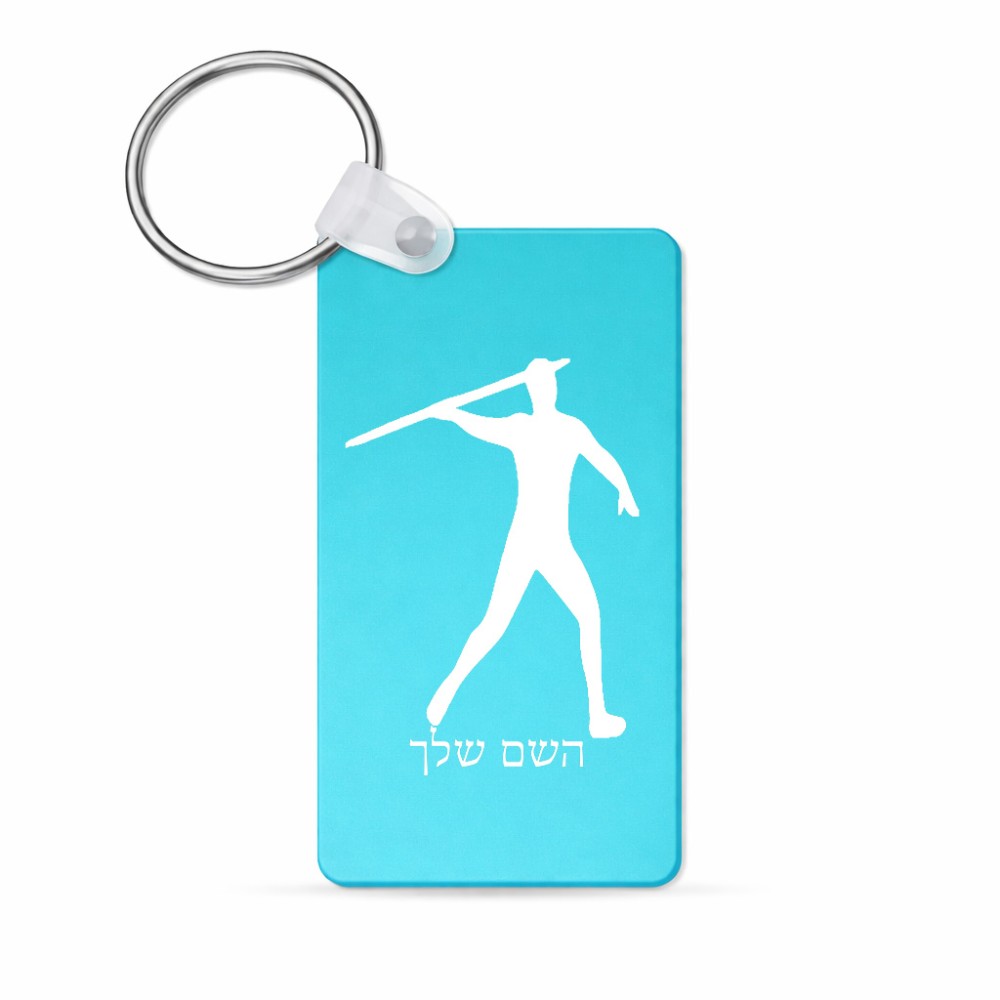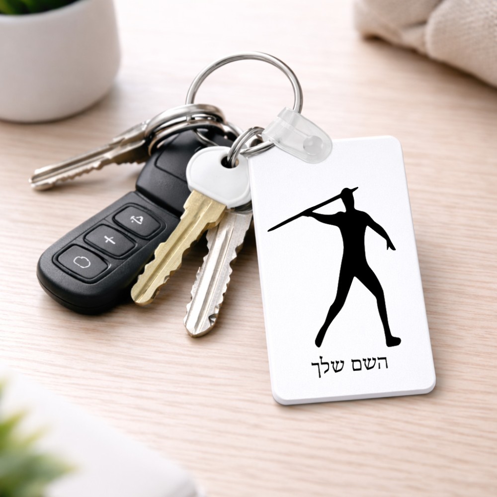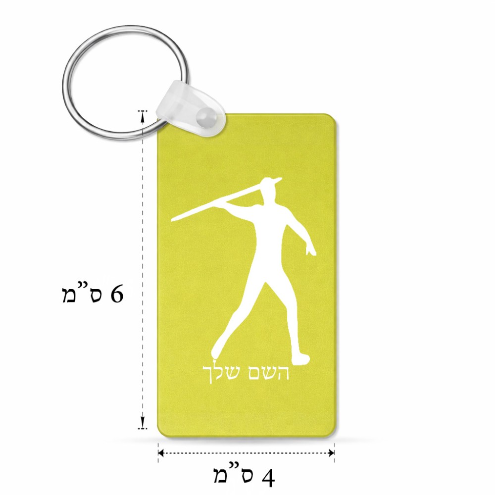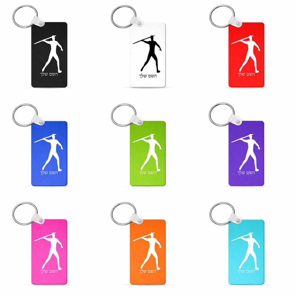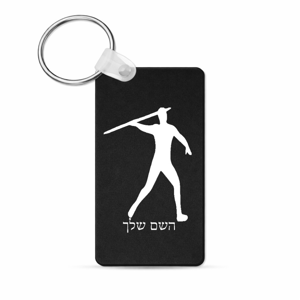 מחזיק מפתחות בצורת מלבן בעיצוב אישי עם השם שלך בעיצוב זורק כידון גודל המחזיק 6 × 4 ס"מ. את השם המבוקש ניתן לציין בהזמנה, אם לא צויין אנחנו ניצור קשר לבירור.