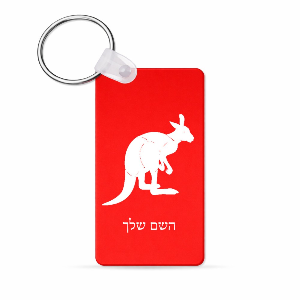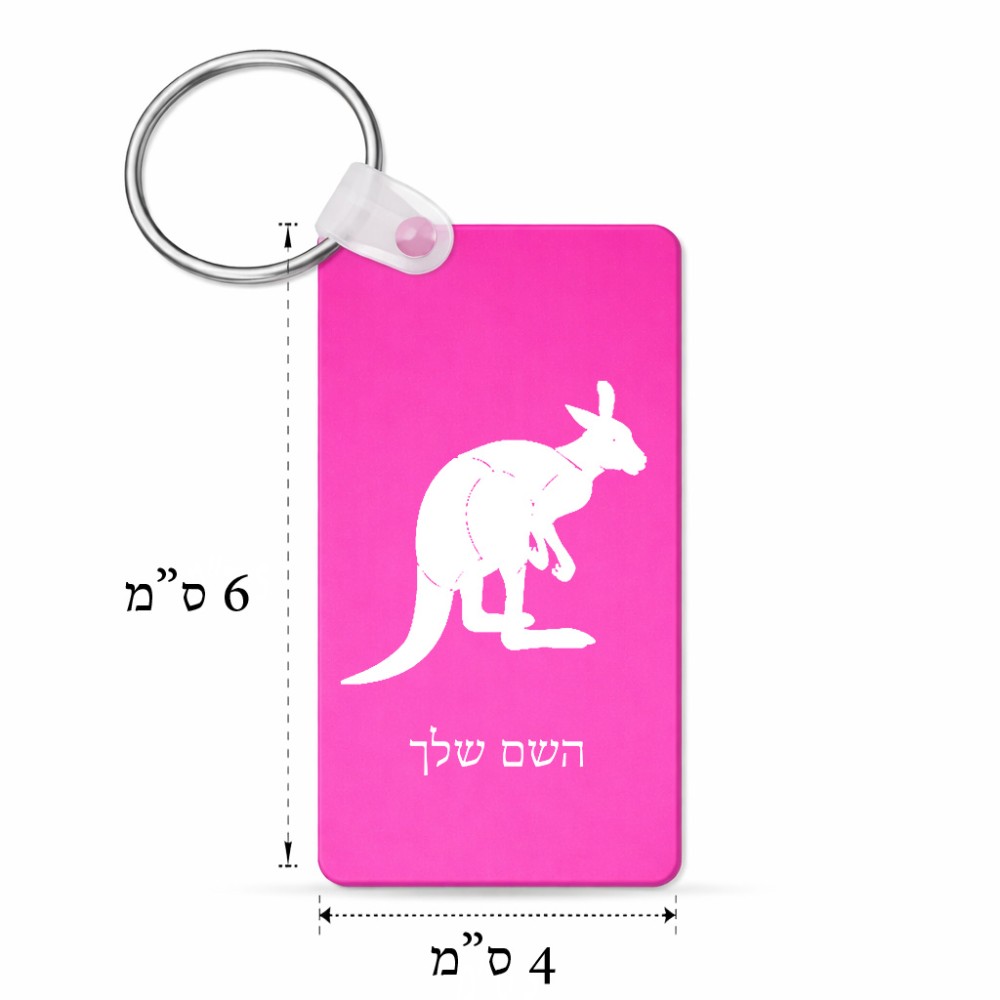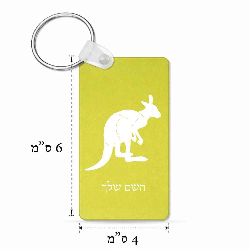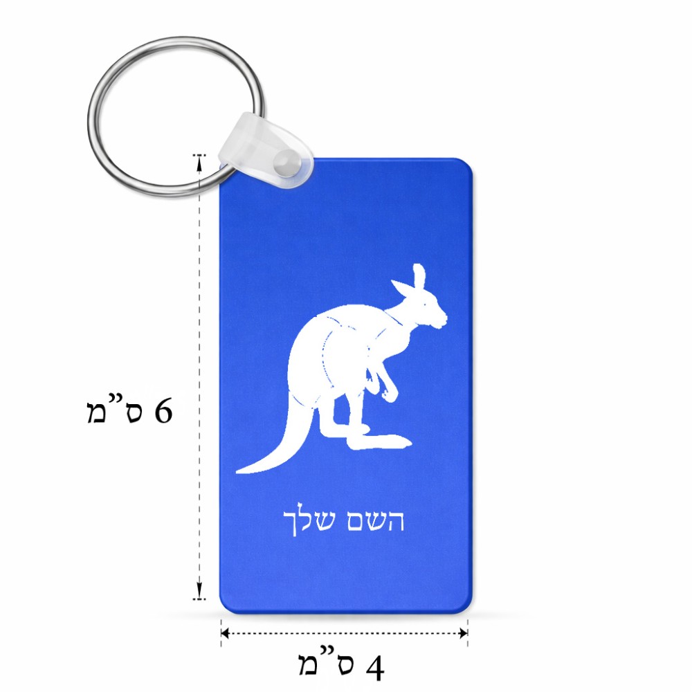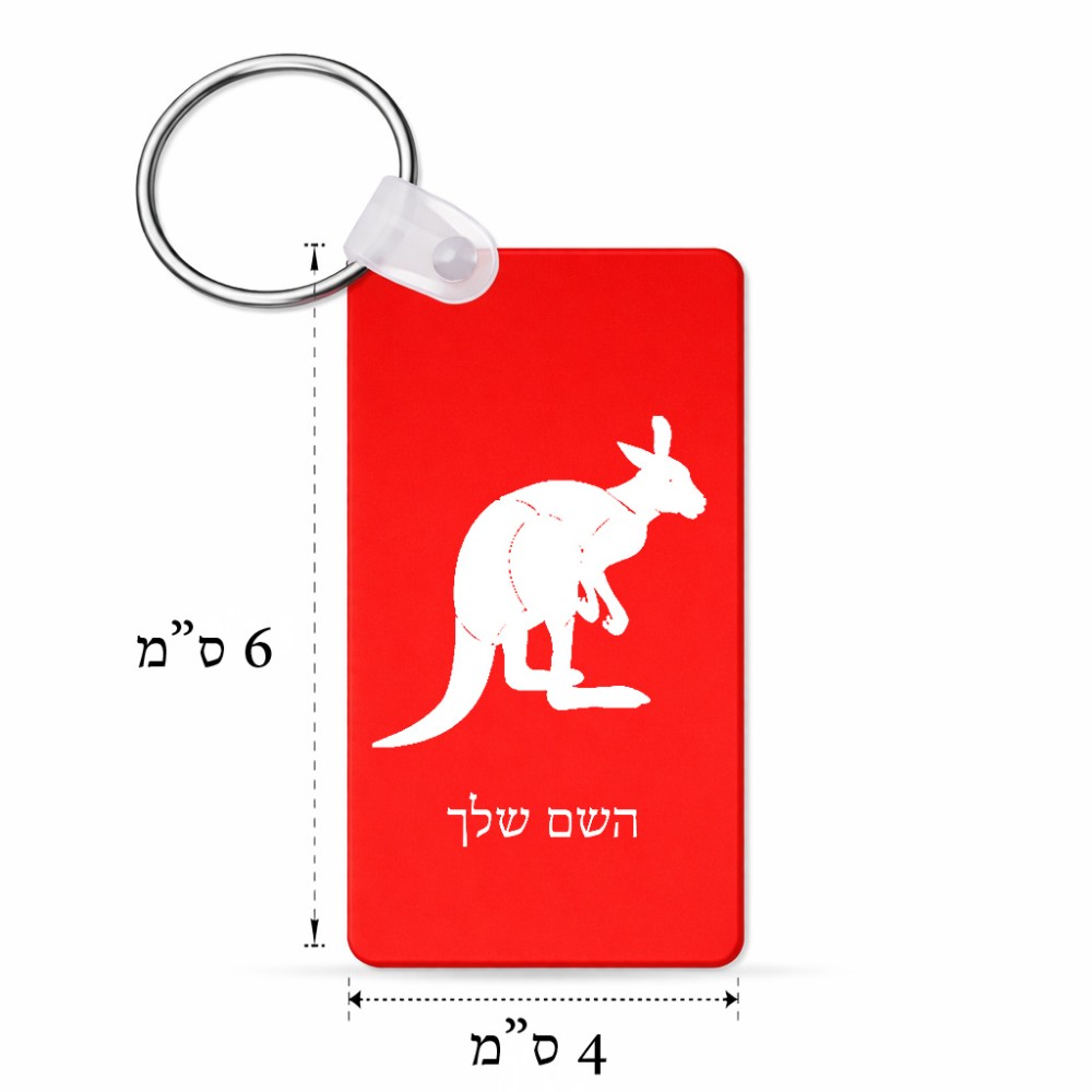 מחזיק מפתחות בצורת מלבן בעיצוב אישי עם השם שלך בעיצוב קנגורו גודל המחזיק 6 × 4 ס"מ. את השם המבוקש ניתן לציין בהזמנה, אם לא צויין אנחנו ניצור קשר לבירור.