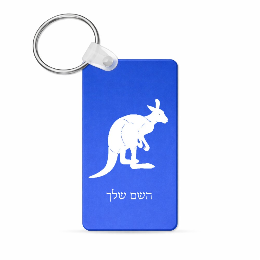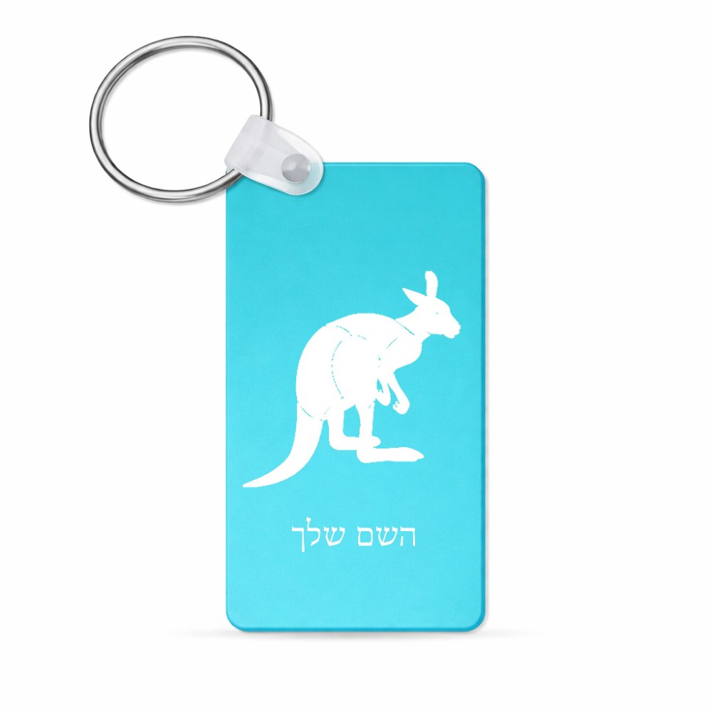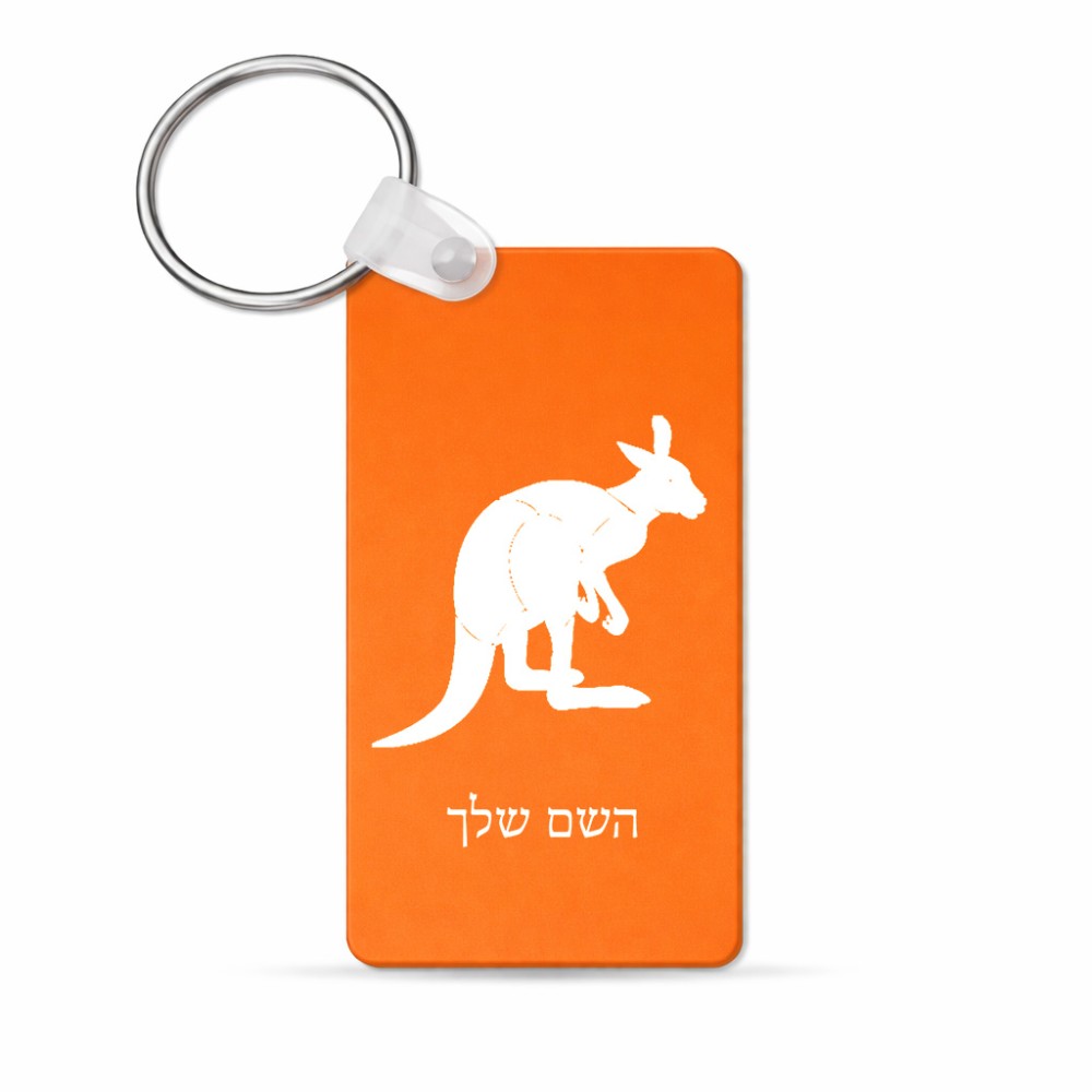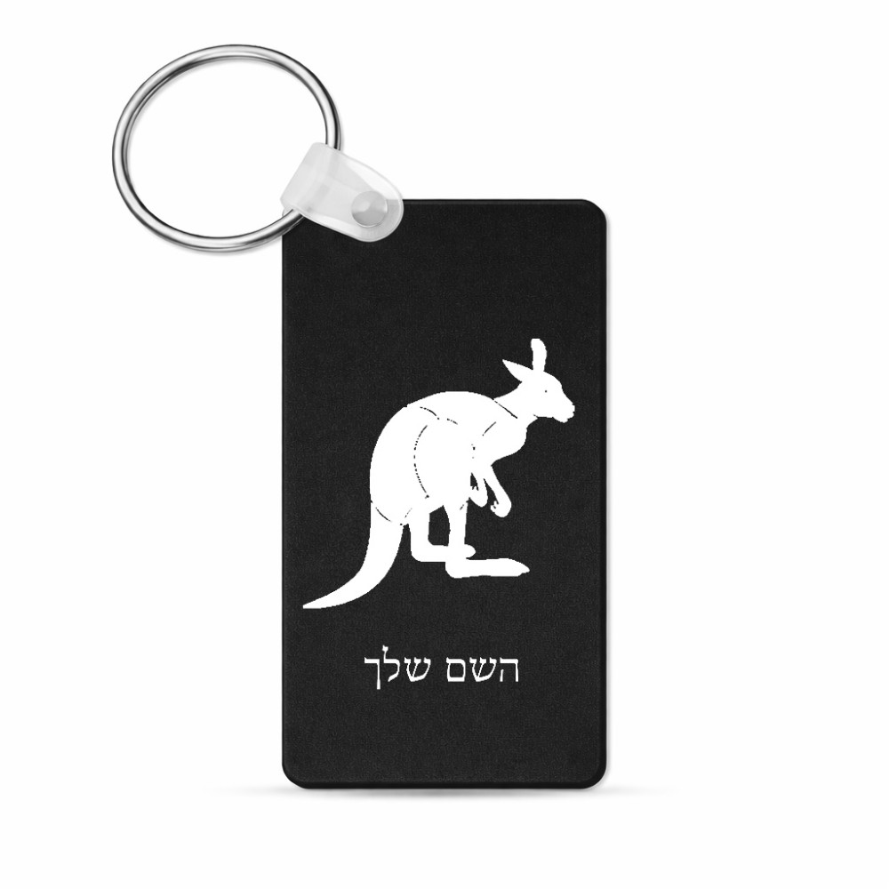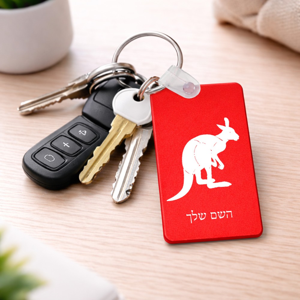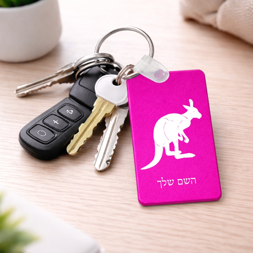 מחזיק מפתחות בצורת מלבן בעיצוב אישי עם השם שלך בעיצוב קנגורו גודל המחזיק 6 × 4 ס"מ. את השם המבוקש ניתן לציין בהזמנה, אם לא צויין אנחנו ניצור קשר לבירור.