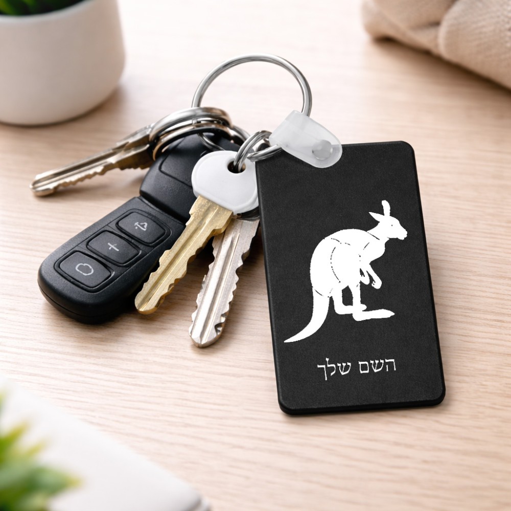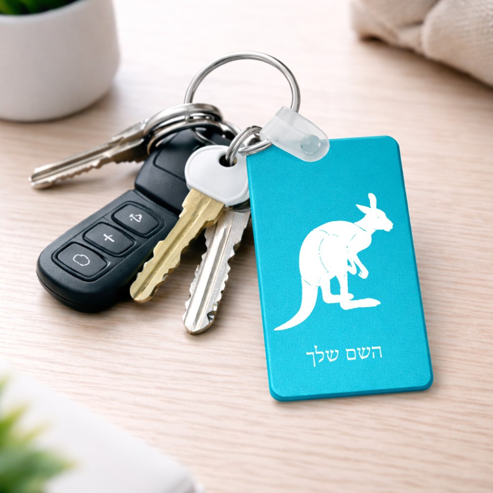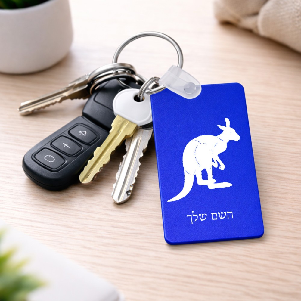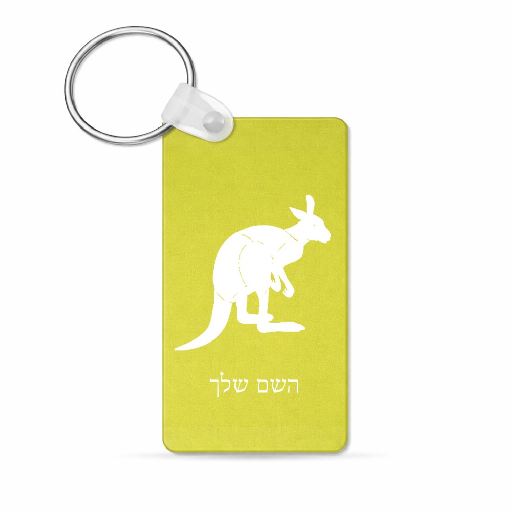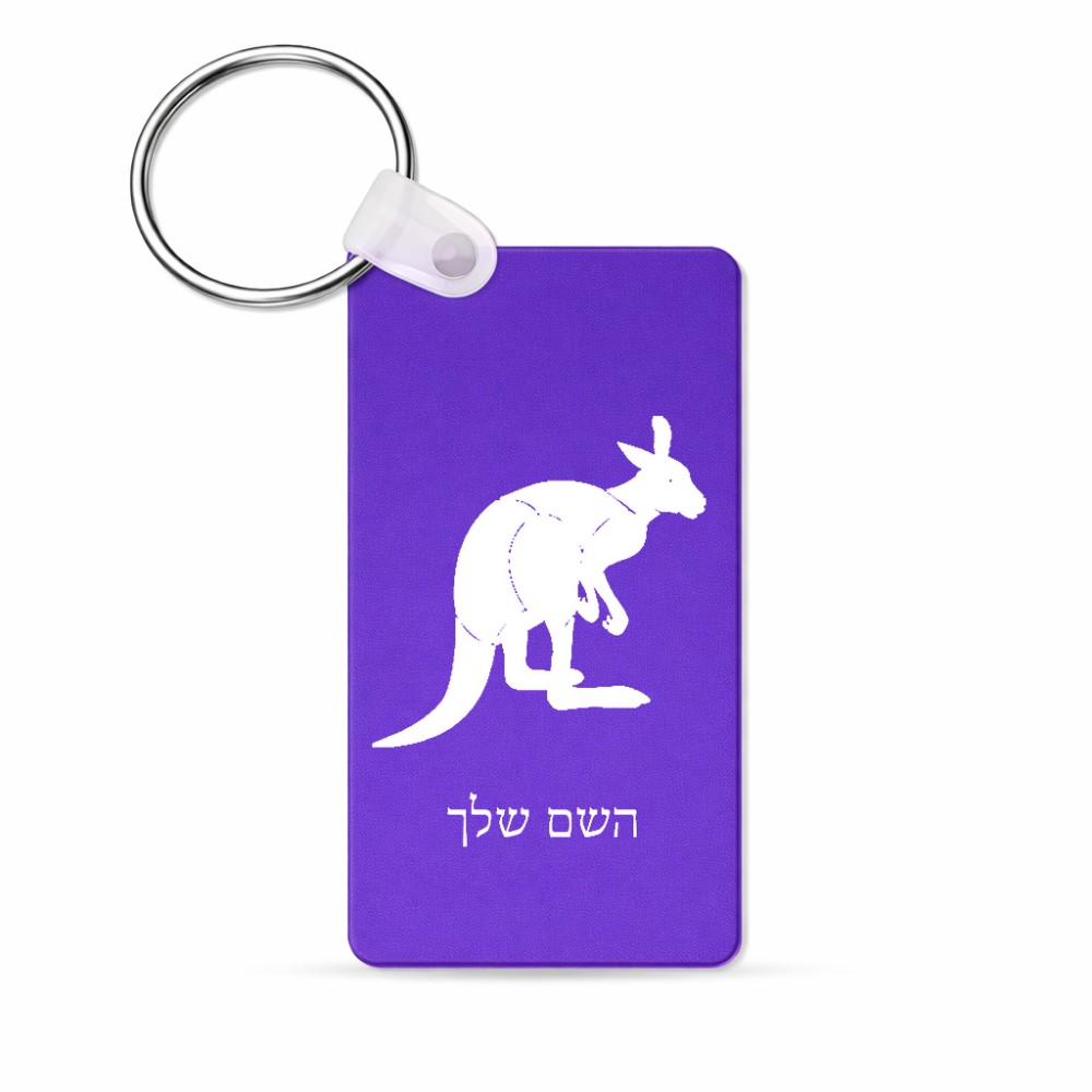 מחזיק מפתחות בצורת מלבן בעיצוב אישי עם השם שלך בעיצוב קנגורו גודל המחזיק 6 × 4 ס"מ. את השם המבוקש ניתן לציין בהזמנה, אם לא צויין אנחנו ניצור קשר לבירור.