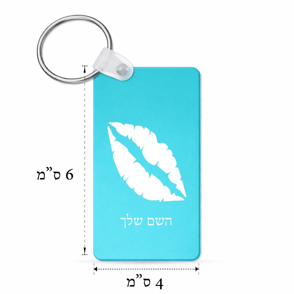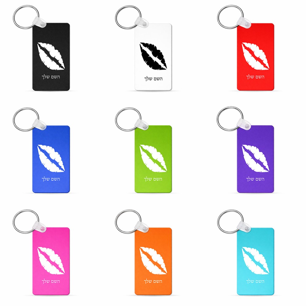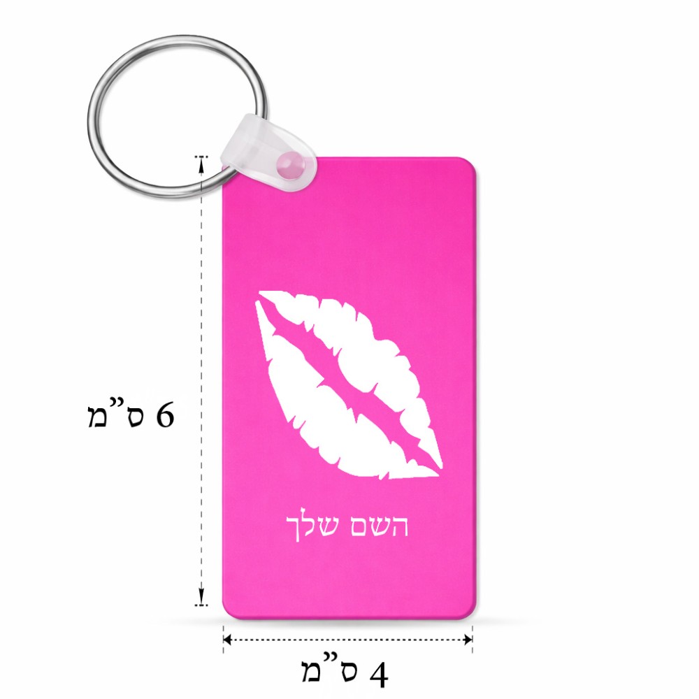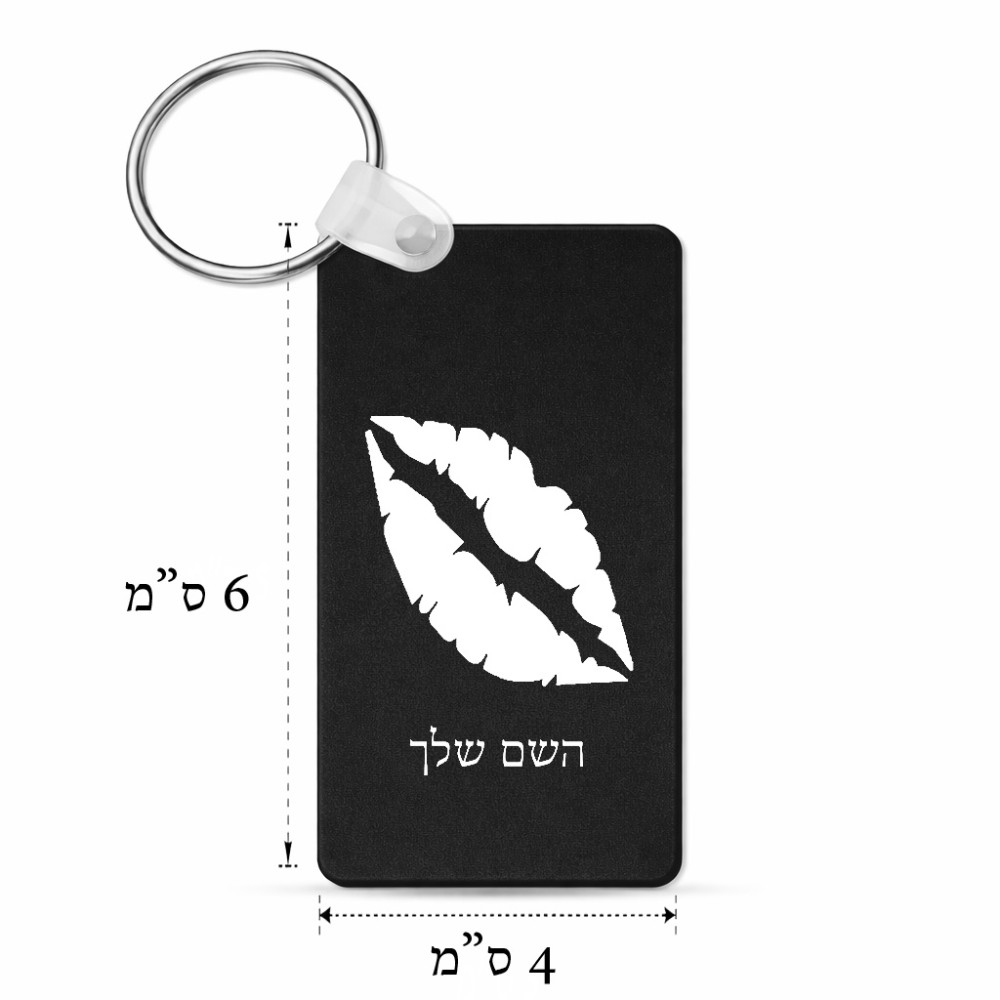 מחזיק מפתחות בצורת מלבן בעיצוב אישי עם השם שלך בעיצוב שפתיים - נשיקה גודל המחזיק 6 × 4 ס"מ. את השם המבוקש ניתן לציין בהזמנה, אם לא צויין אנחנו ניצור קשר לבירור.