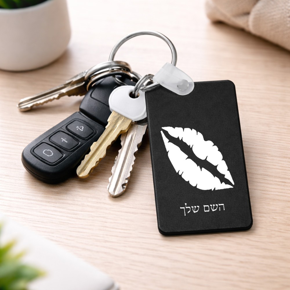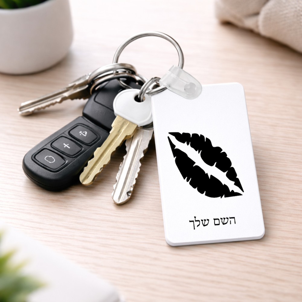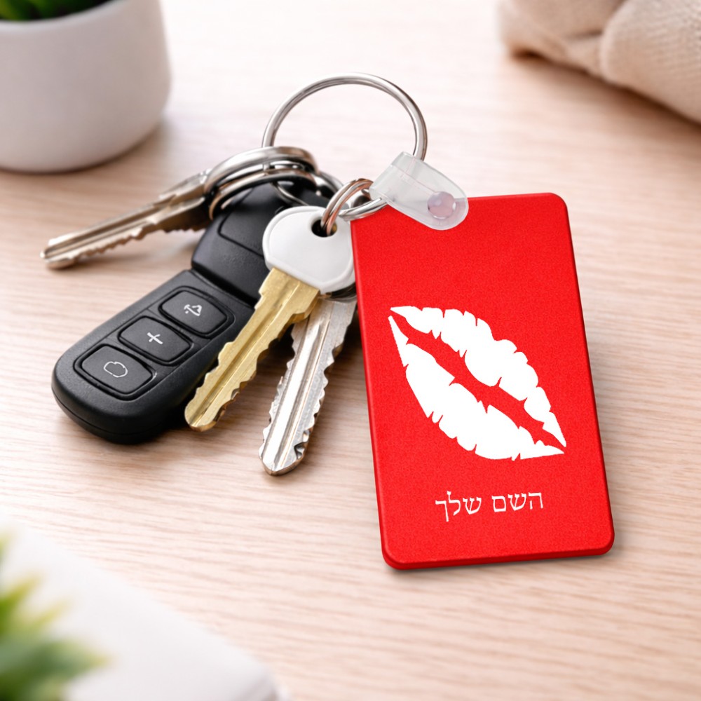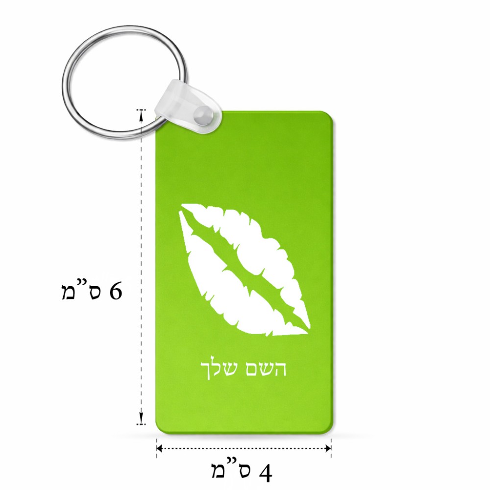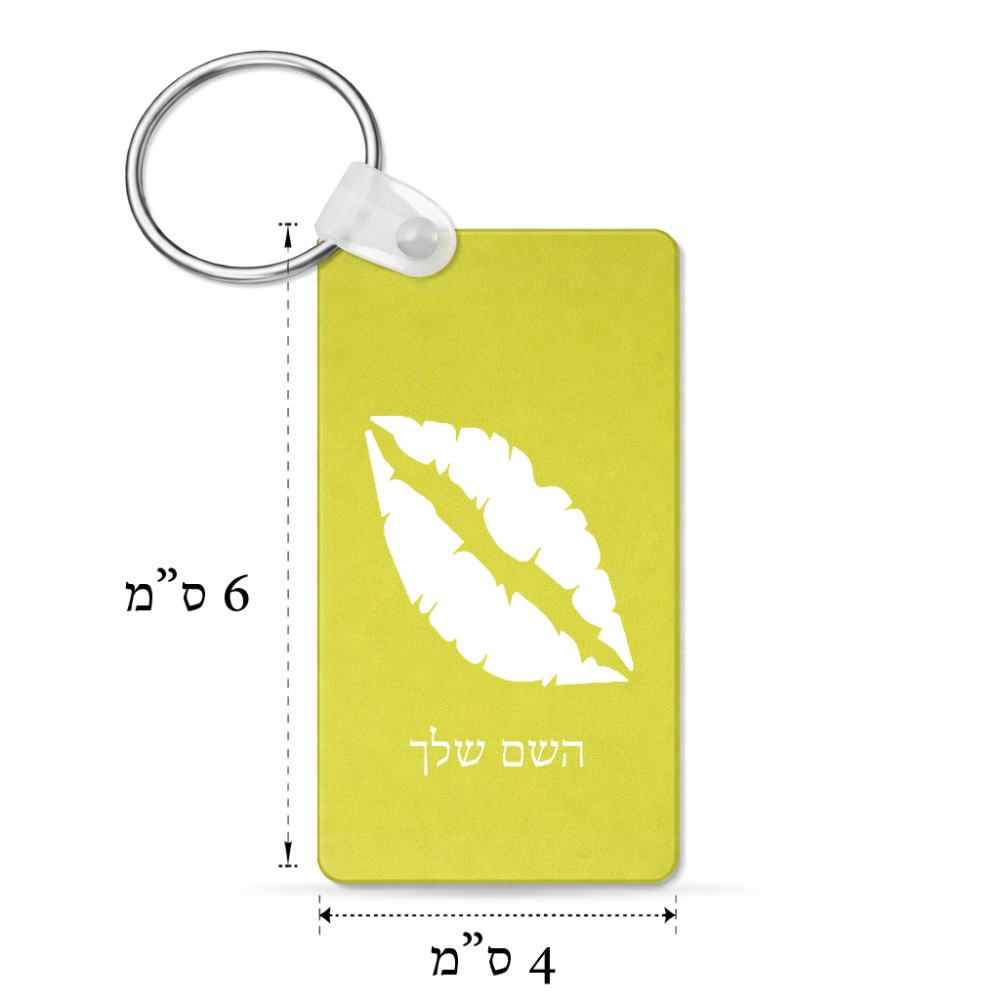 מחזיק מפתחות בצורת מלבן בעיצוב אישי עם השם שלך בעיצוב שפתיים - נשיקה גודל המחזיק 6 × 4 ס"מ. את השם המבוקש ניתן לציין בהזמנה, אם לא צויין אנחנו ניצור קשר לבירור.
