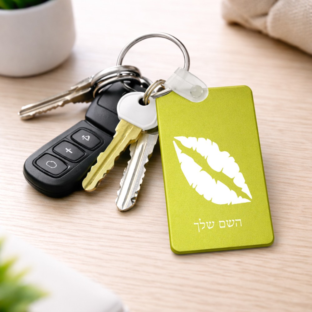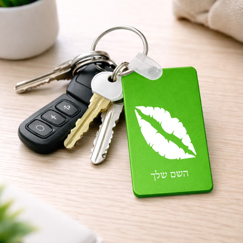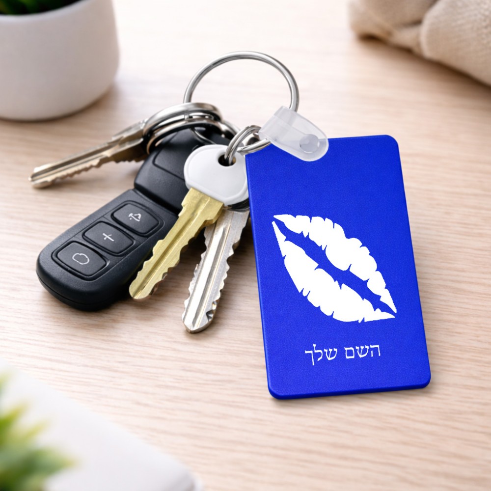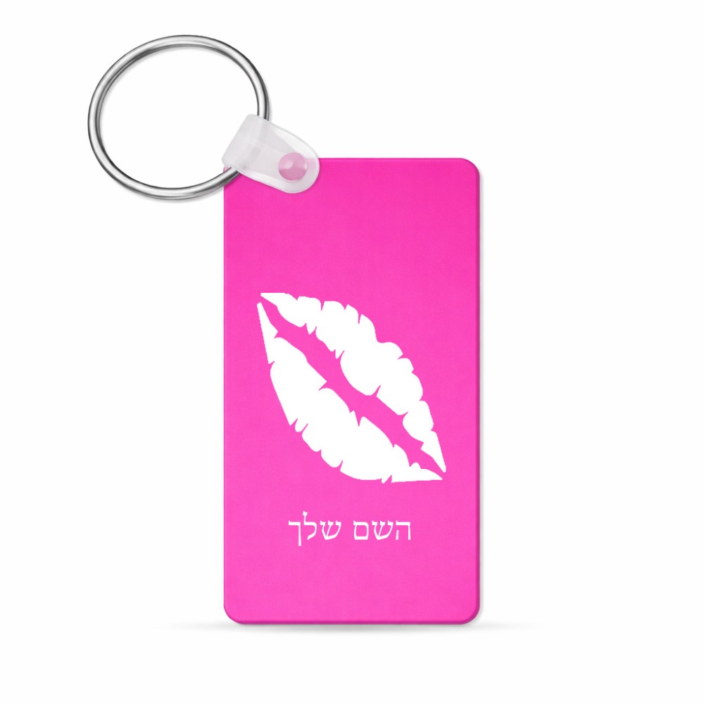 מחזיק מפתחות בצורת מלבן בעיצוב אישי עם השם שלך בעיצוב שפתיים - נשיקה גודל המחזיק 6 × 4 ס"מ. את השם המבוקש ניתן לציין בהזמנה, אם לא צויין אנחנו ניצור קשר לבירור.