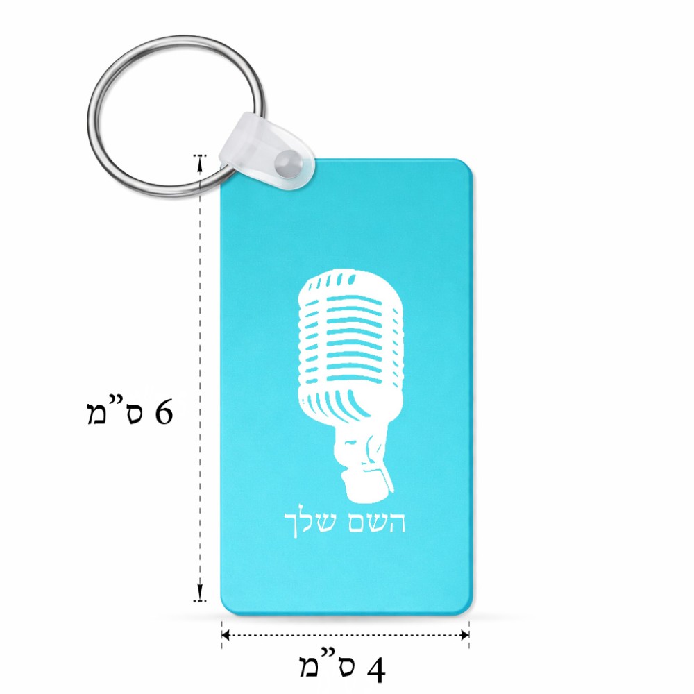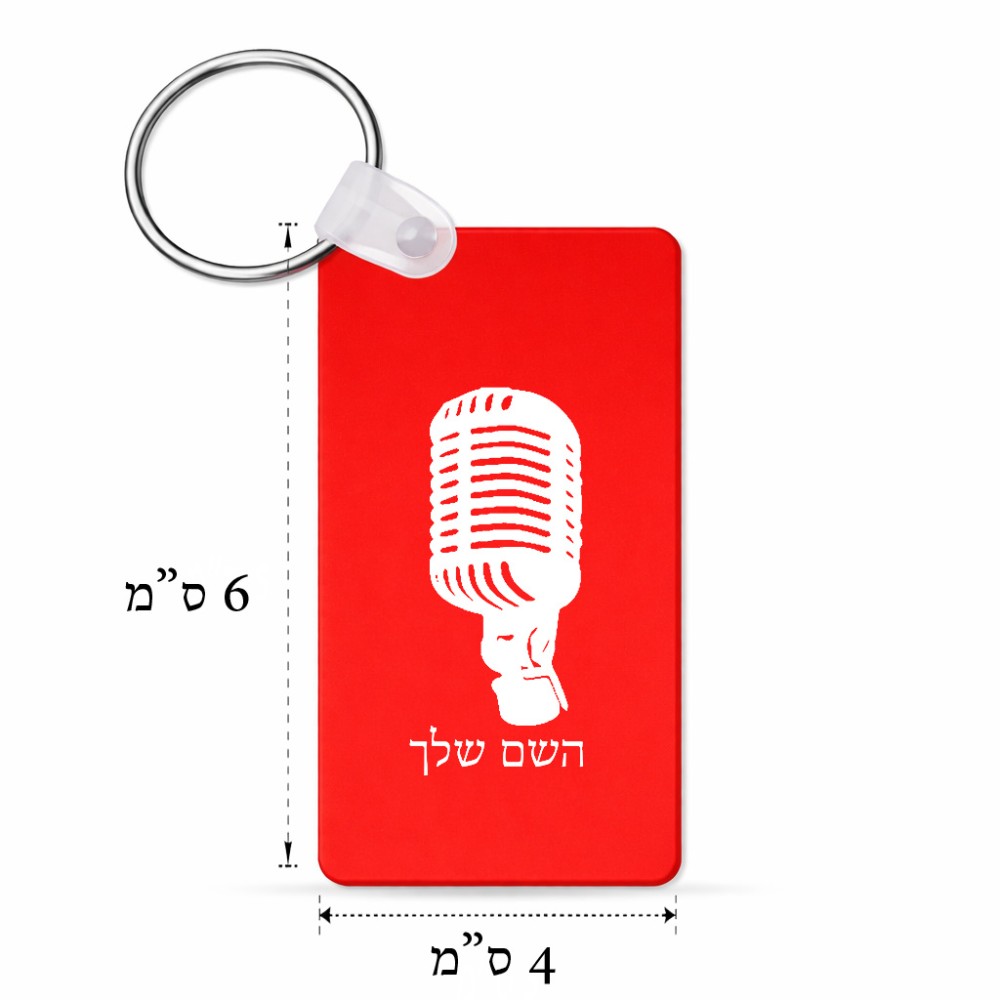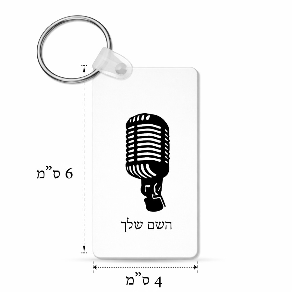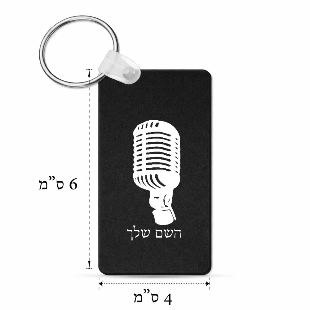 מחזיק מפתחות בצורת מלבן בעיצוב אישי עם השם שלך בעיצוב מיקרופון גודל המחזיק 6 × 4 ס"מ. את השם המבוקש ניתן לציין בהזמנה, אם לא צויין אנחנו ניצור קשר לבירור.