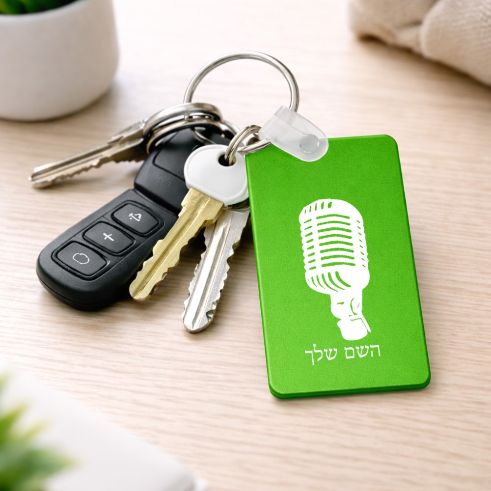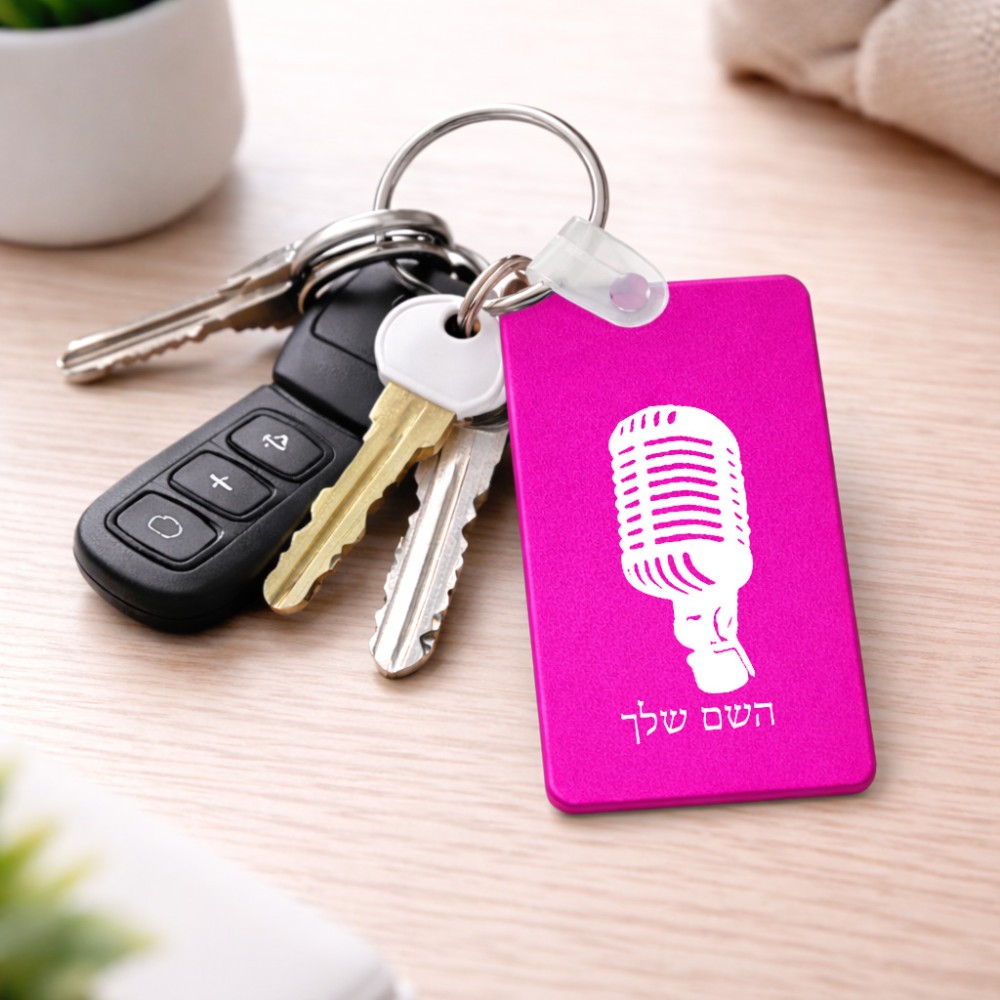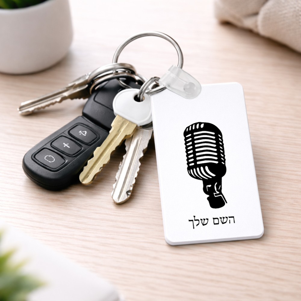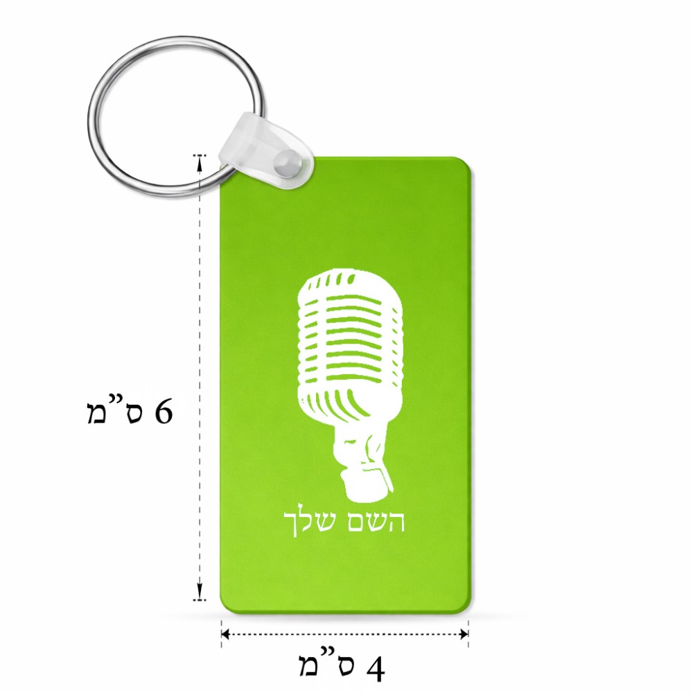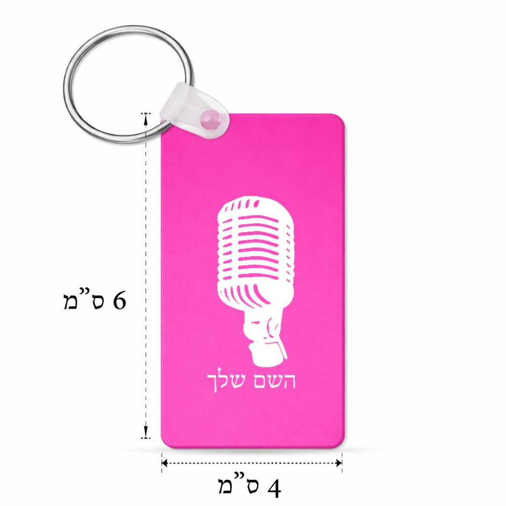 מחזיק מפתחות בצורת מלבן בעיצוב אישי עם השם שלך בעיצוב מיקרופון גודל המחזיק 6 × 4 ס"מ. את השם המבוקש ניתן לציין בהזמנה, אם לא צויין אנחנו ניצור קשר לבירור.