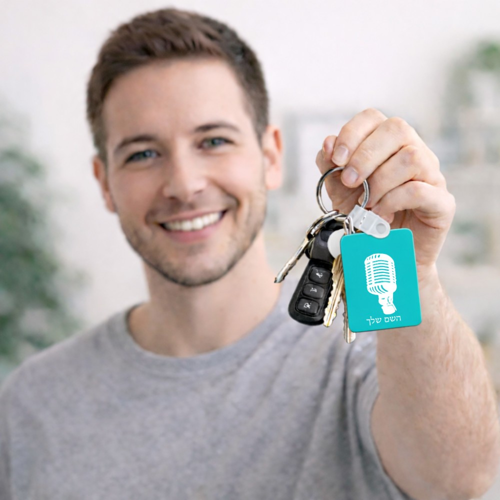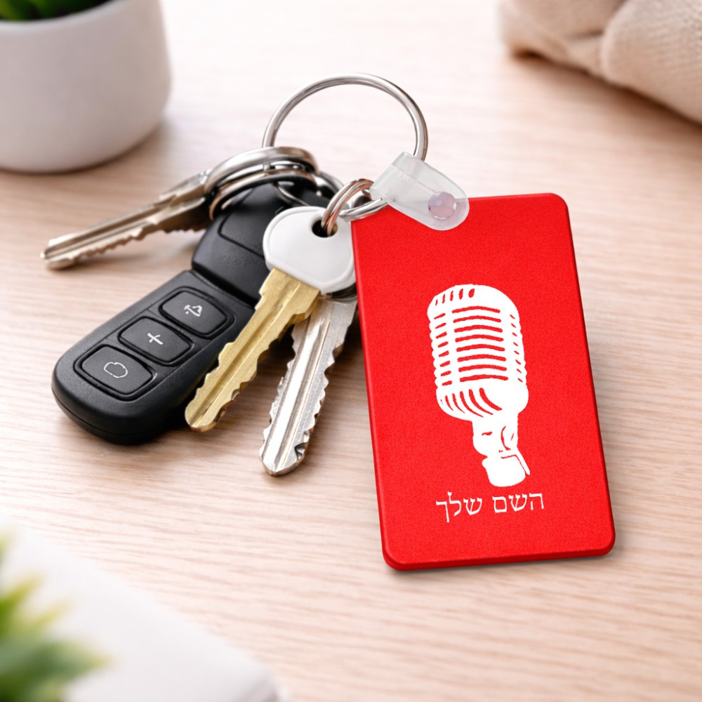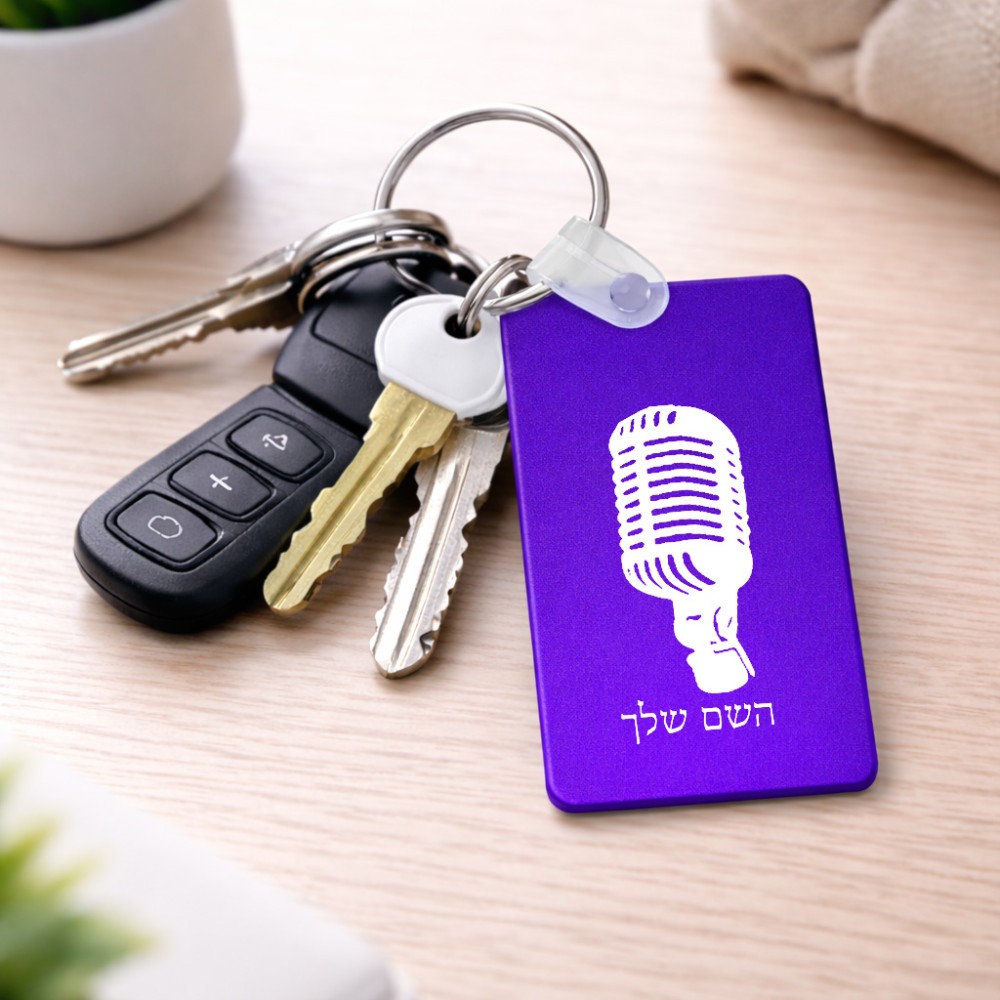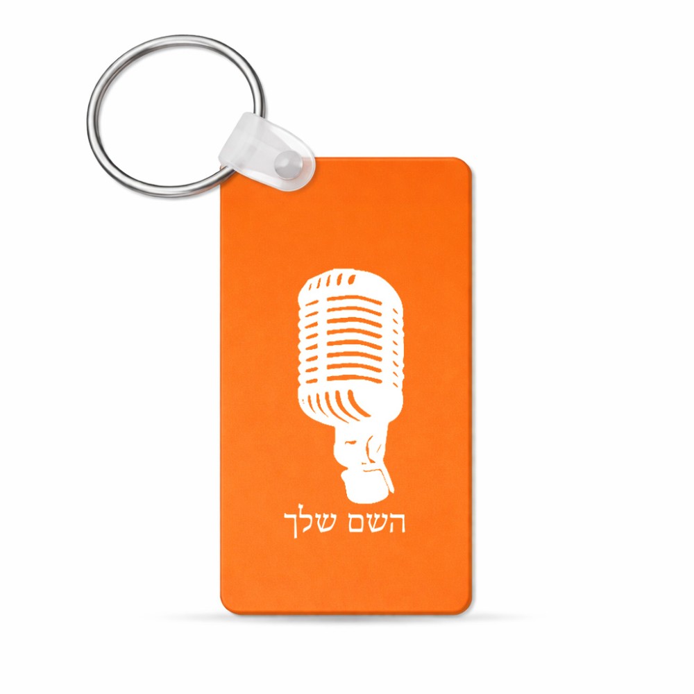 מחזיק מפתחות בצורת מלבן בעיצוב אישי עם השם שלך בעיצוב מיקרופון גודל המחזיק 6 × 4 ס"מ. את השם המבוקש ניתן לציין בהזמנה, אם לא צויין אנחנו ניצור קשר לבירור.