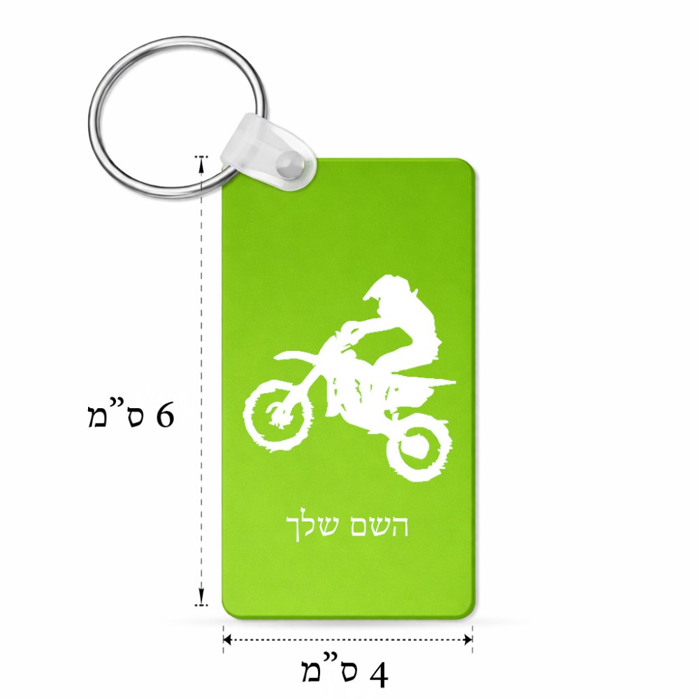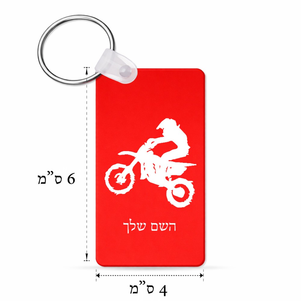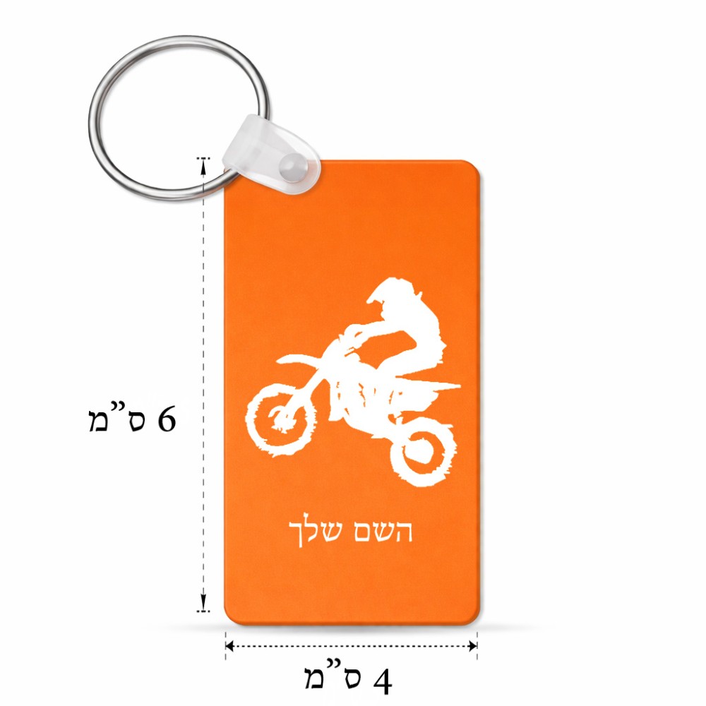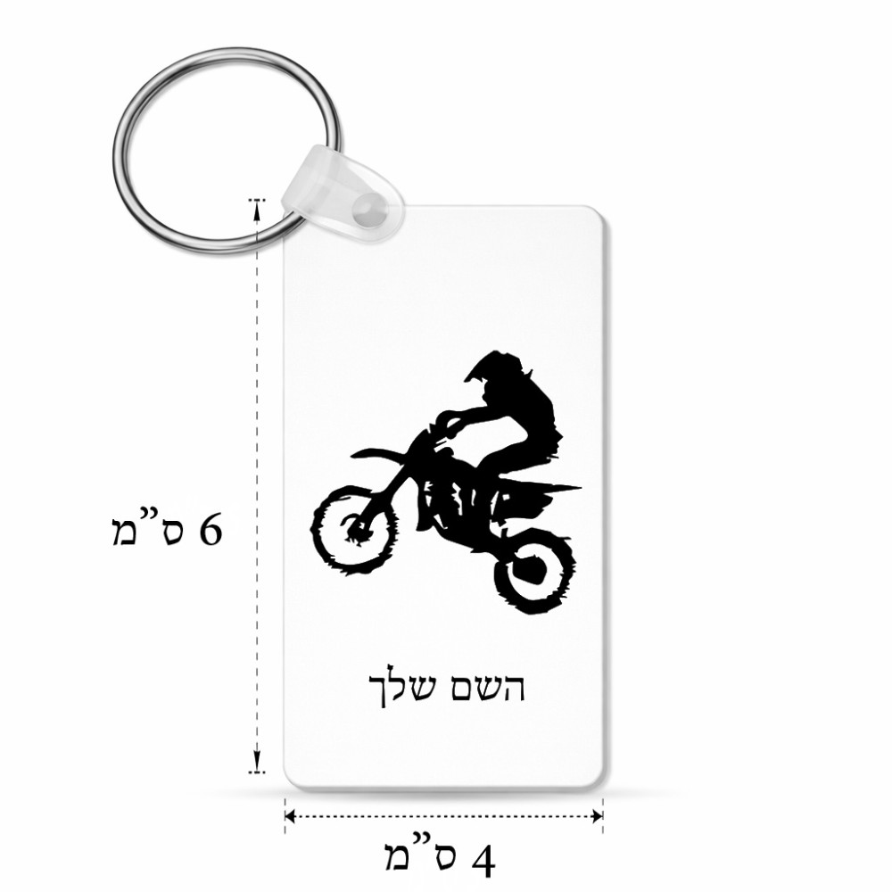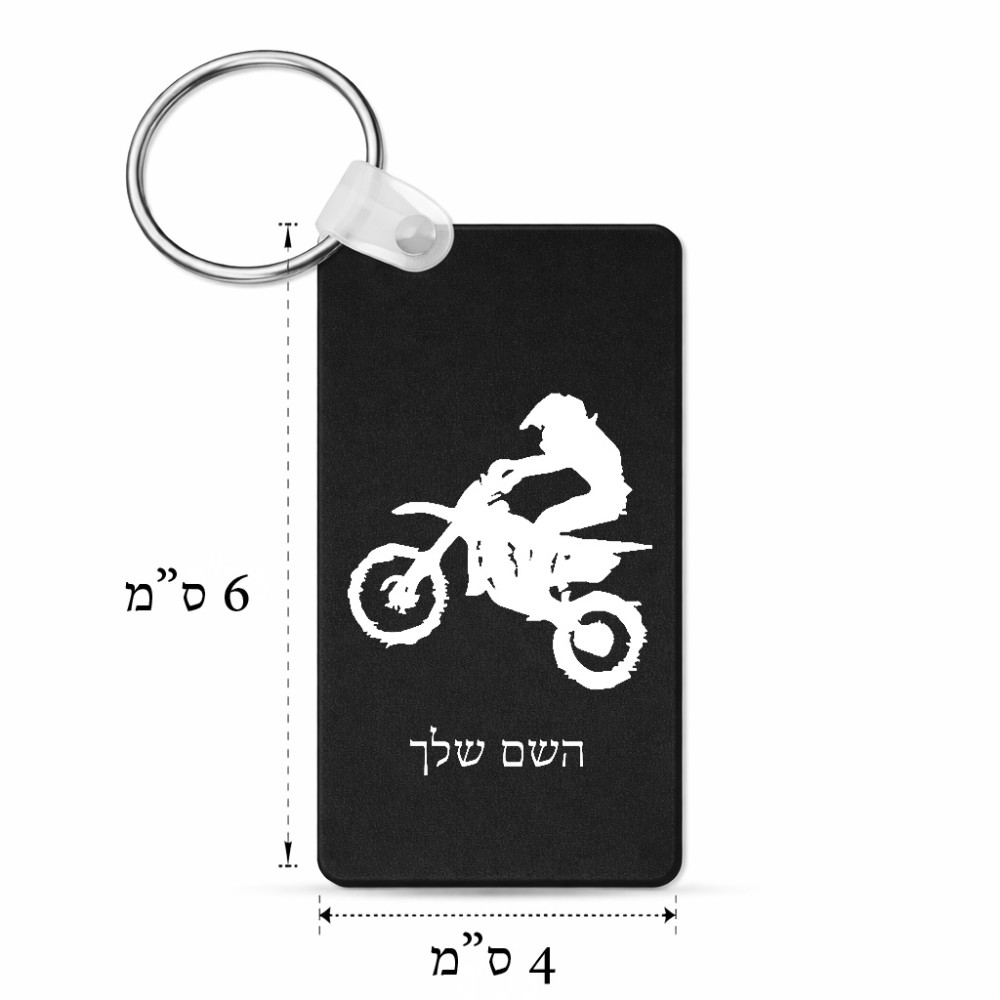 מחזיק מפתחות בצורת מלבן בעיצוב אישי עם השם שלך בעיצוב מוטוקרוס גודל המחזיק 6 × 4 ס"מ. את השם המבוקש ניתן לציין בהזמנה, אם לא צויין אנחנו ניצור קשר לבירור.