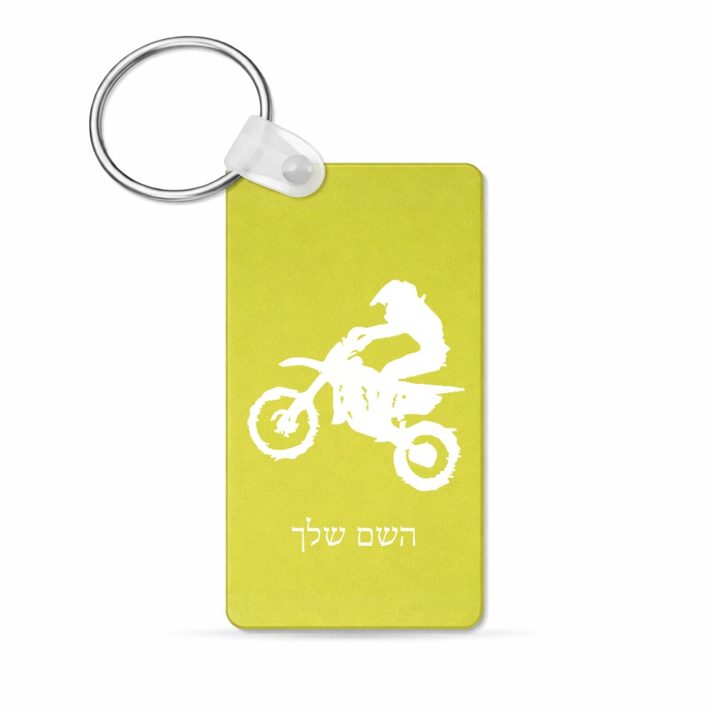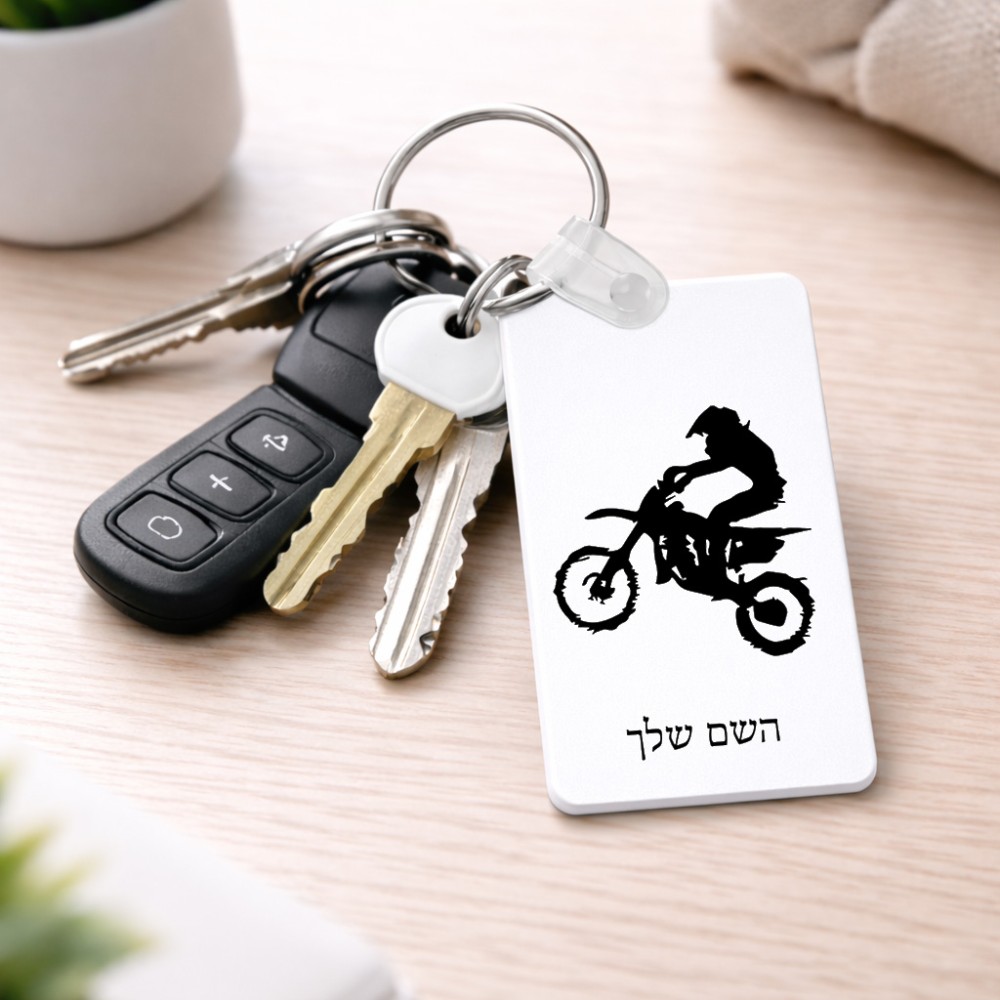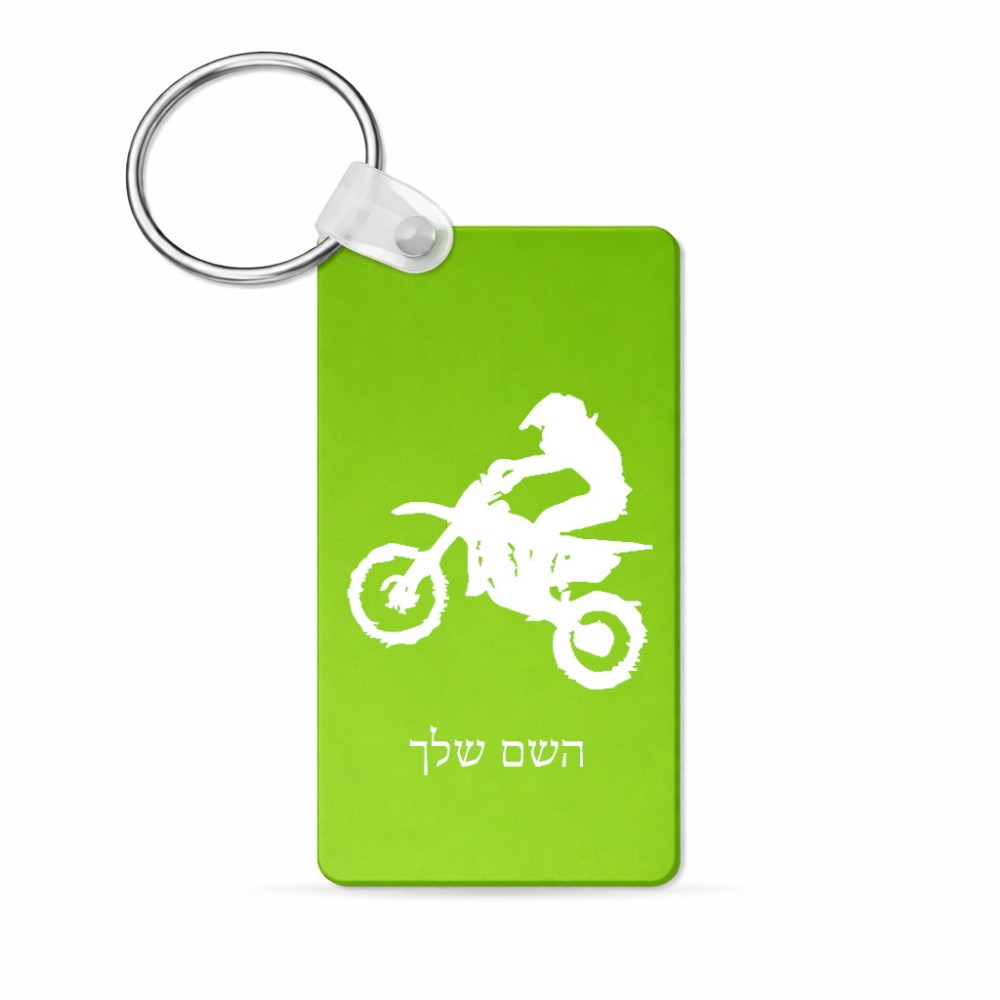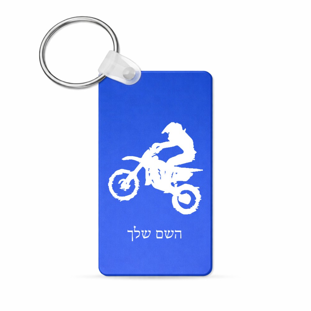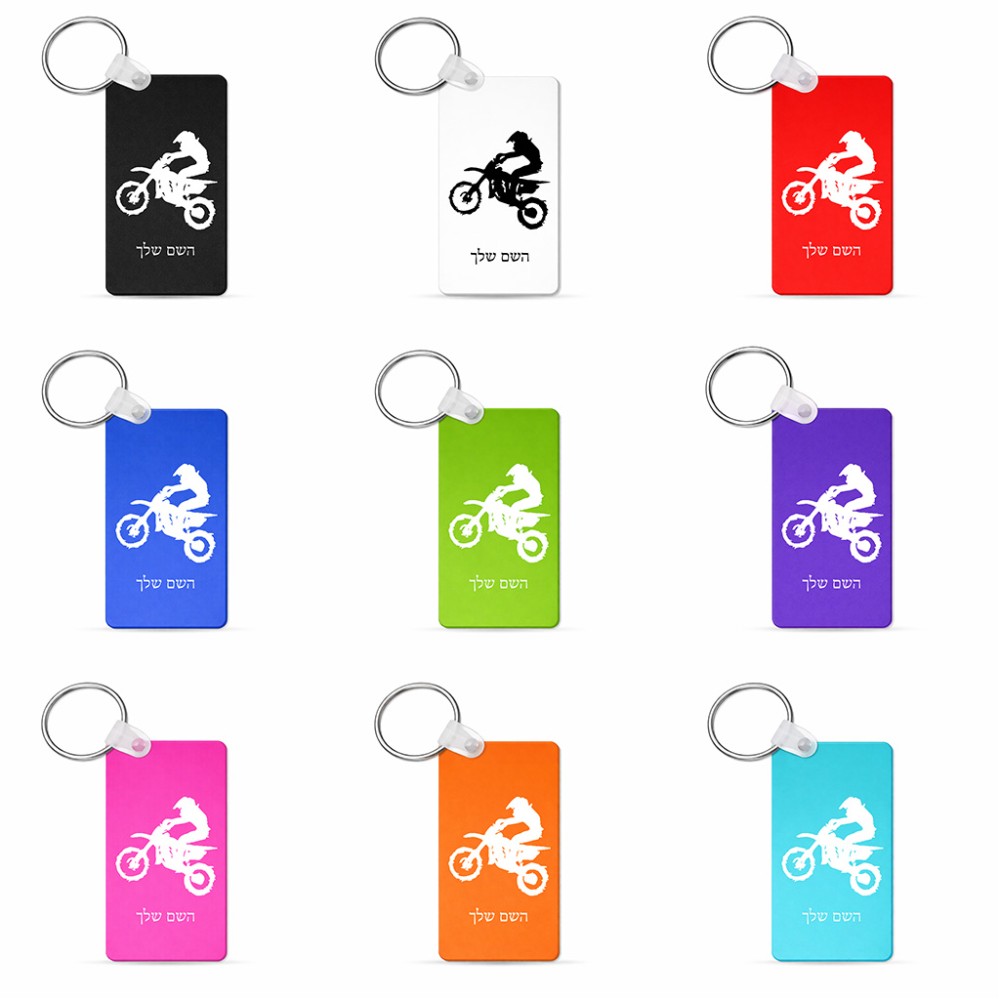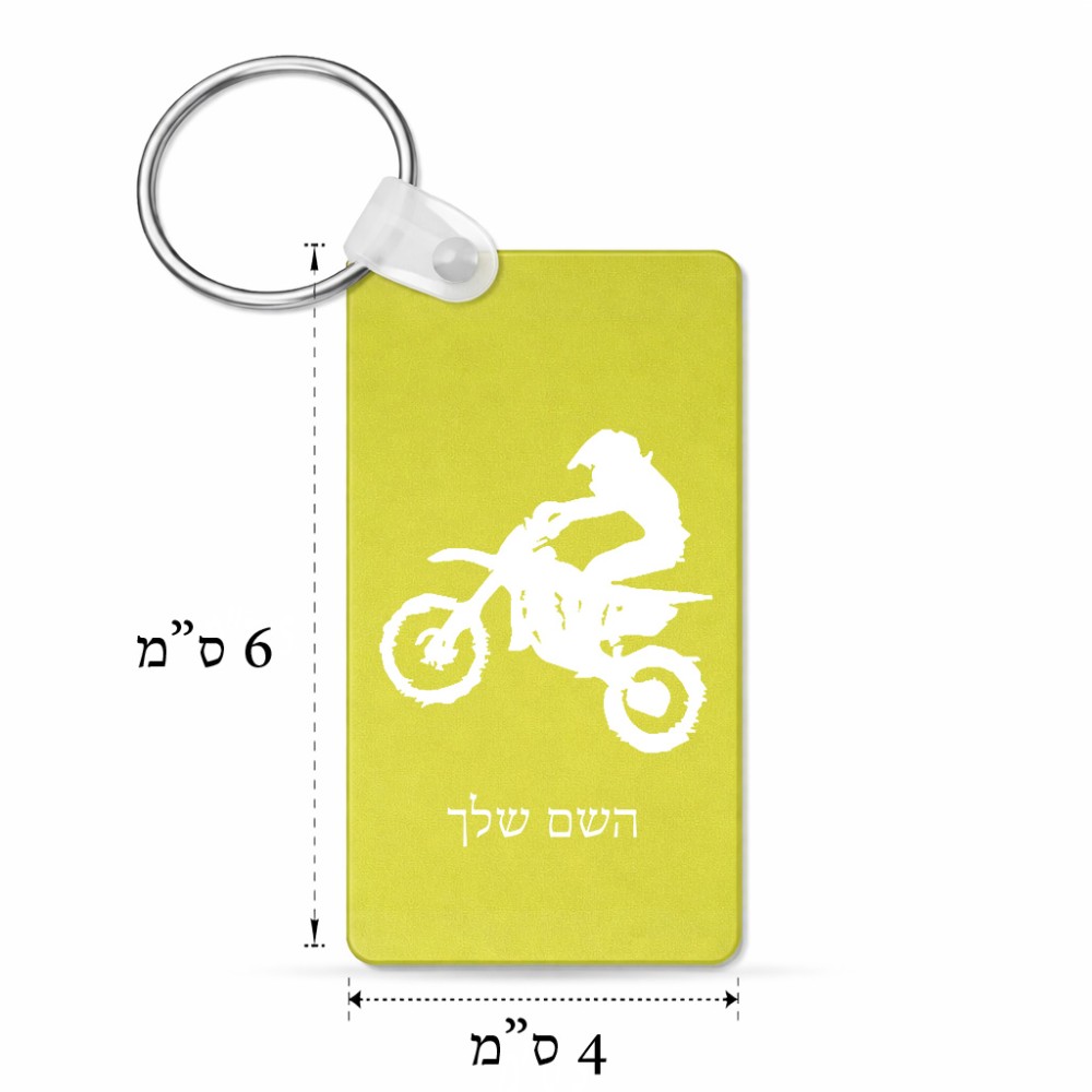 מחזיק מפתחות בצורת מלבן בעיצוב אישי עם השם שלך בעיצוב מוטוקרוס גודל המחזיק 6 × 4 ס"מ. את השם המבוקש ניתן לציין בהזמנה, אם לא צויין אנחנו ניצור קשר לבירור.