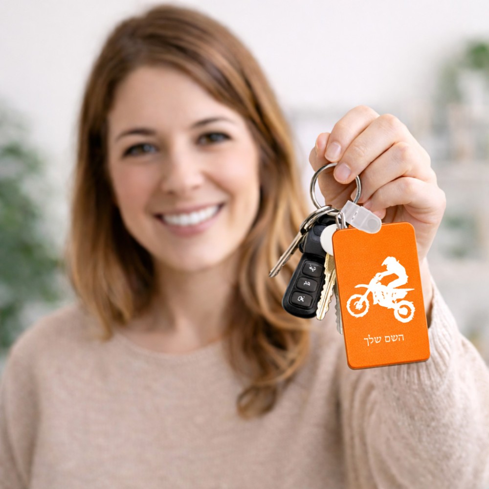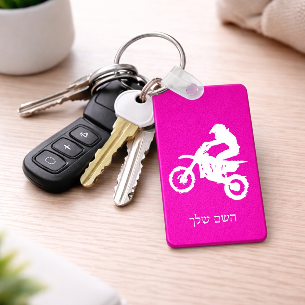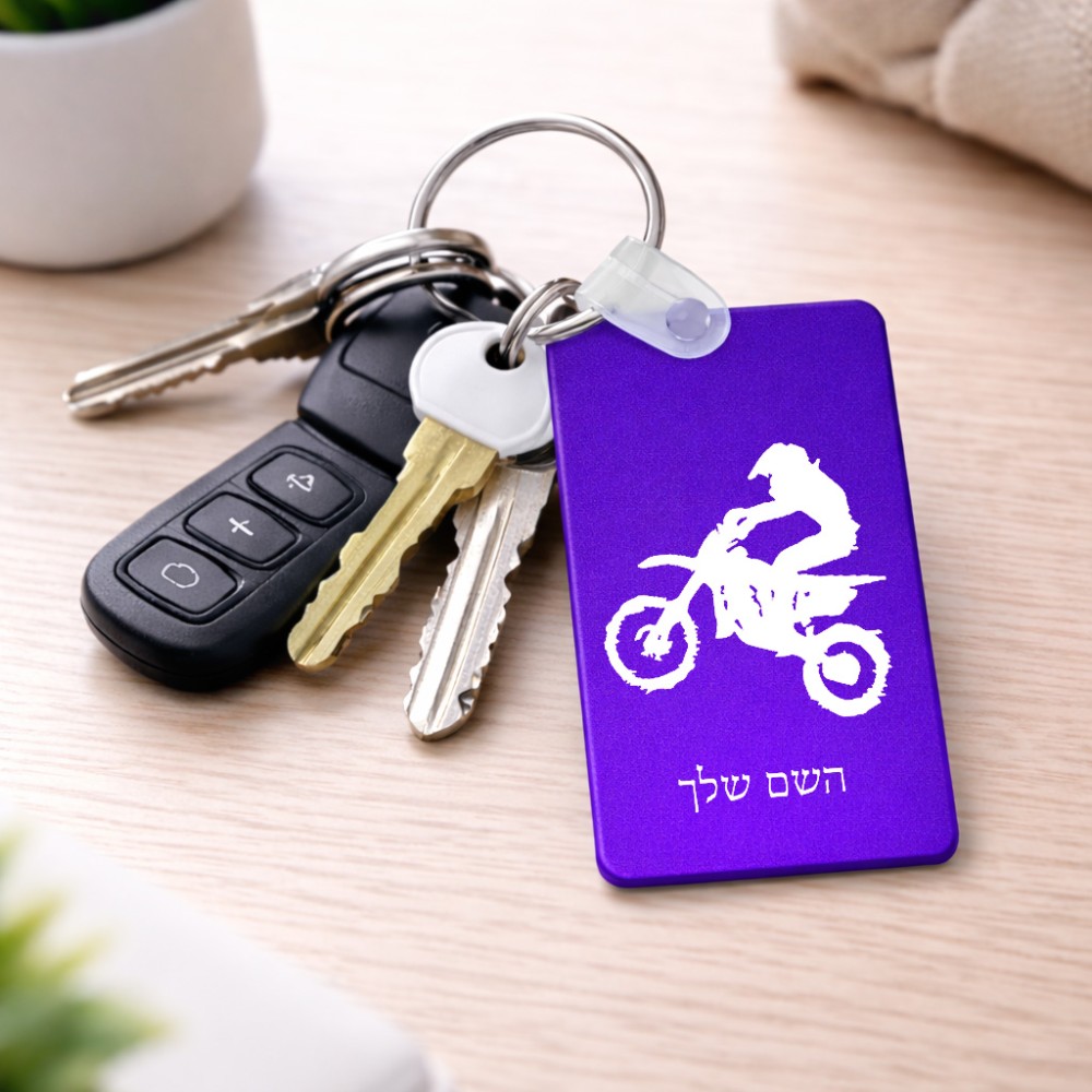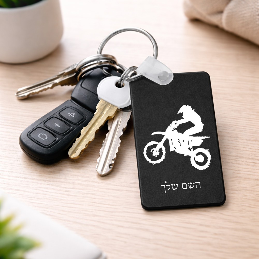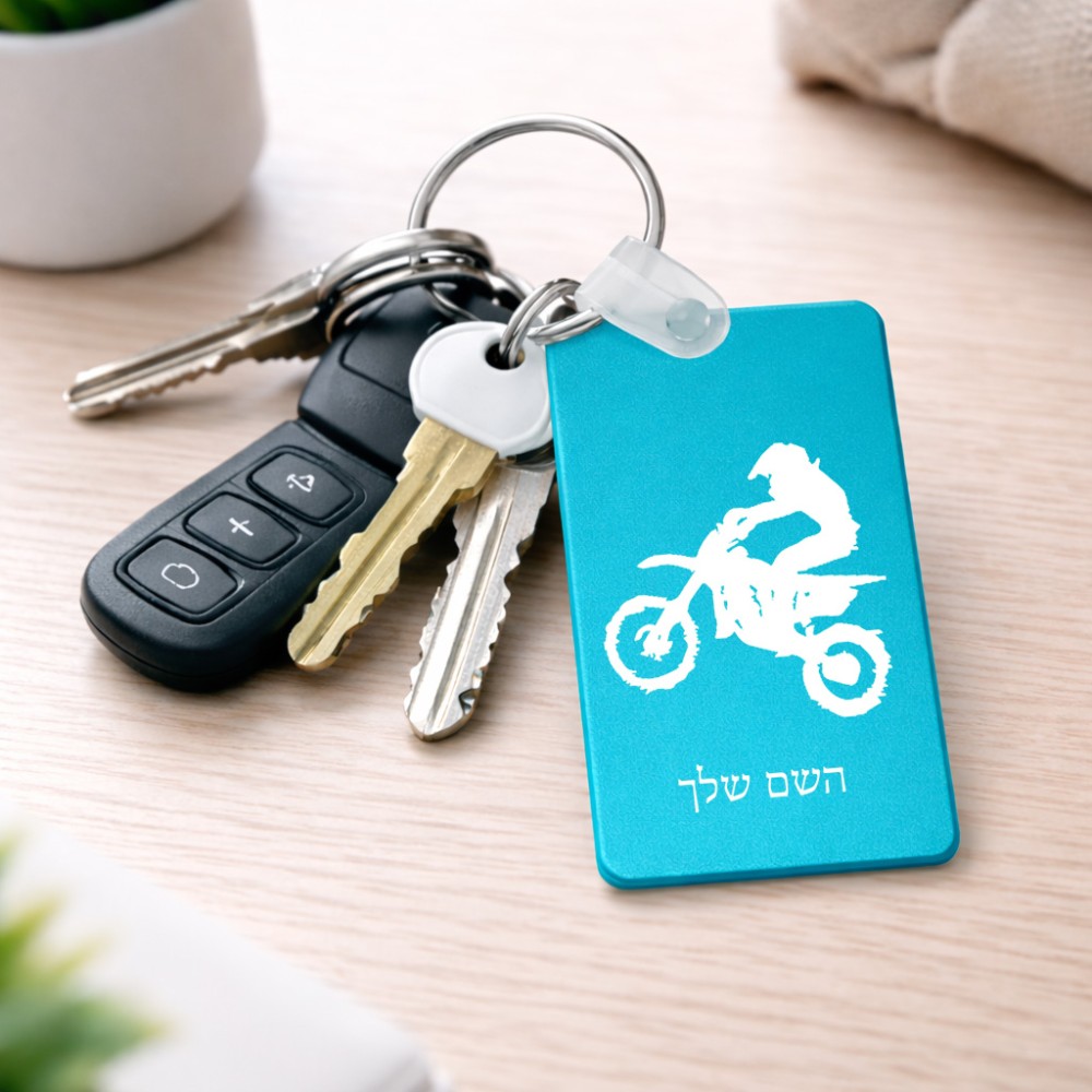 מחזיק מפתחות בצורת מלבן בעיצוב אישי עם השם שלך בעיצוב מוטוקרוס גודל המחזיק 6 × 4 ס"מ. את השם המבוקש ניתן לציין בהזמנה, אם לא צויין אנחנו ניצור קשר לבירור.