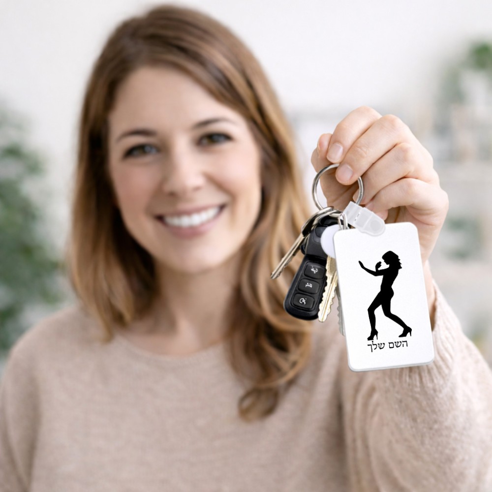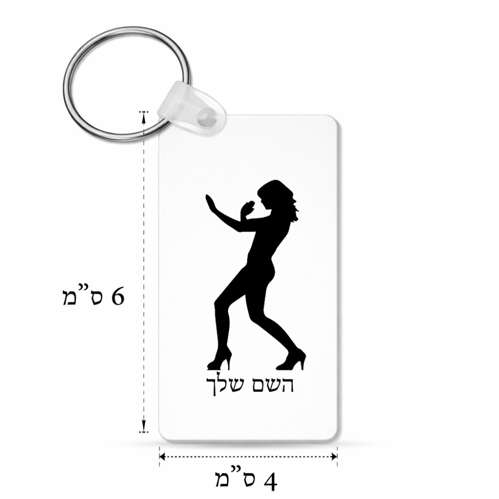 מחזיק מפתחות בצורת מלבן בעיצוב אישי עם השם שלך בעיצוב אישה מגוננת גודל המחזיק 6 × 4 ס"מ. את השם המבוקש ניתן לציין בהזמנה, אם לא צויין אנחנו ניצור קשר לבירור.