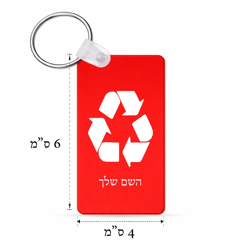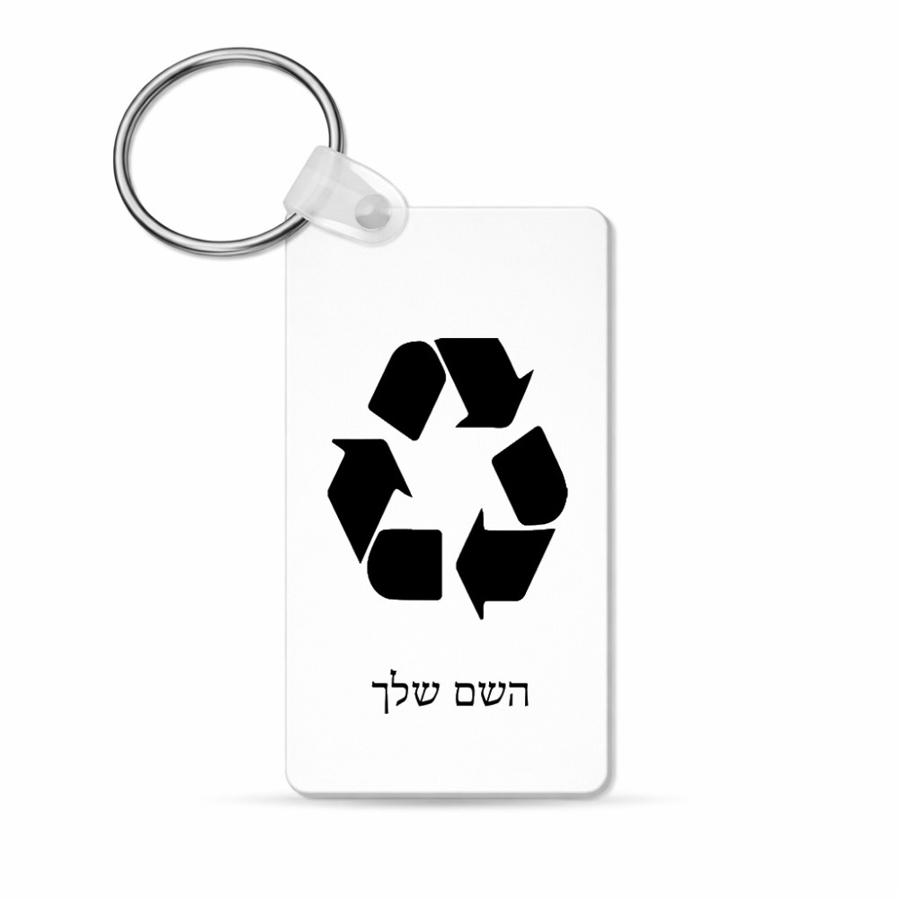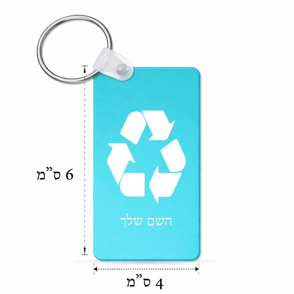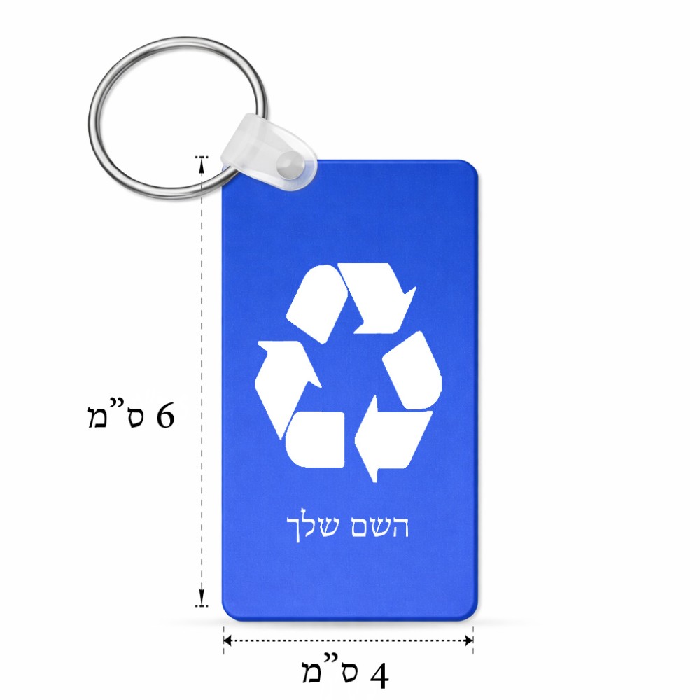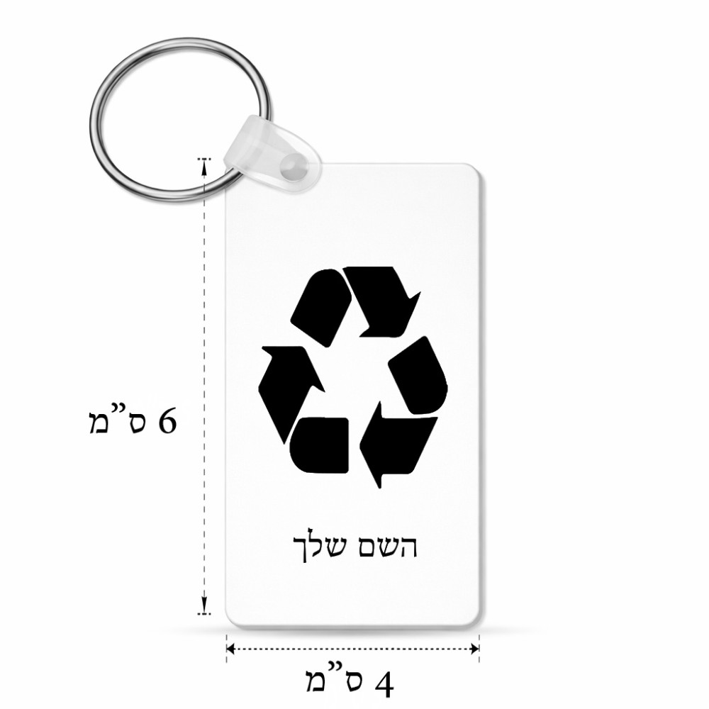 מחזיק מפתחות בצורת מלבן בעיצוב אישי עם השם שלך בעיצוב למחזר גודל המחזיק 6 × 4 ס"מ. את השם המבוקש ניתן לציין בהזמנה, אם לא צויין אנחנו ניצור קשר לבירור.
