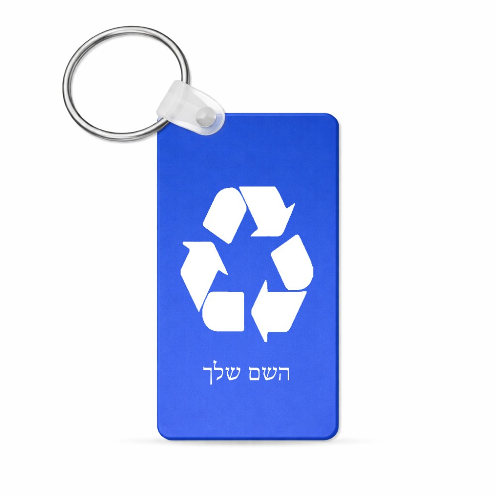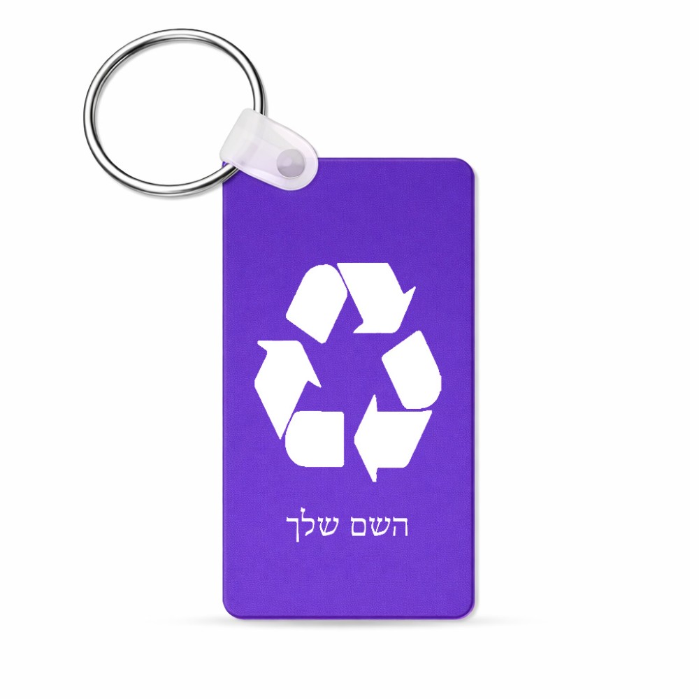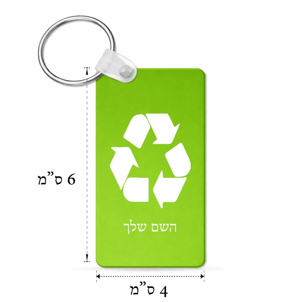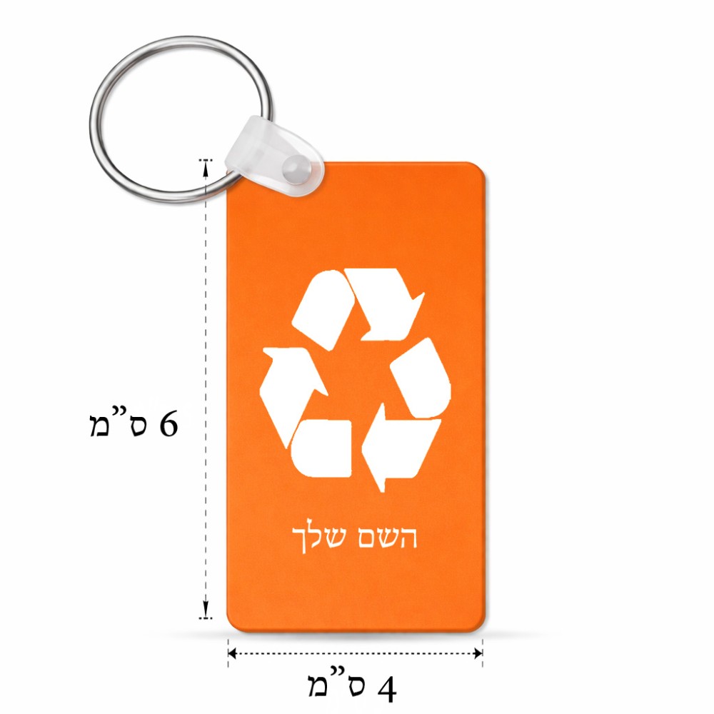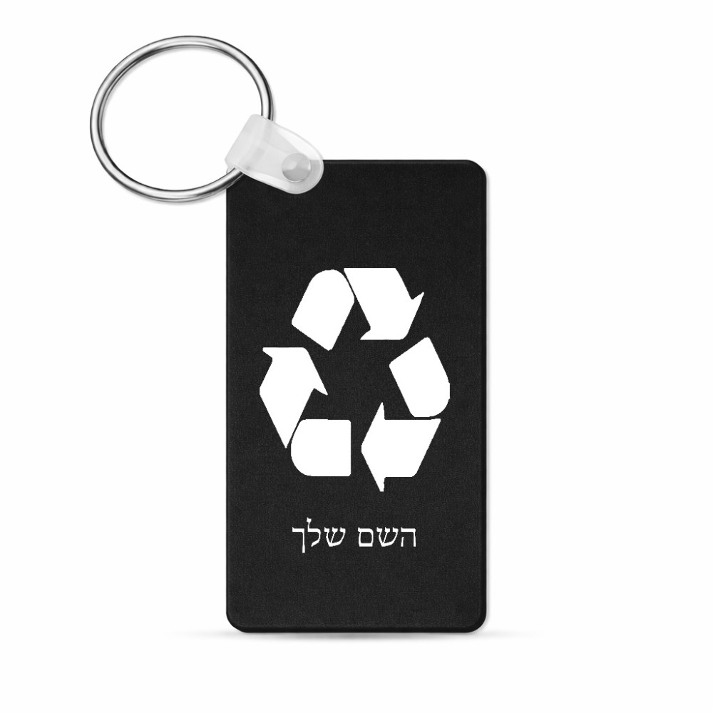 מחזיק מפתחות בצורת מלבן בעיצוב אישי עם השם שלך בעיצוב למחזר גודל המחזיק 6 × 4 ס"מ. את השם המבוקש ניתן לציין בהזמנה, אם לא צויין אנחנו ניצור קשר לבירור.