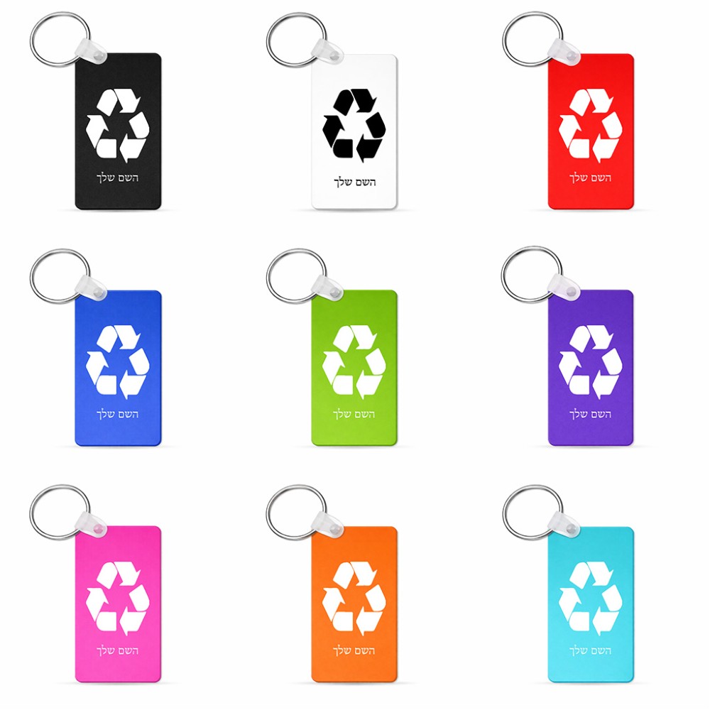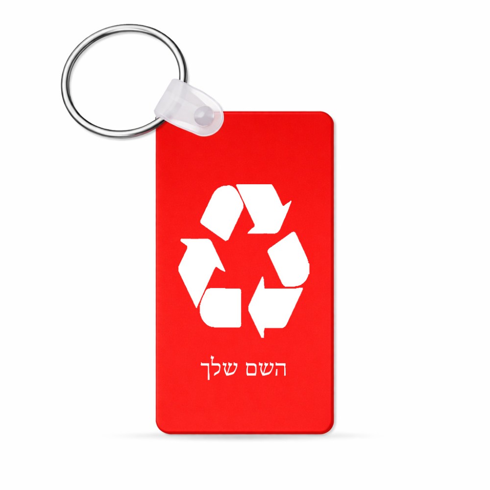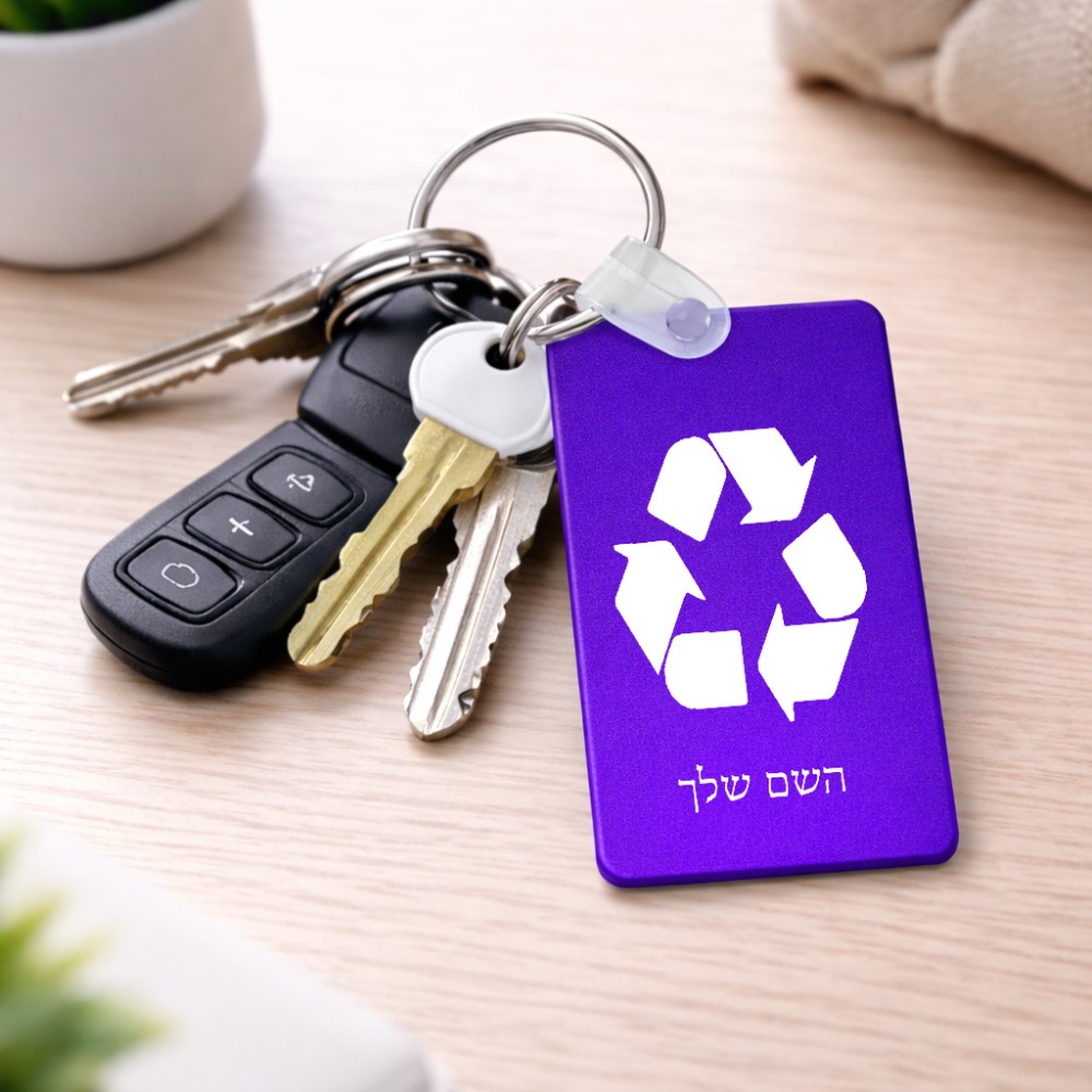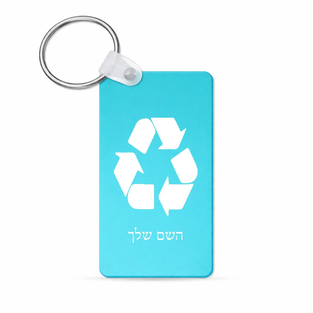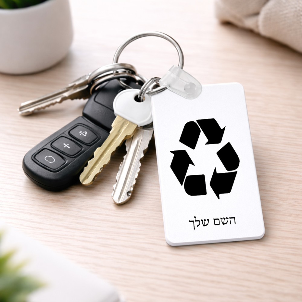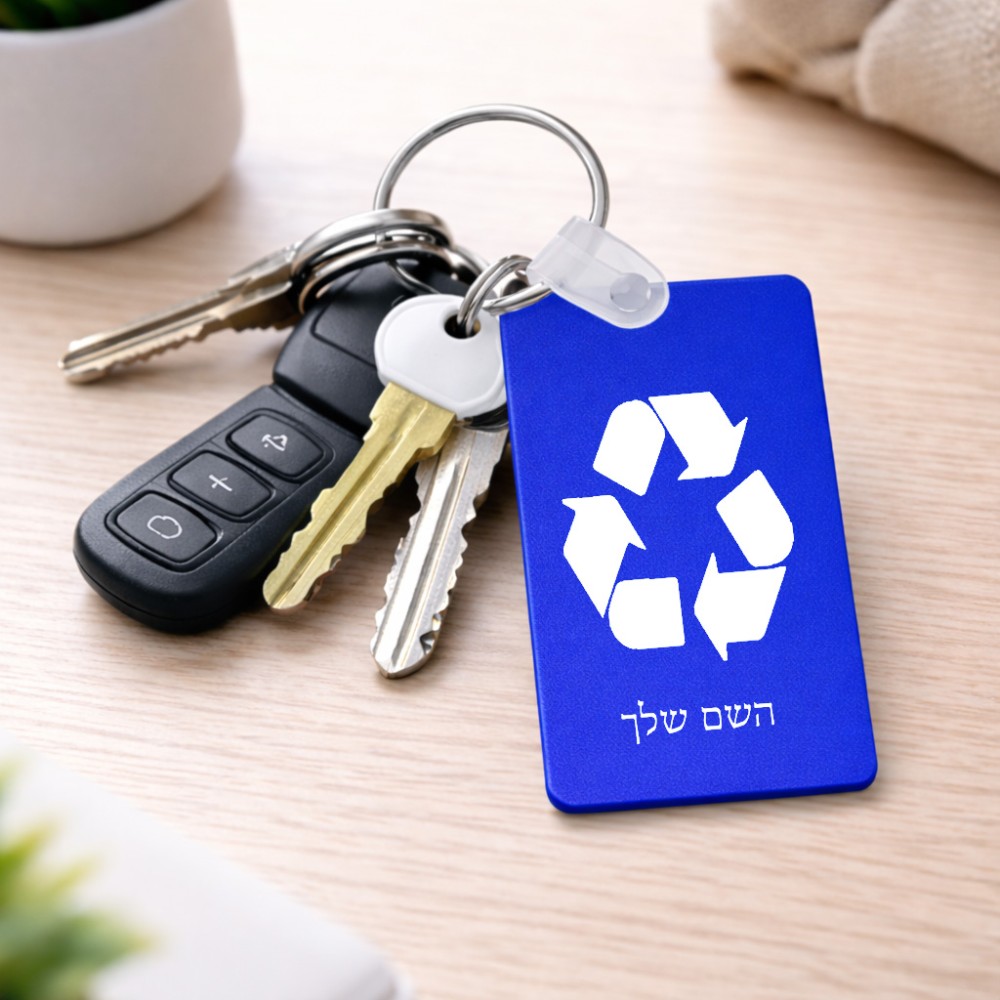 מחזיק מפתחות בצורת מלבן בעיצוב אישי עם השם שלך בעיצוב למחזר גודל המחזיק 6 × 4 ס"מ. את השם המבוקש ניתן לציין בהזמנה, אם לא צויין אנחנו ניצור קשר לבירור.