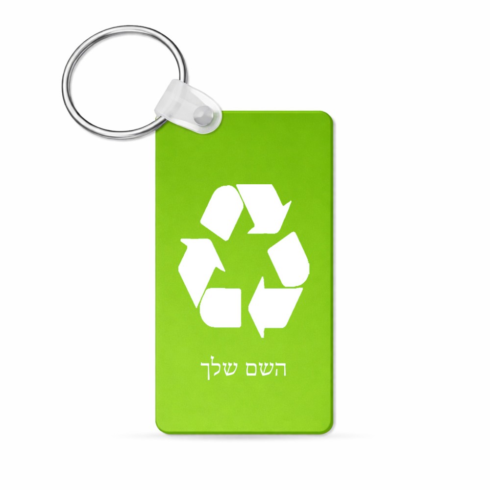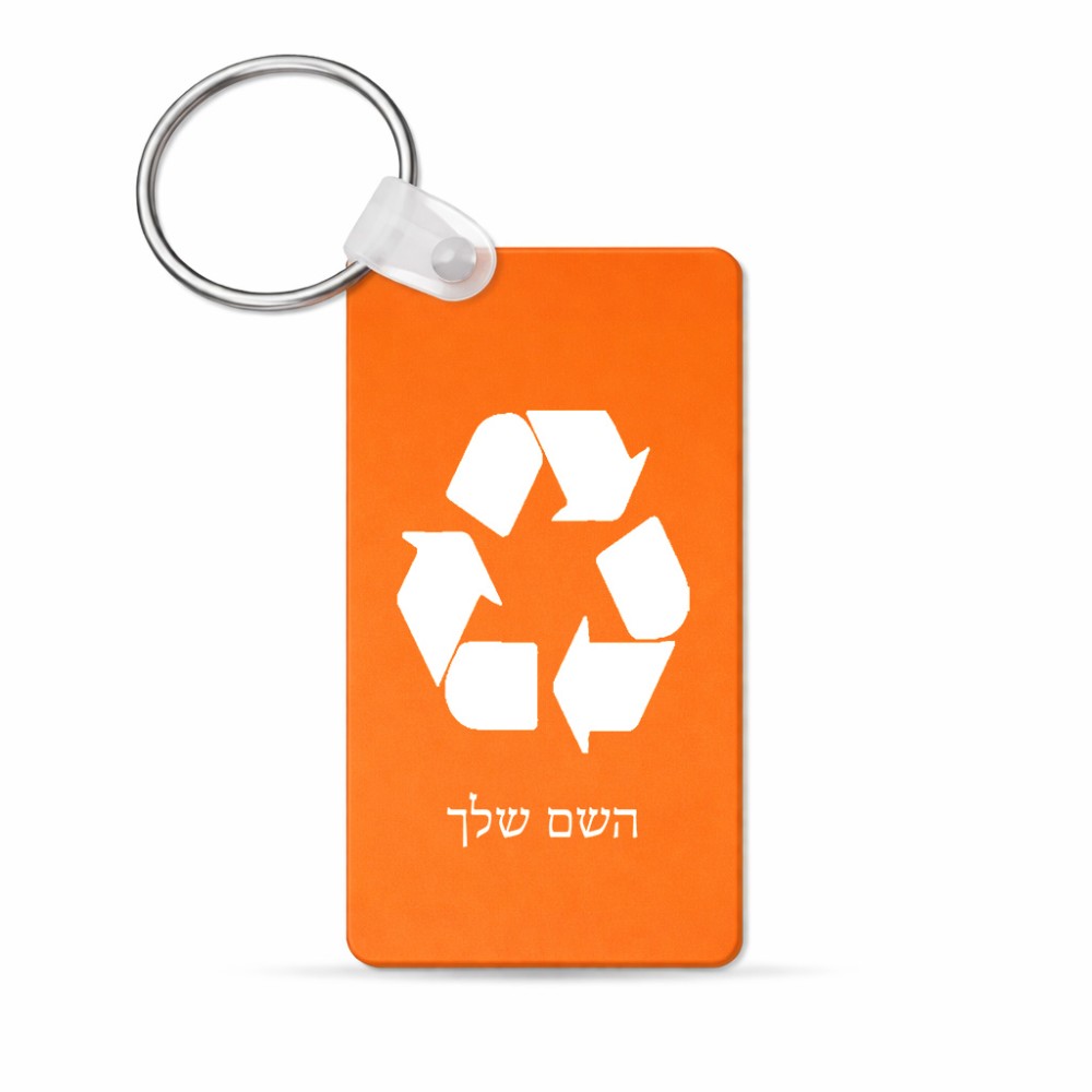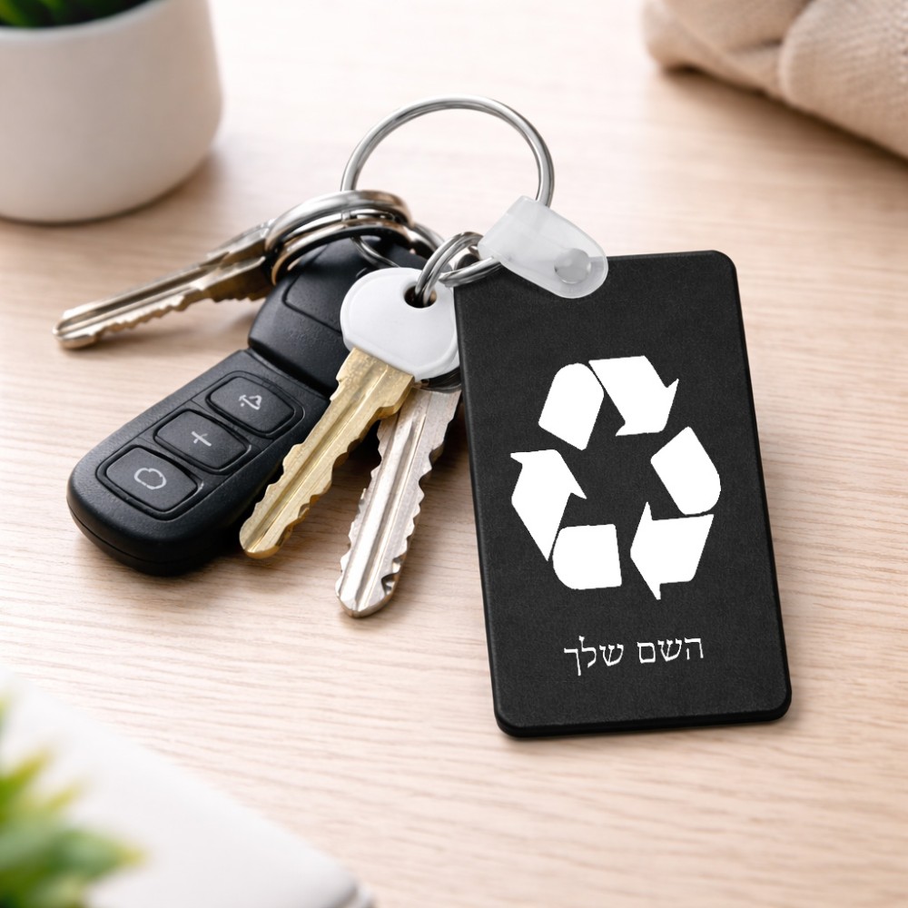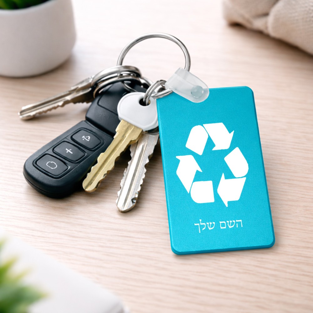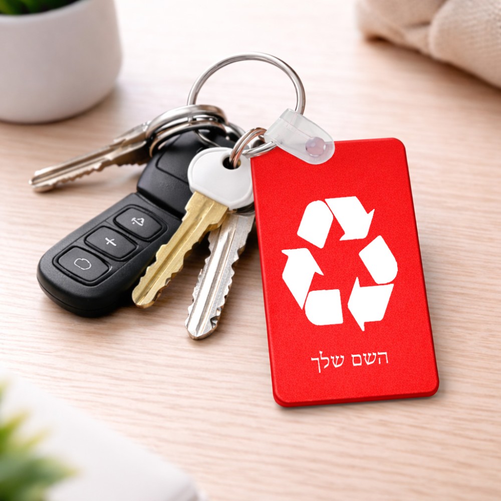 מחזיק מפתחות בצורת מלבן בעיצוב אישי עם השם שלך בעיצוב למחזר גודל המחזיק 6 × 4 ס"מ. את השם המבוקש ניתן לציין בהזמנה, אם לא צויין אנחנו ניצור קשר לבירור.