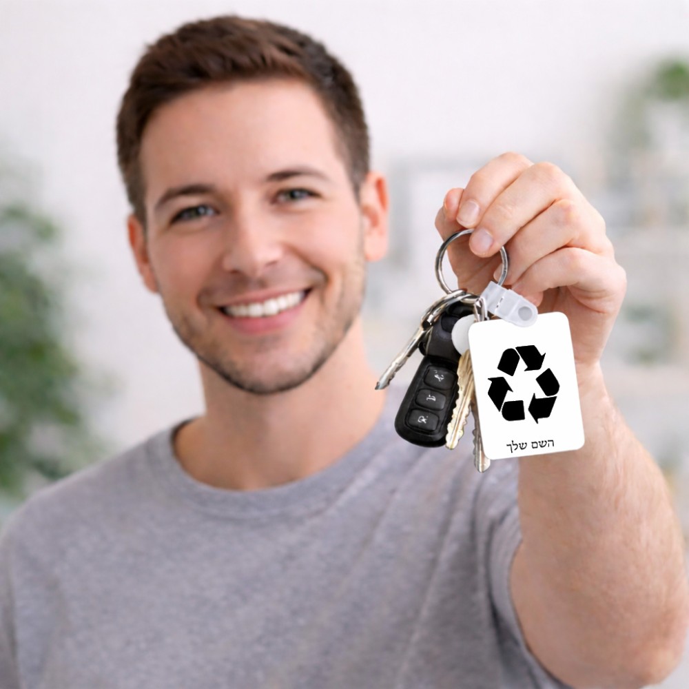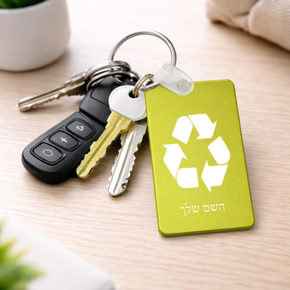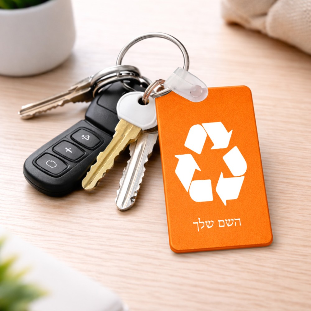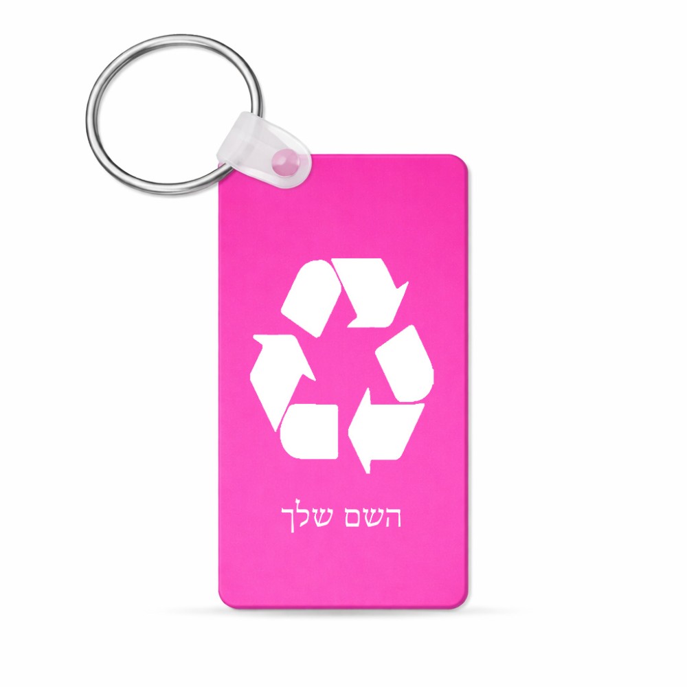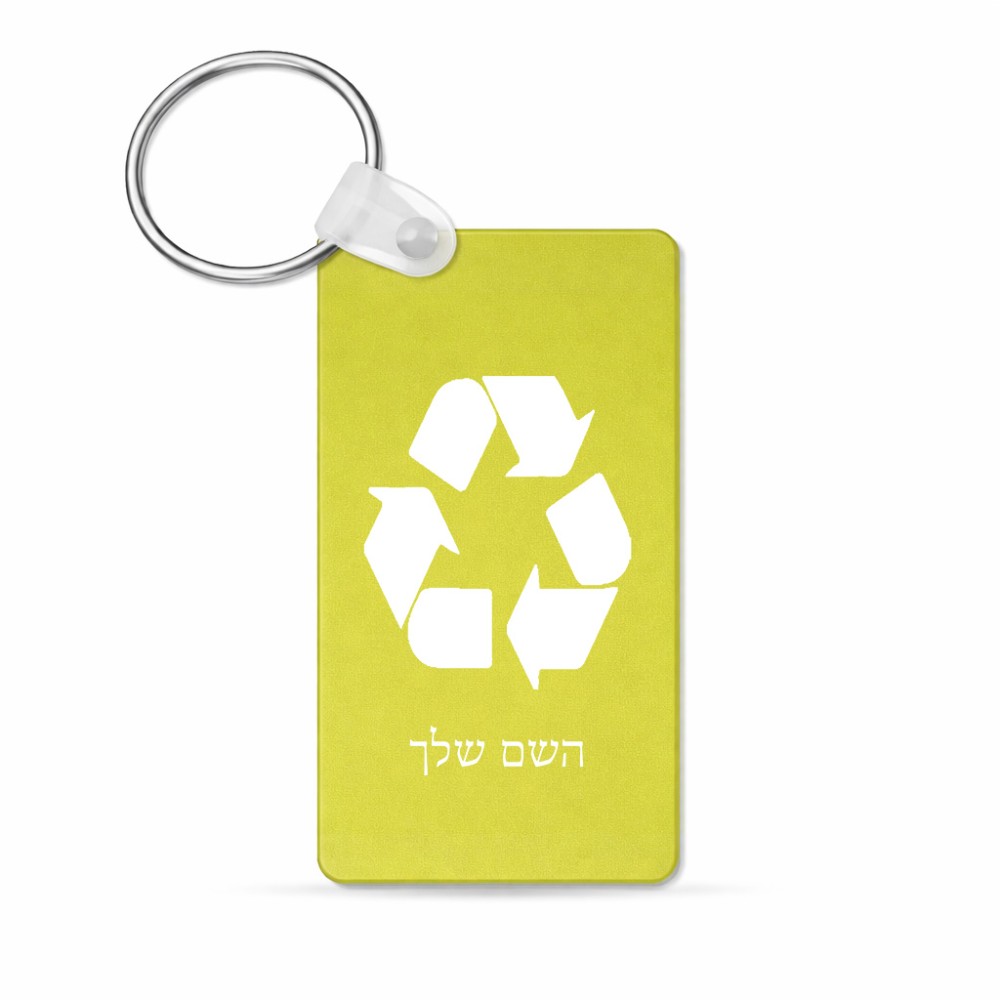מחזיק מפתחות בצורת מלבן בעיצוב אישי עם השם שלך בעיצוב למחזר גודל המחזיק 6 × 4 ס"מ. את השם המבוקש ניתן לציין בהזמנה, אם לא צויין אנחנו ניצור קשר לבירור.