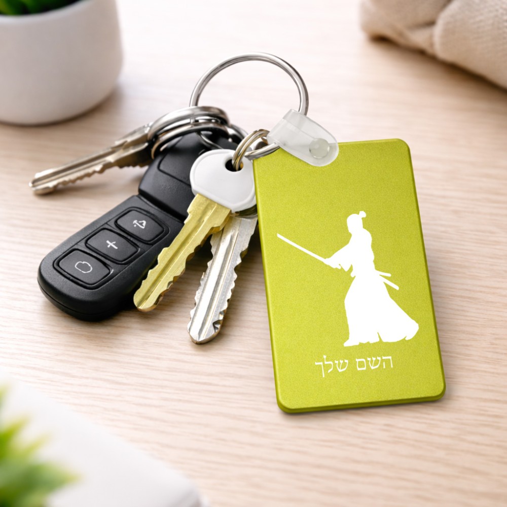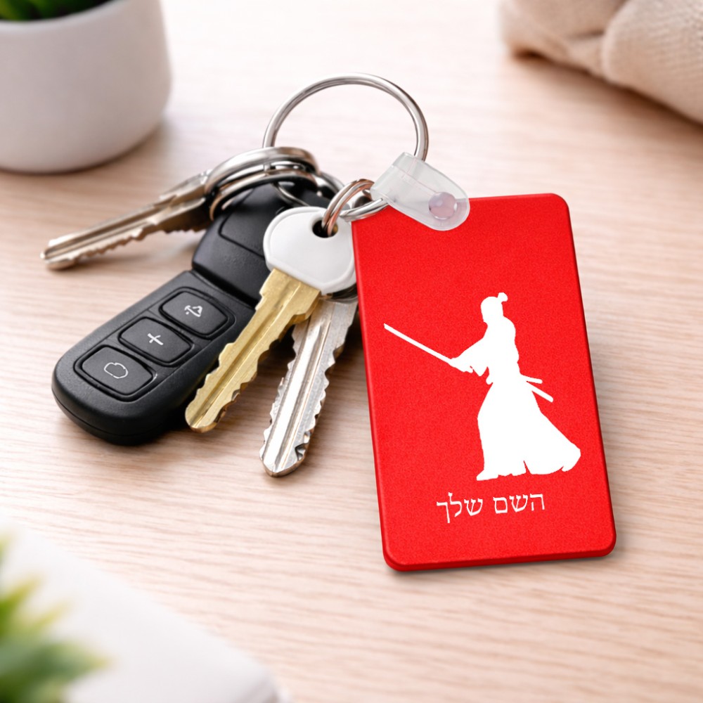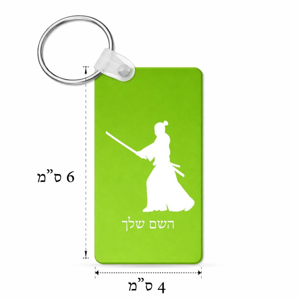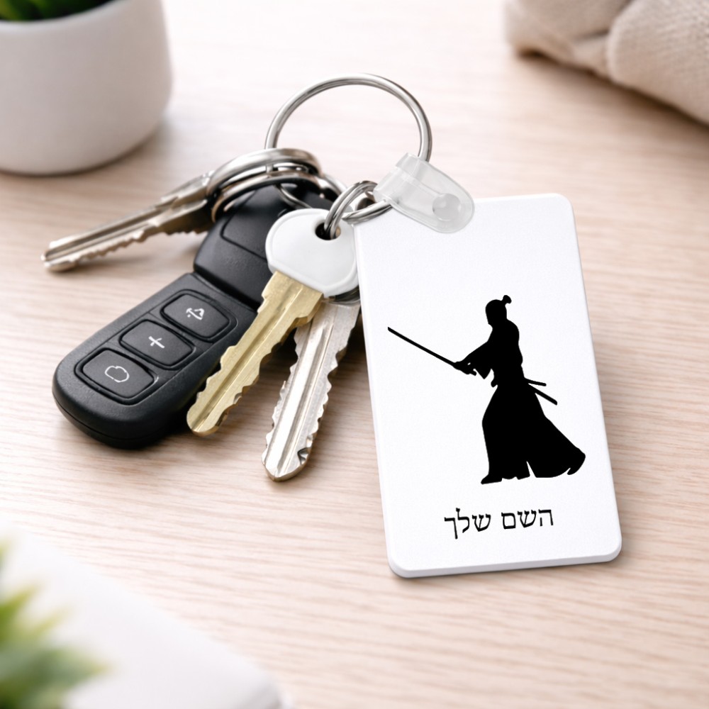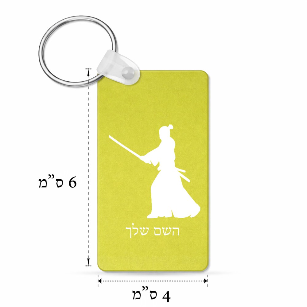 מחזיק מפתחות בצורת מלבן בעיצוב אישי עם השם שלך בעיצוב סמוראי גודל המחזיק 6 × 4 ס"מ. את השם המבוקש ניתן לציין בהזמנה, אם לא צויין אנחנו ניצור קשר לבירור.
