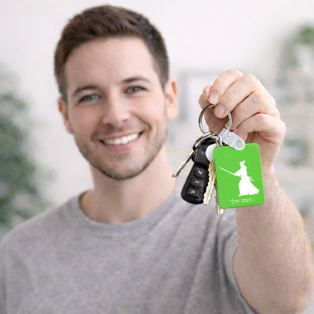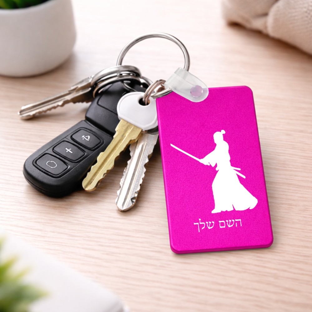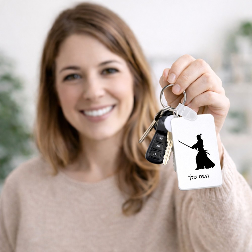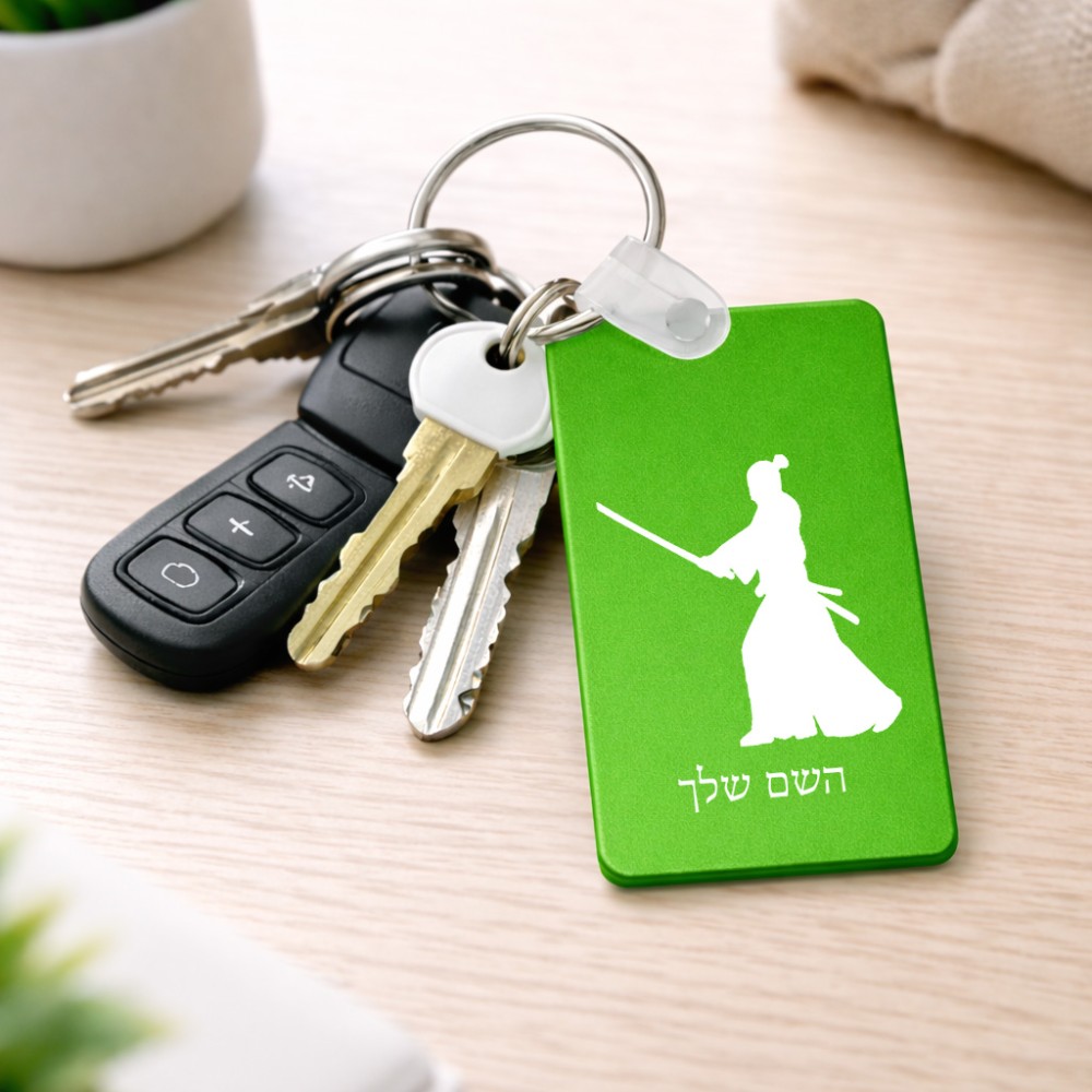 מחזיק מפתחות בצורת מלבן בעיצוב אישי עם השם שלך בעיצוב סמוראי גודל המחזיק 6 × 4 ס"מ. את השם המבוקש ניתן לציין בהזמנה, אם לא צויין אנחנו ניצור קשר לבירור.