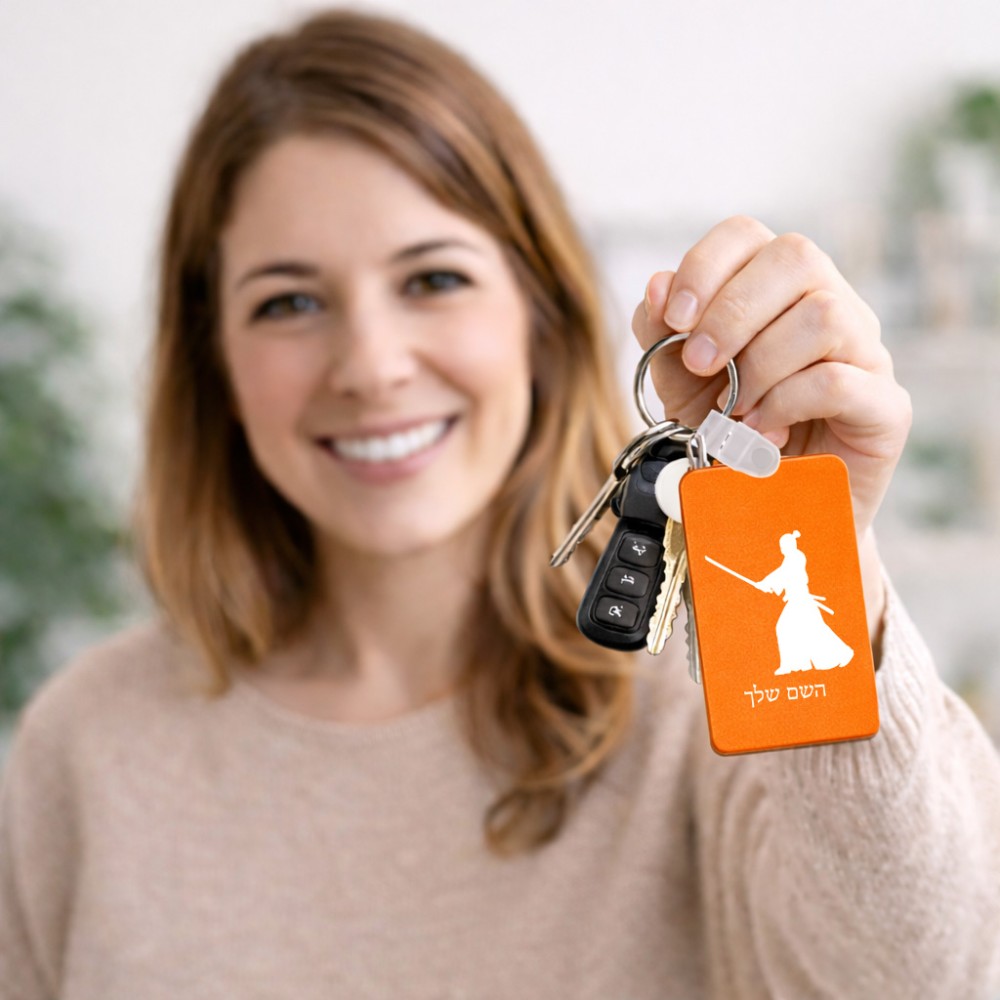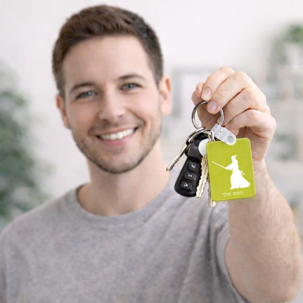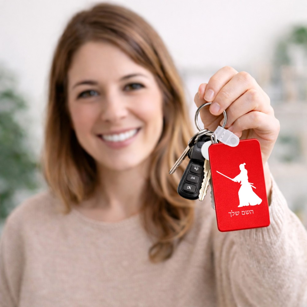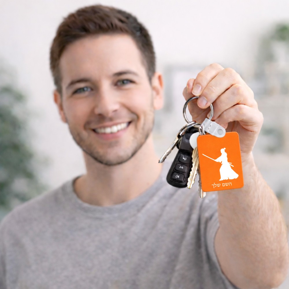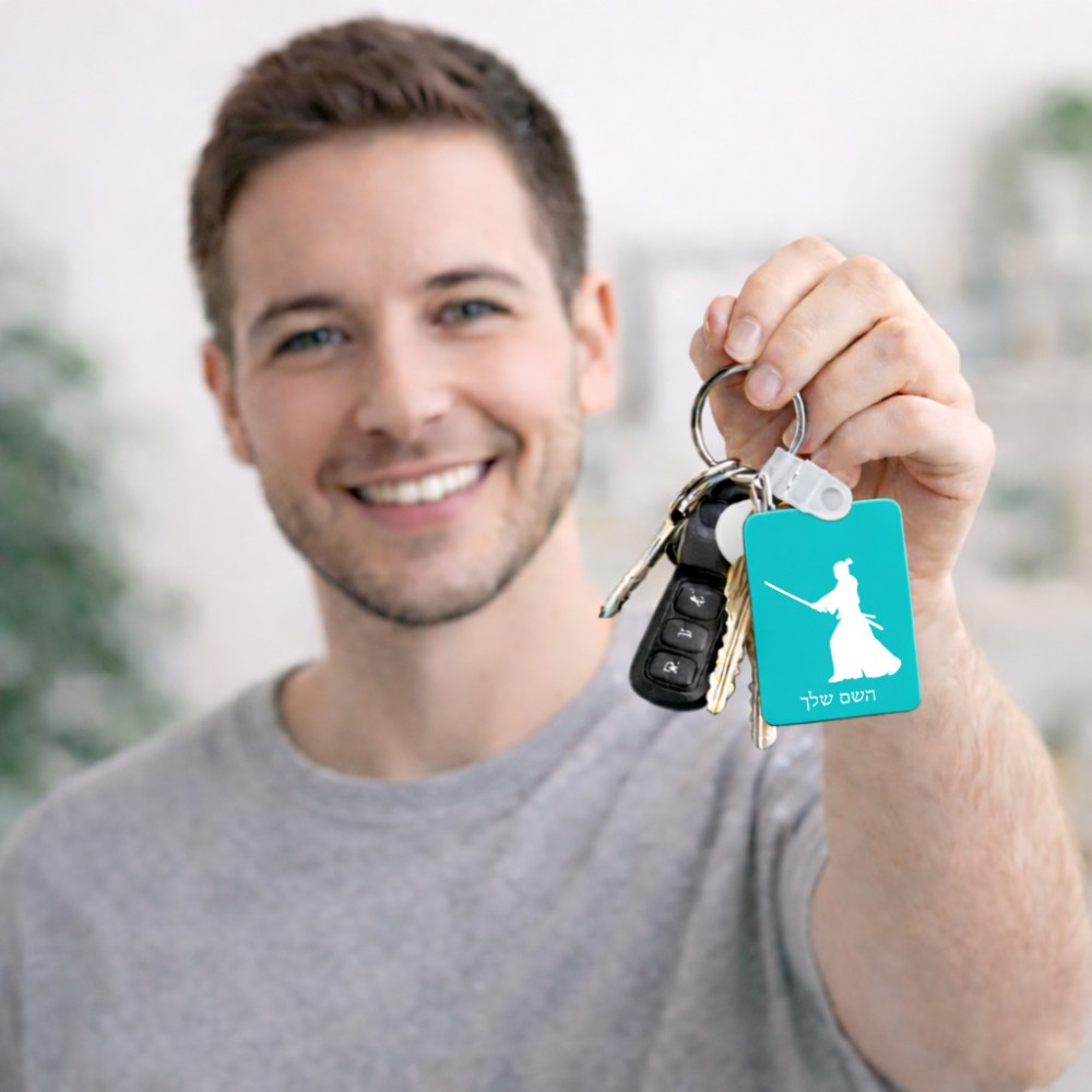 מחזיק מפתחות בצורת מלבן בעיצוב אישי עם השם שלך בעיצוב סמוראי גודל המחזיק 6 × 4 ס"מ. את השם המבוקש ניתן לציין בהזמנה, אם לא צויין אנחנו ניצור קשר לבירור.